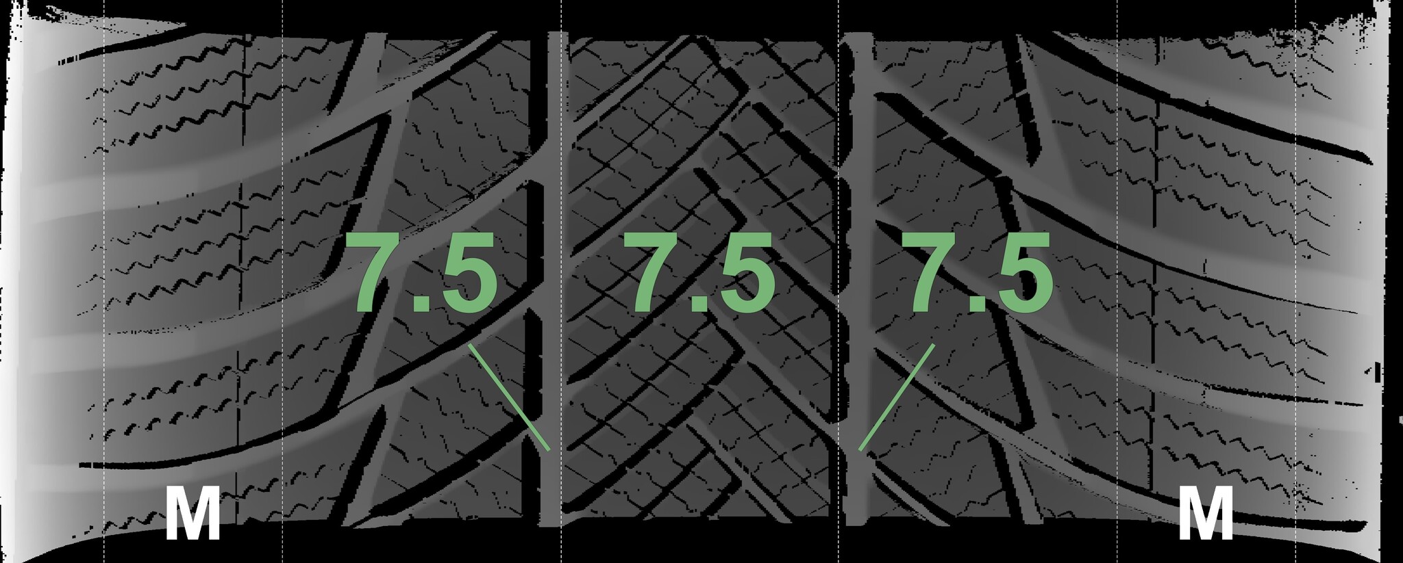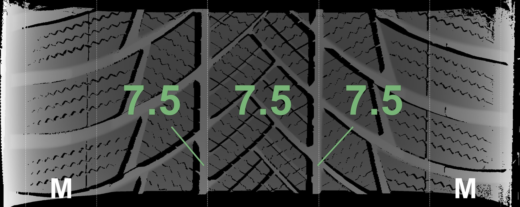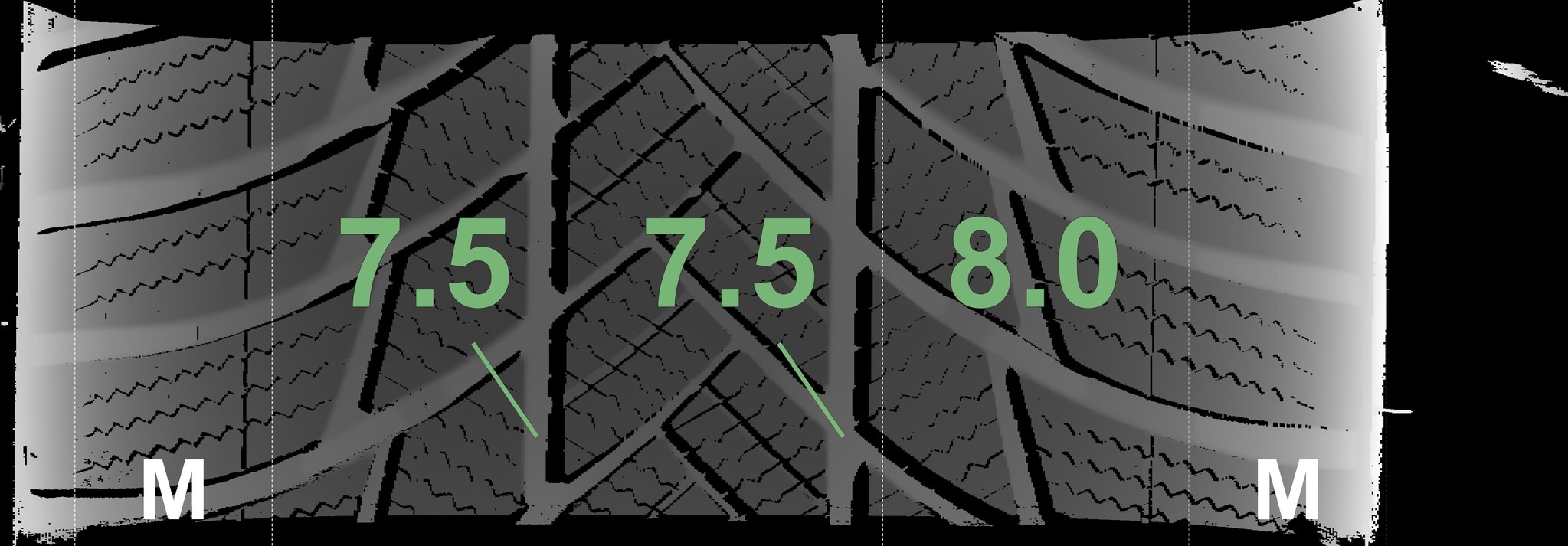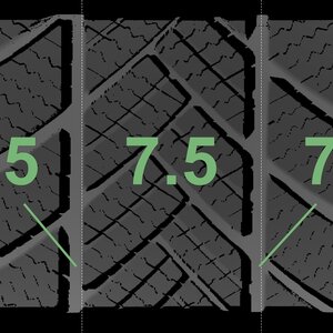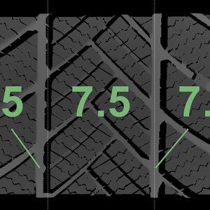 The measured tread depths and the details of the rims are shown above.