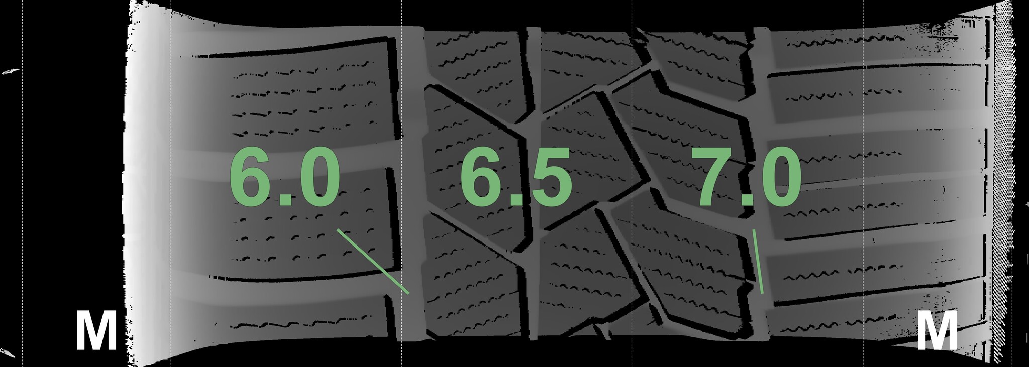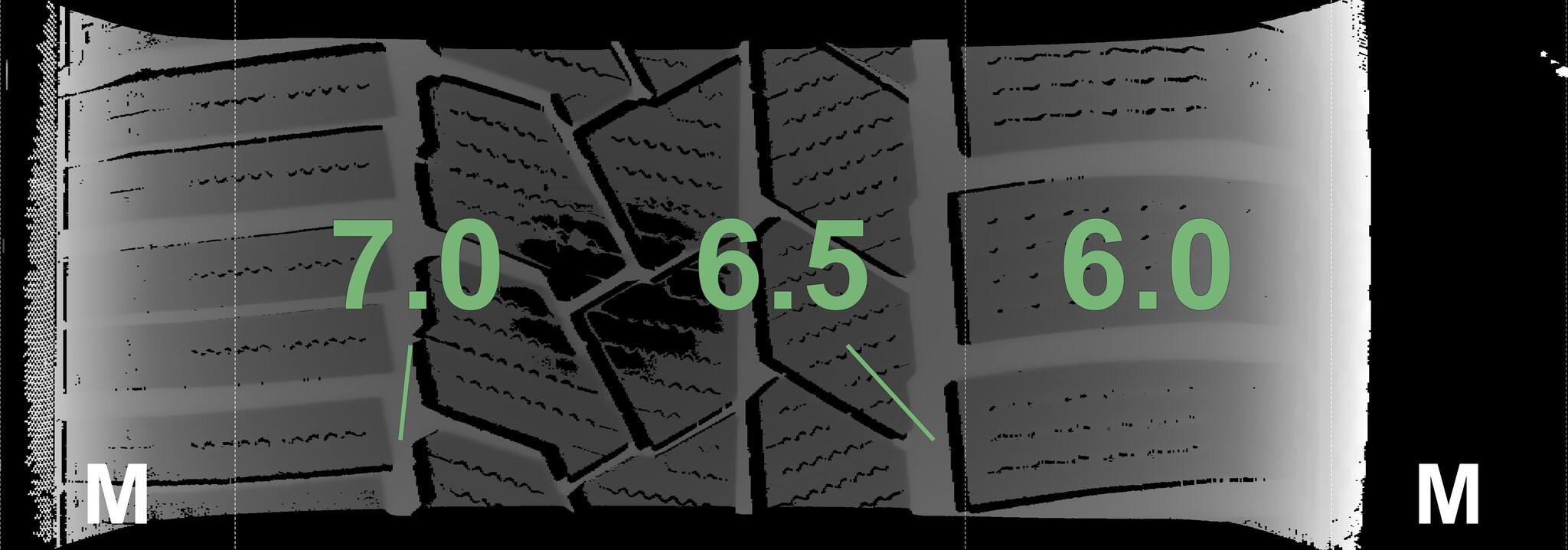The measured tread depths and details of the rims are shown above.