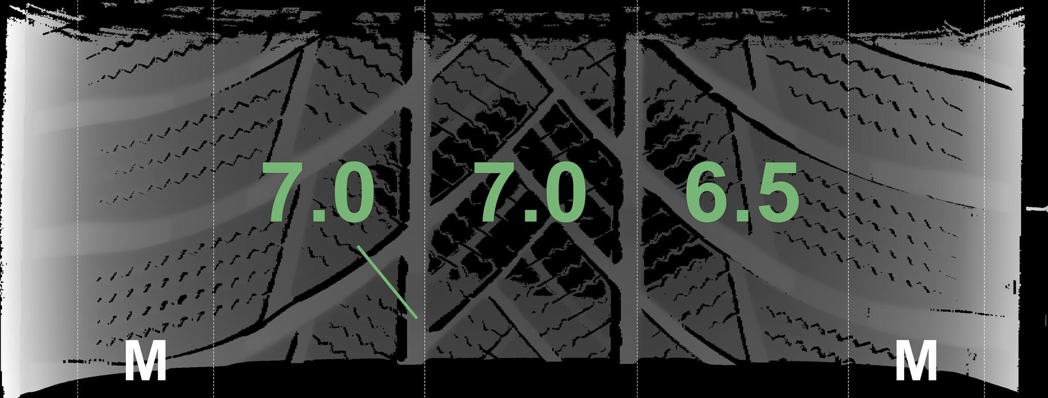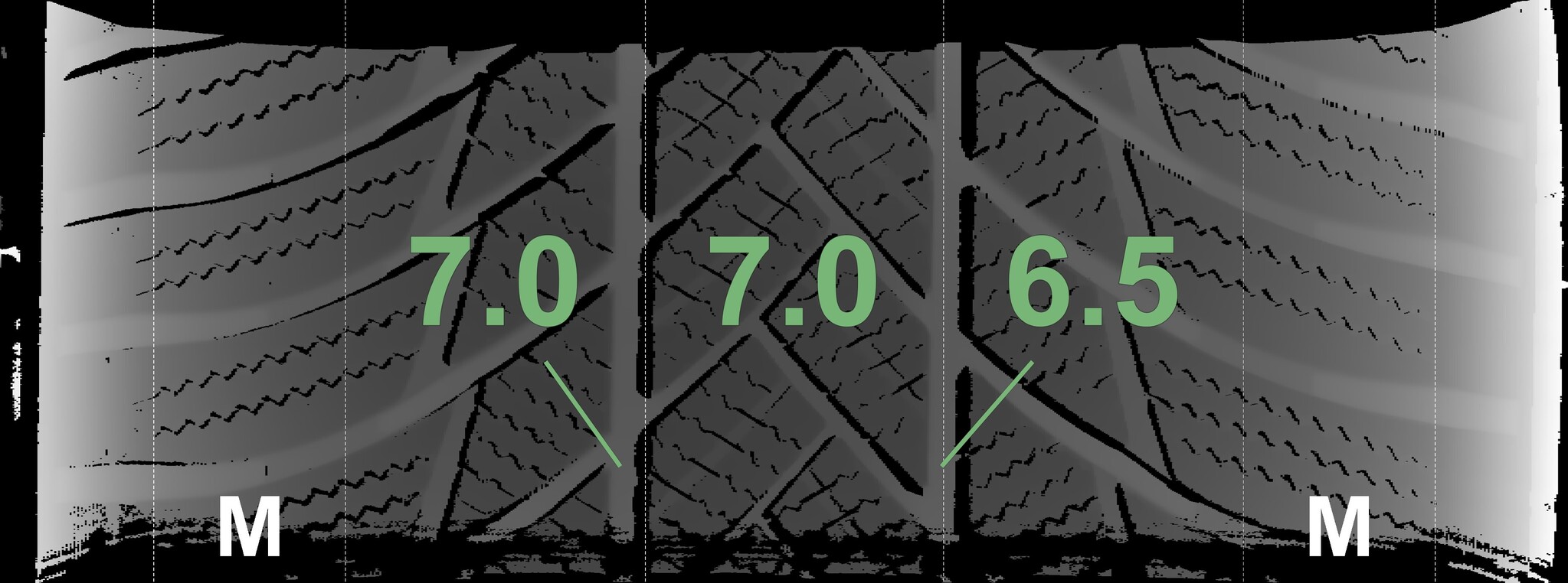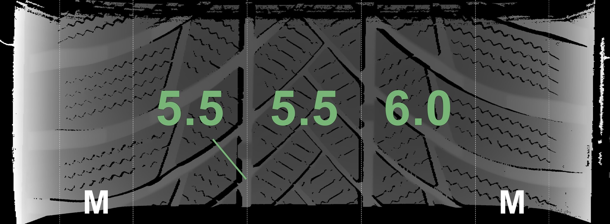 The measured tread depths and the details of the rims are shown above.