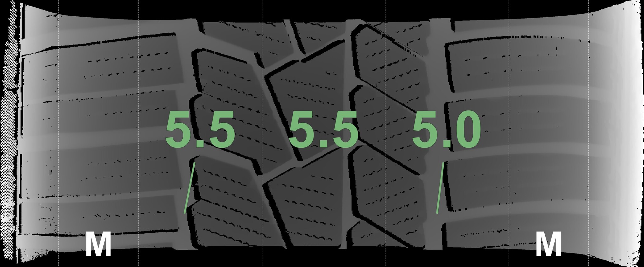 | Condition | Profile depth | DOT | Front Left | Used | 5.3 mm | 2522 |