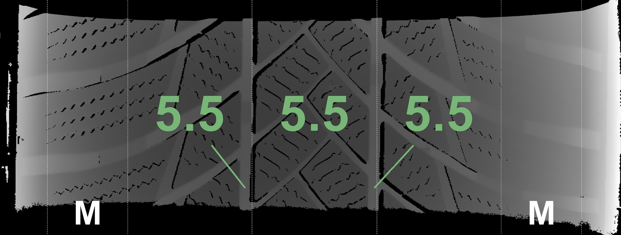 | Condition | Profile depth | DOT | Front Left | Used | 5.5 mm | 4220 |