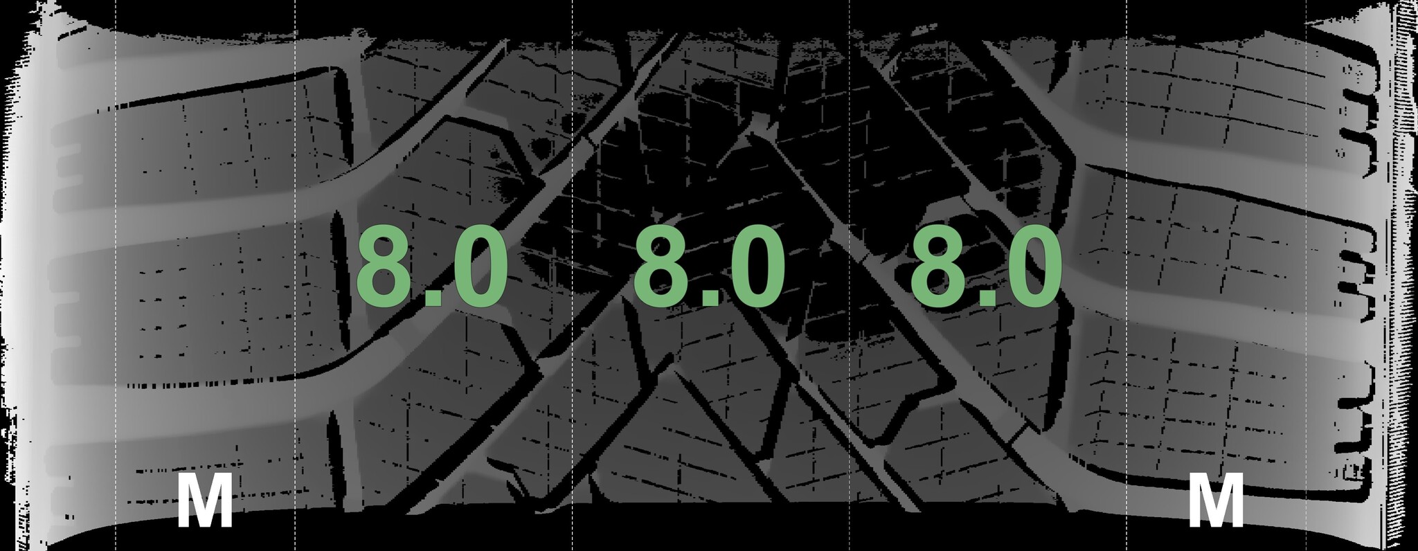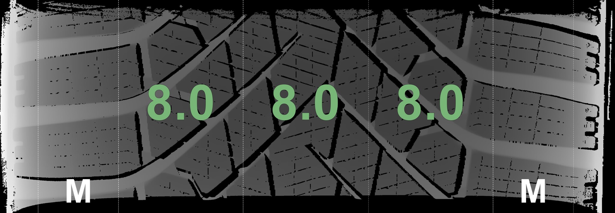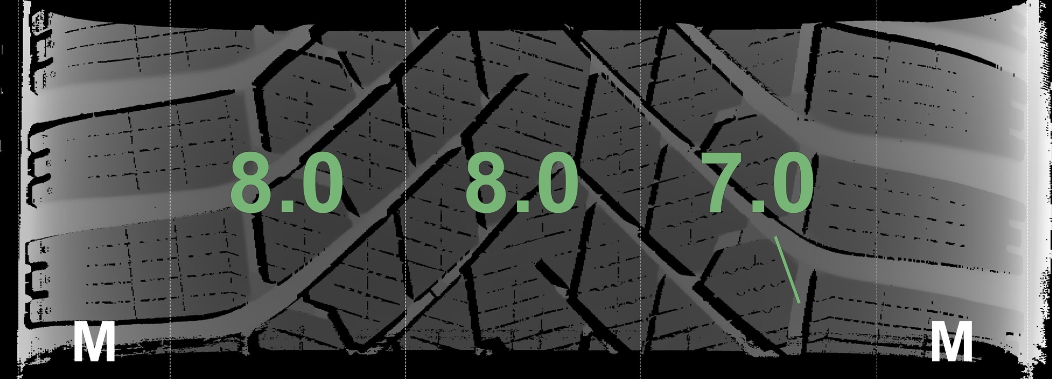 The measured tread depths and the details of the rims are shown above.