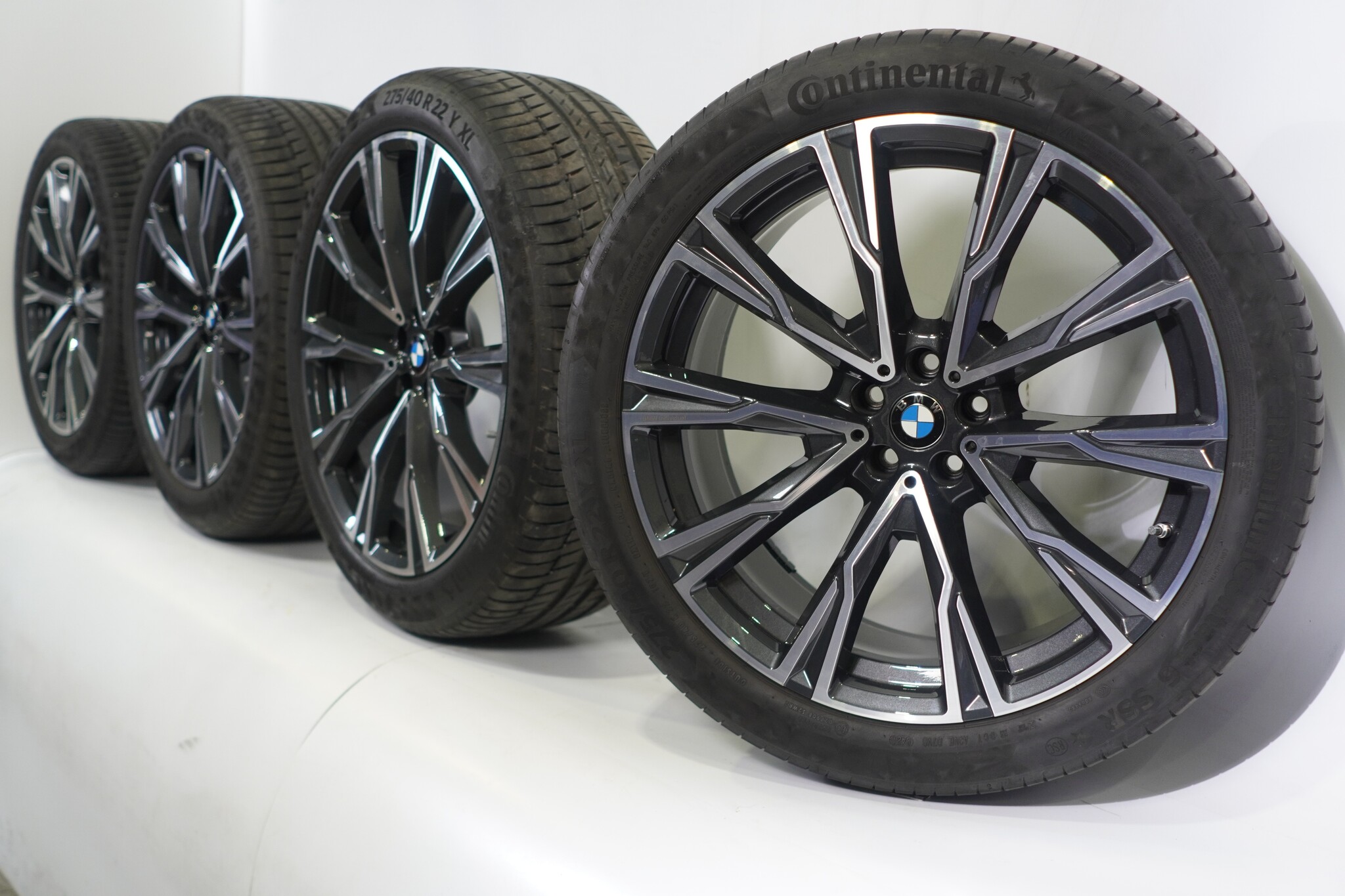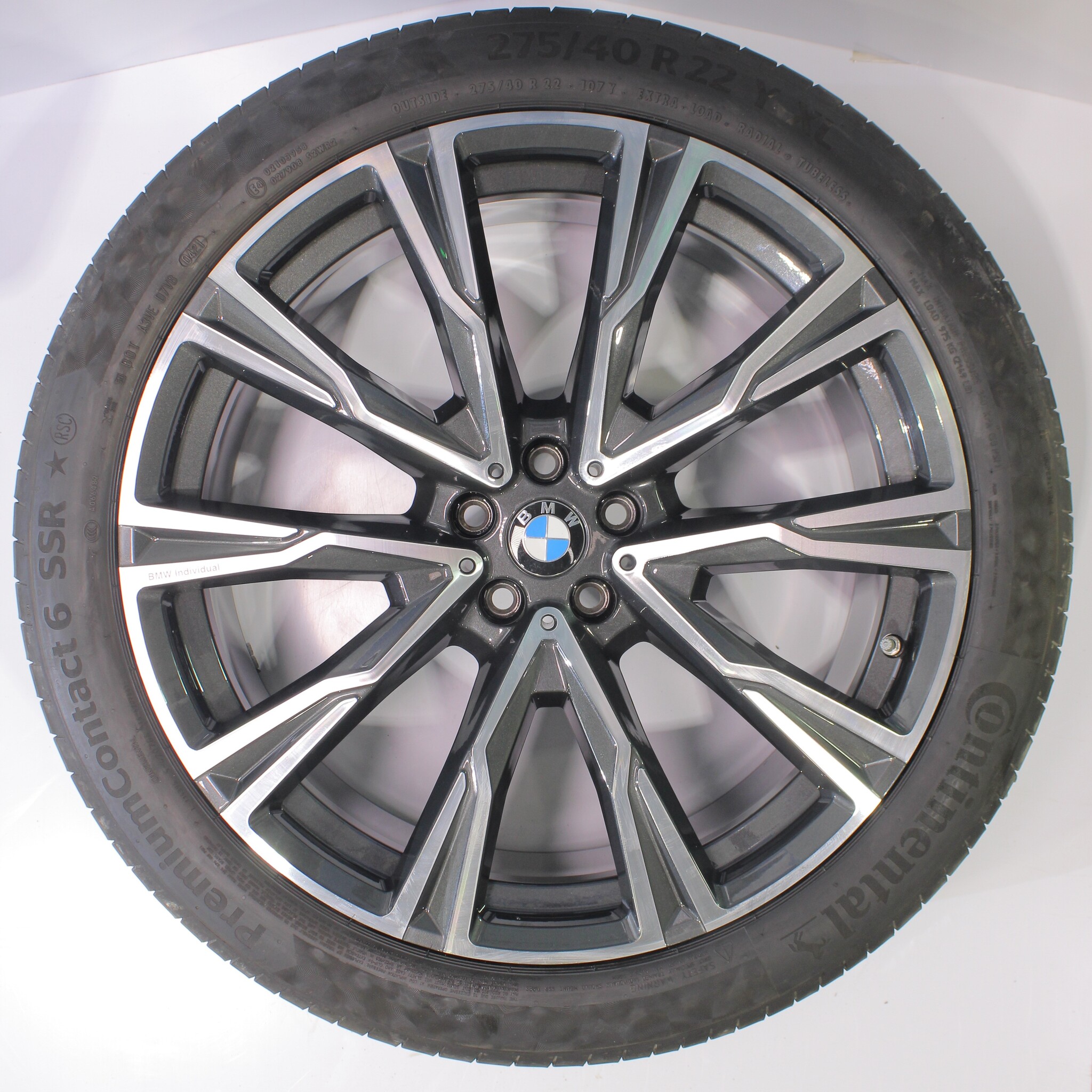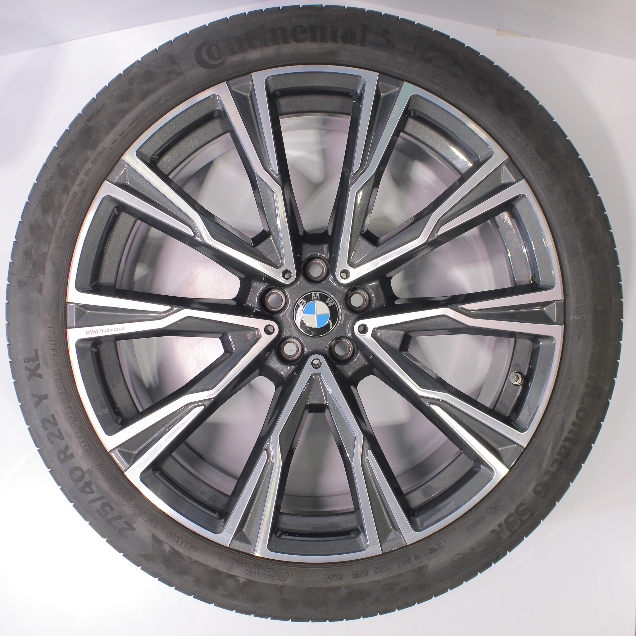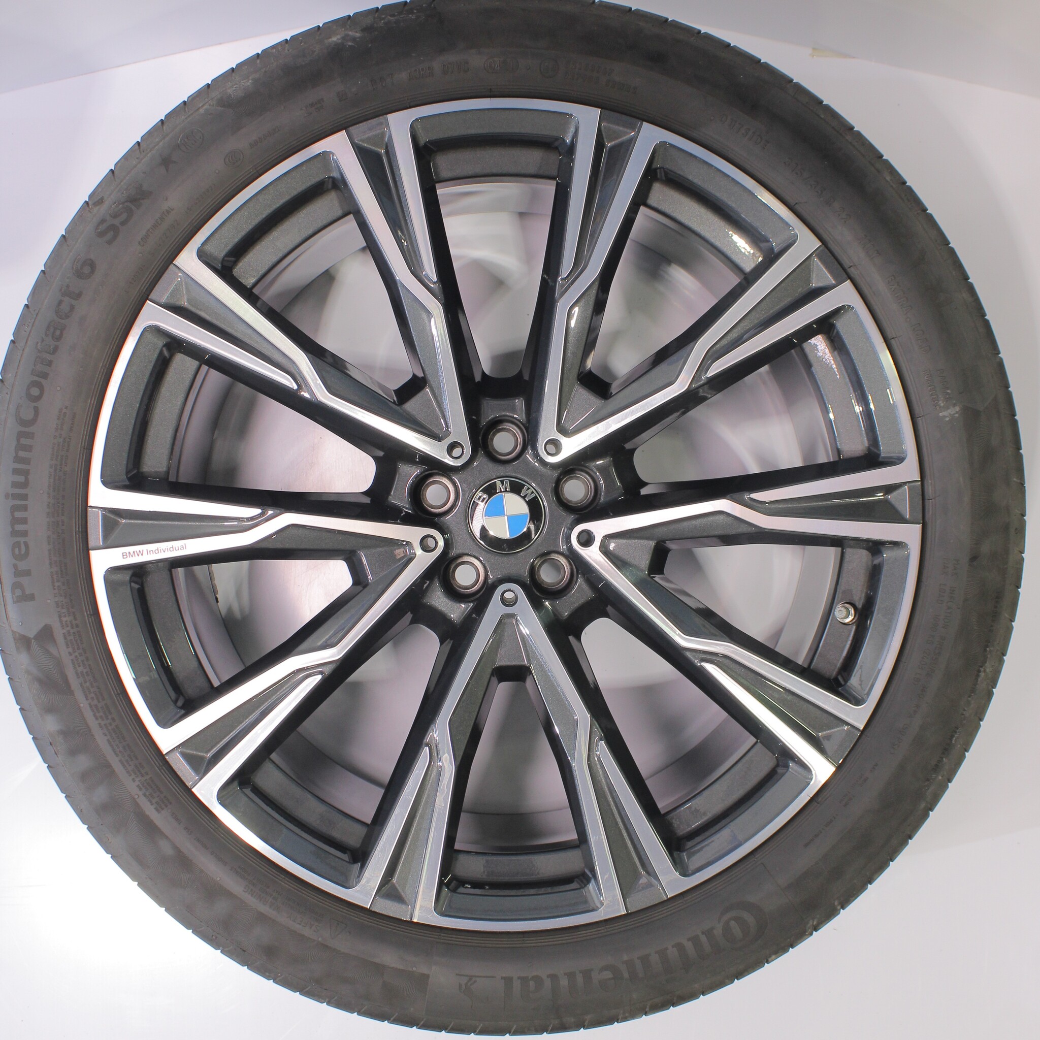 Original wheel set from BMW, styling 758i 22 inch rims with Continental PremiumContact 6 Runflat Summer Tires. These rims are original rims of the brand BMW and suitable for: BMW X7 G07.