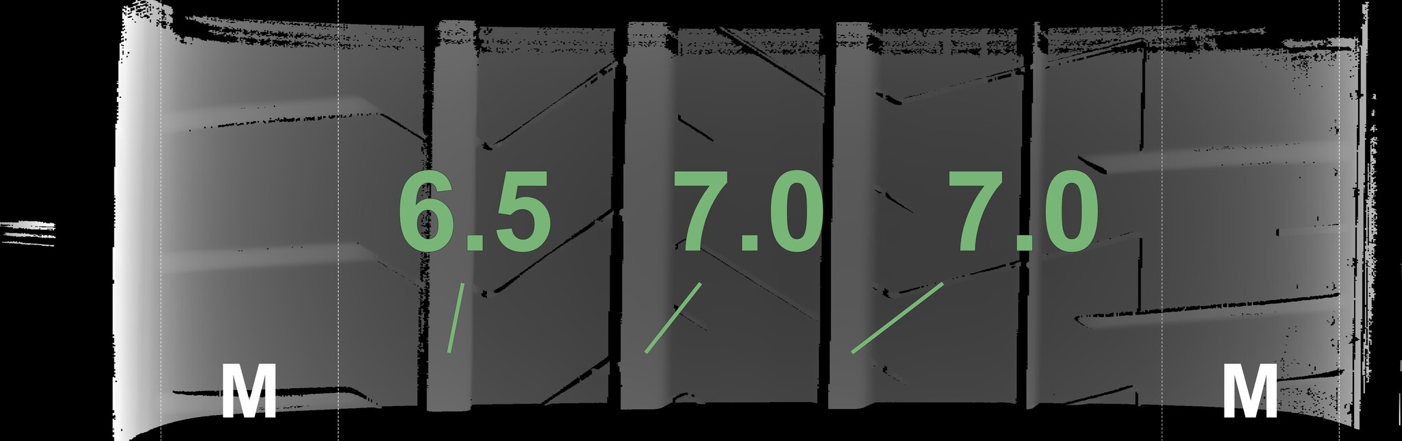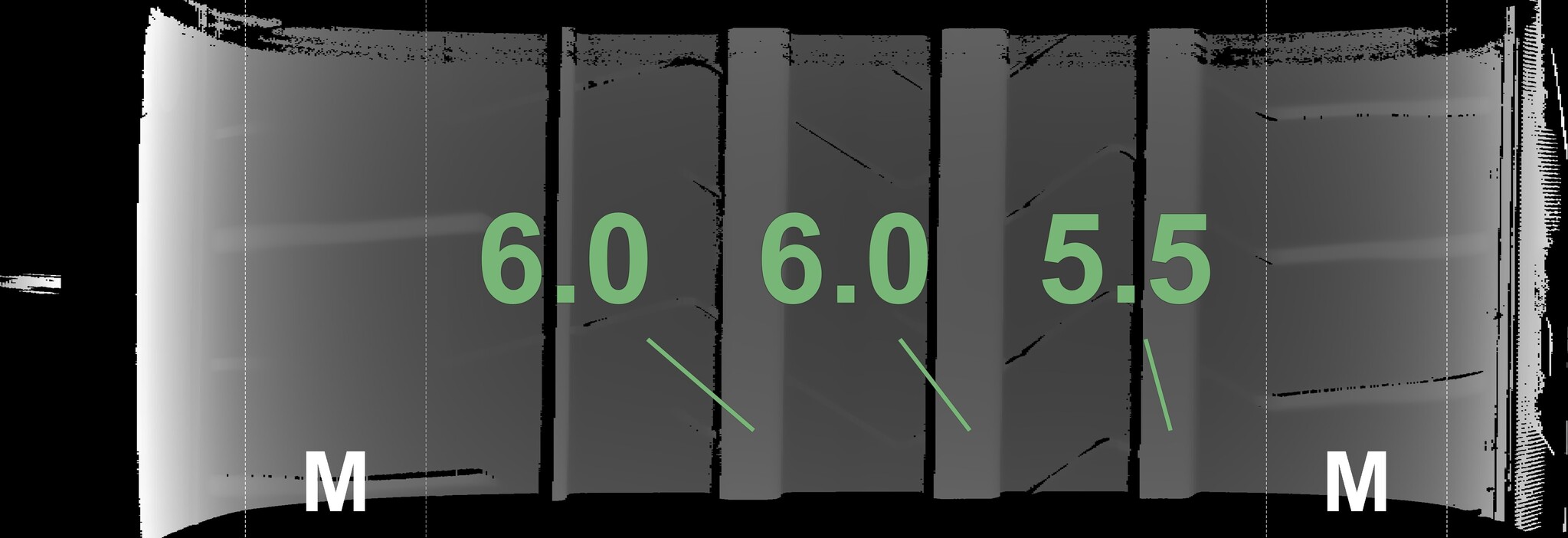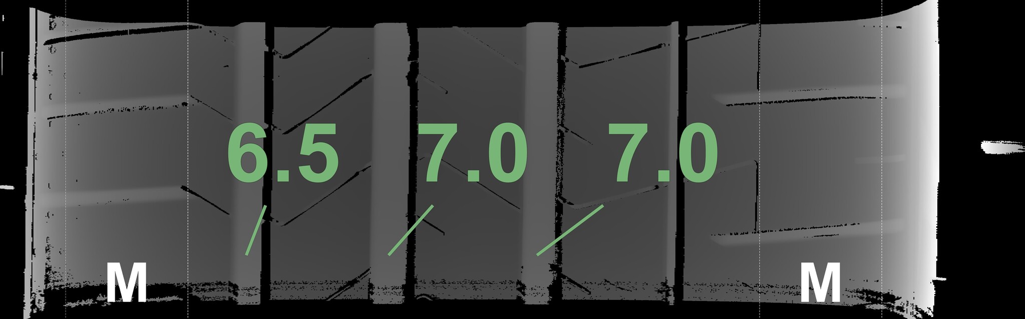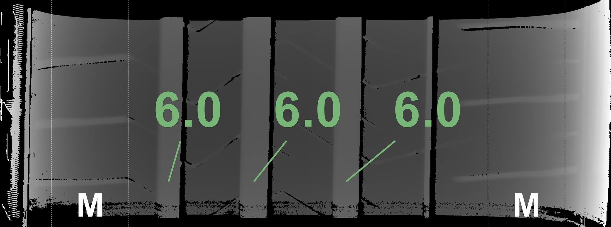The measured tread depths and the details of the rims are shown above.