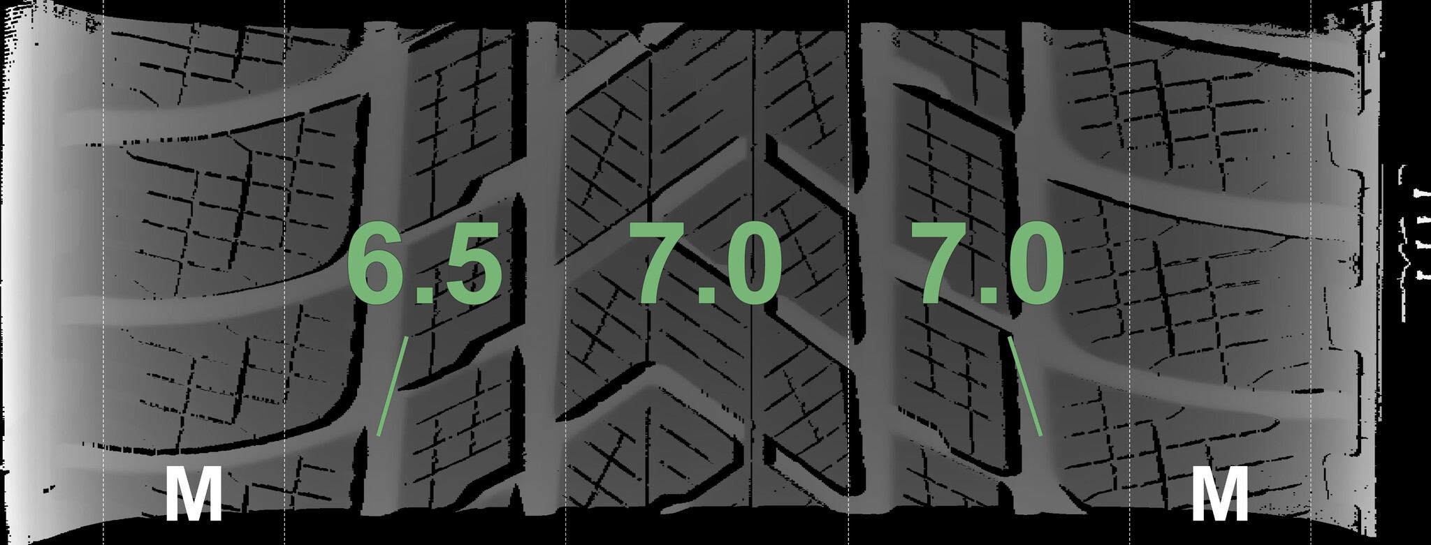 | Condition | Profile depth | DOT | Front Left | Used | 6.8 mm | 3723 |