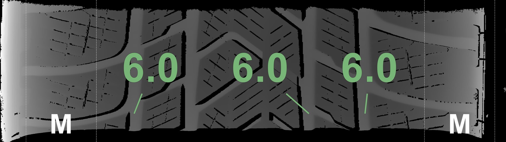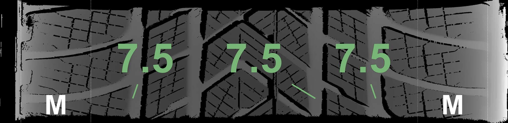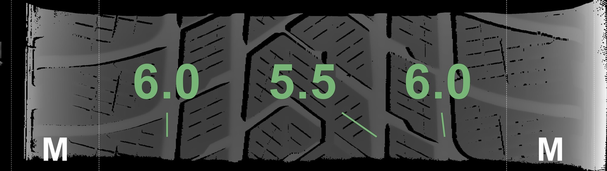 The measured tread depths and the details of the rims are shown above.