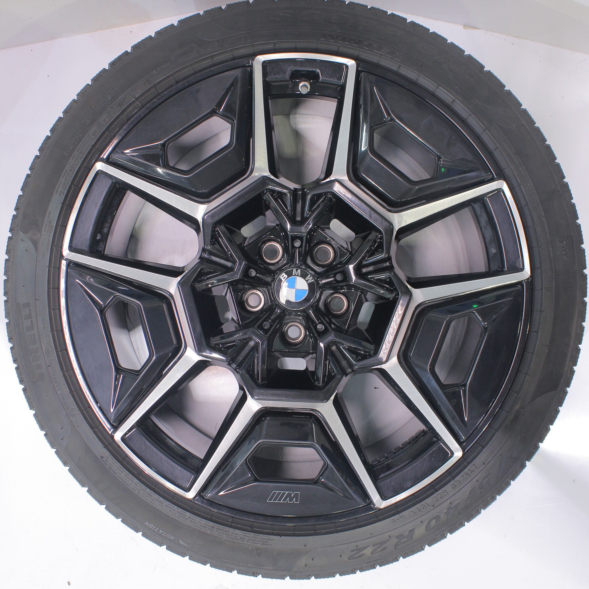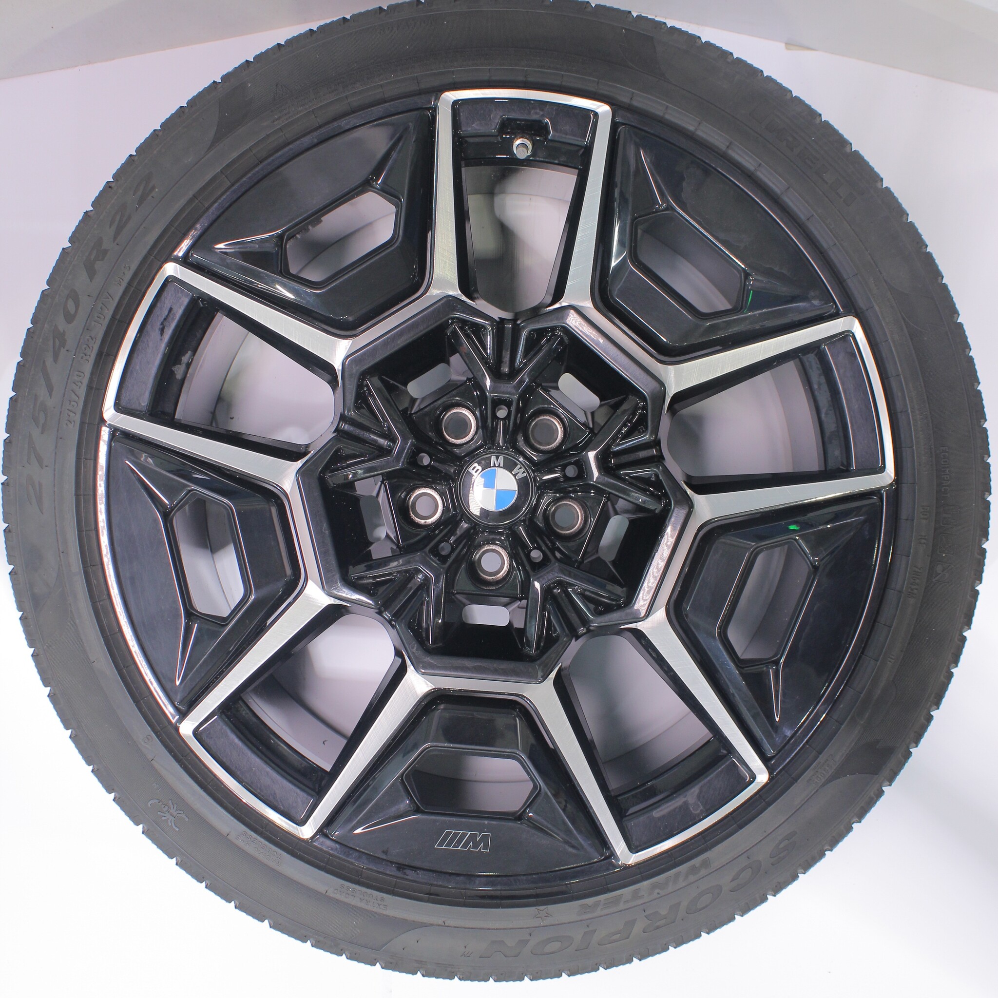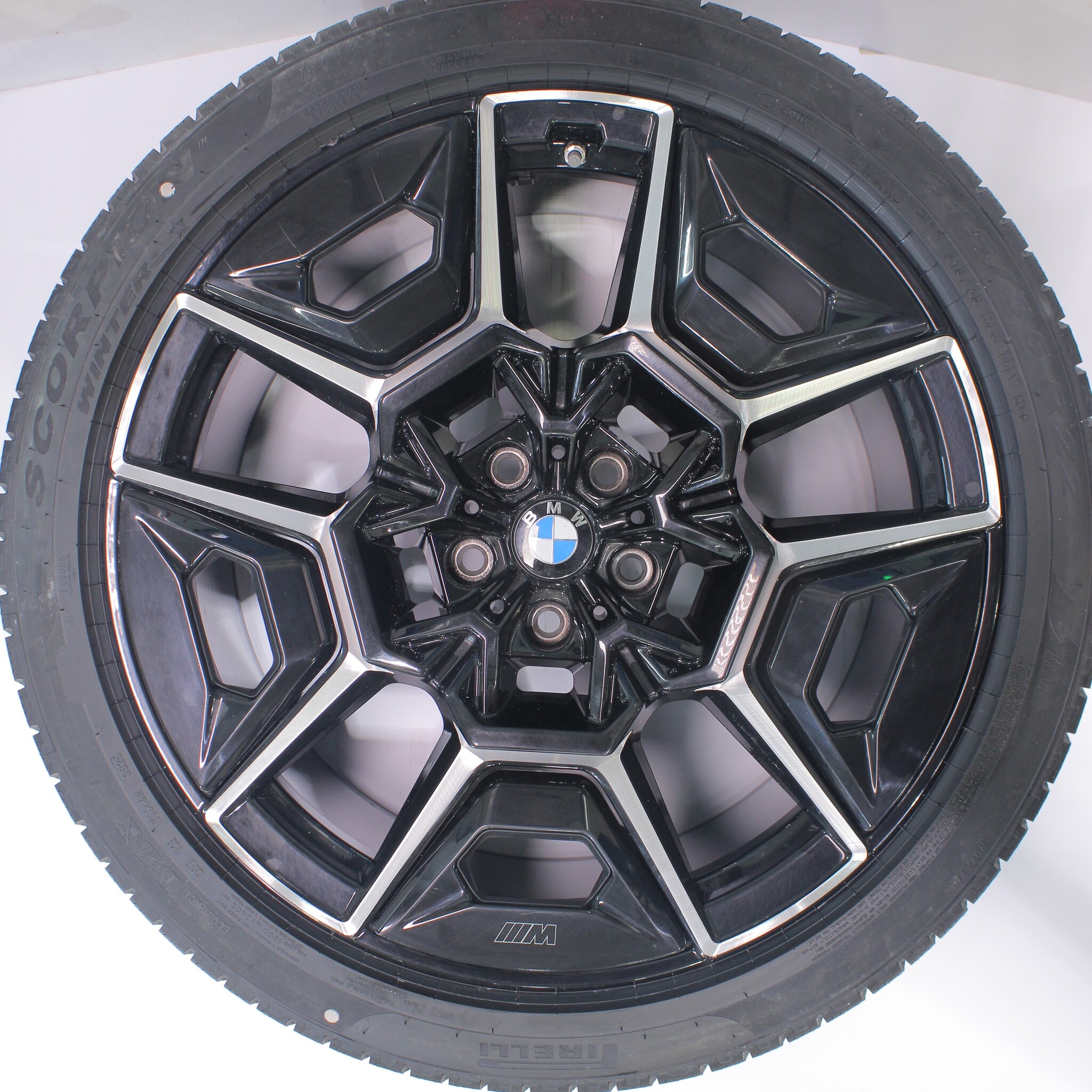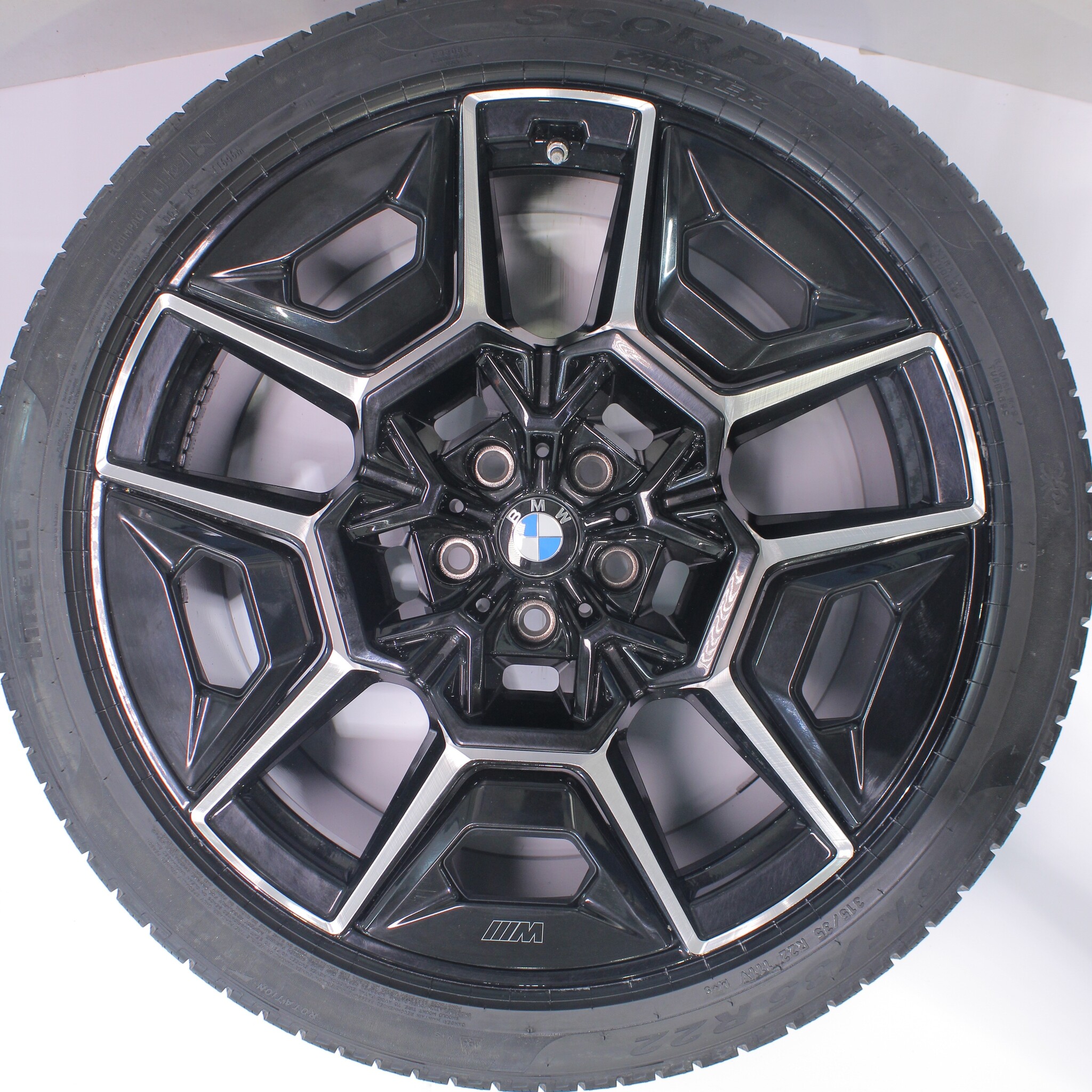 Original BMW wheel set, styling 922M, 22-inch rims with Pirelli Scorpion Winter tires. These rims are original BMW brand rims and suitable for: BMW XM G09.