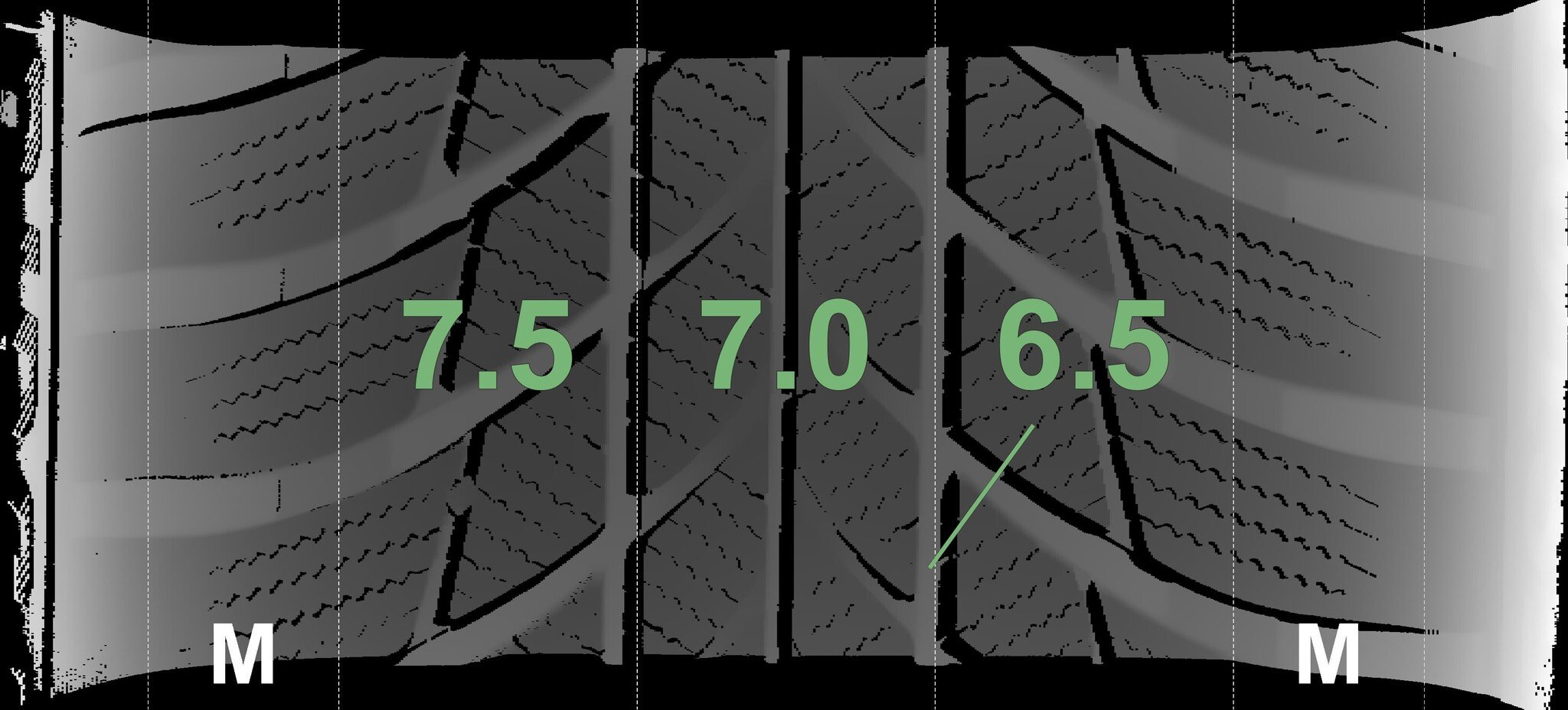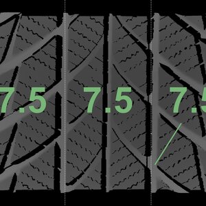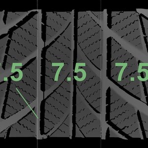 The measured tread depths and the details of the rims are shown above.
