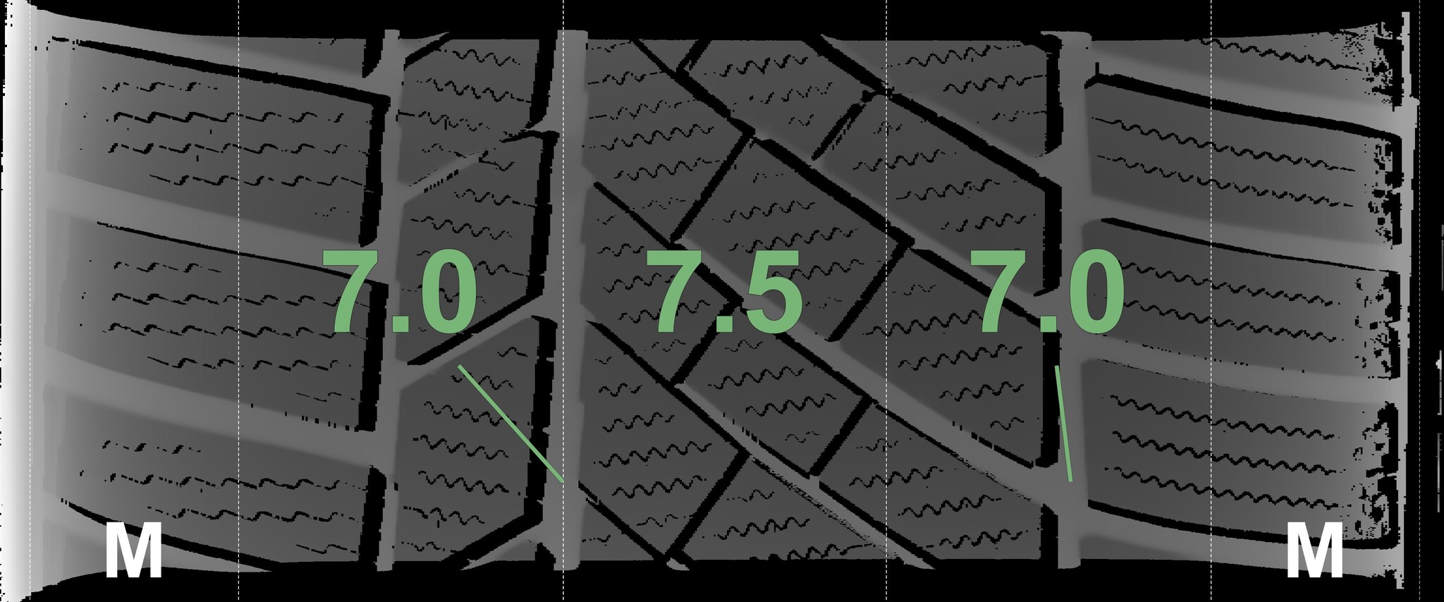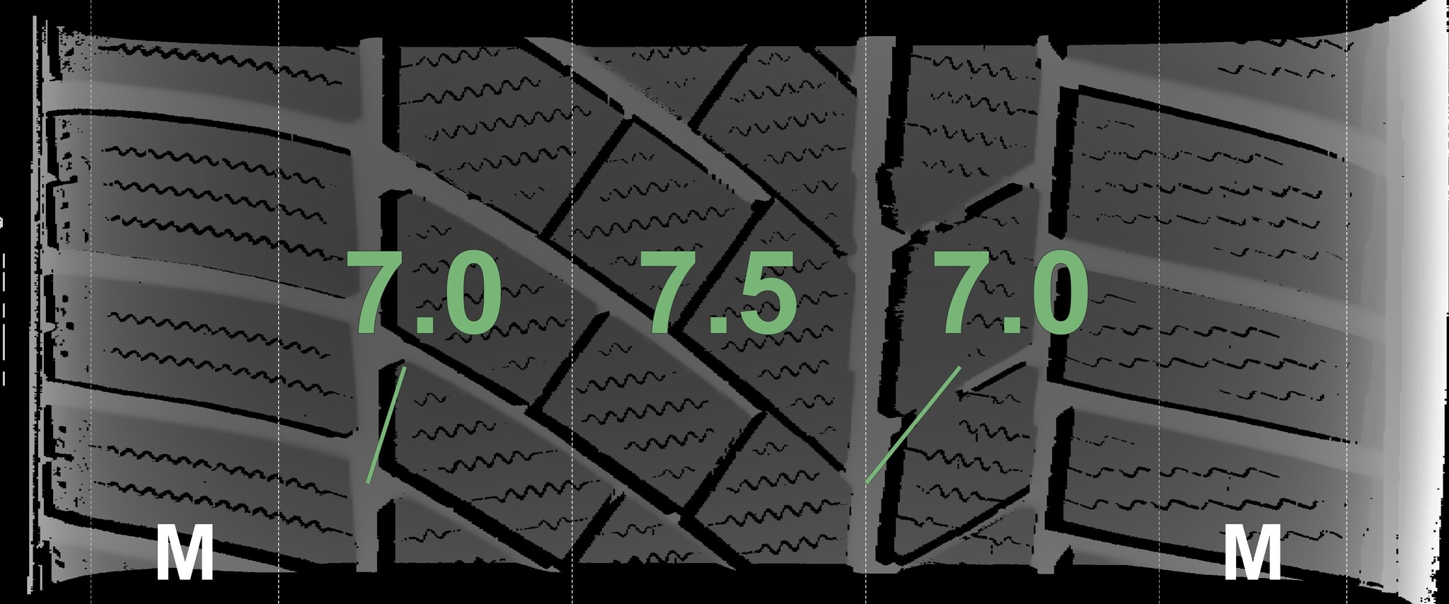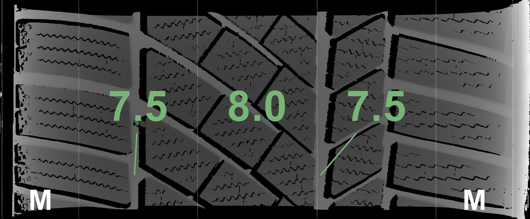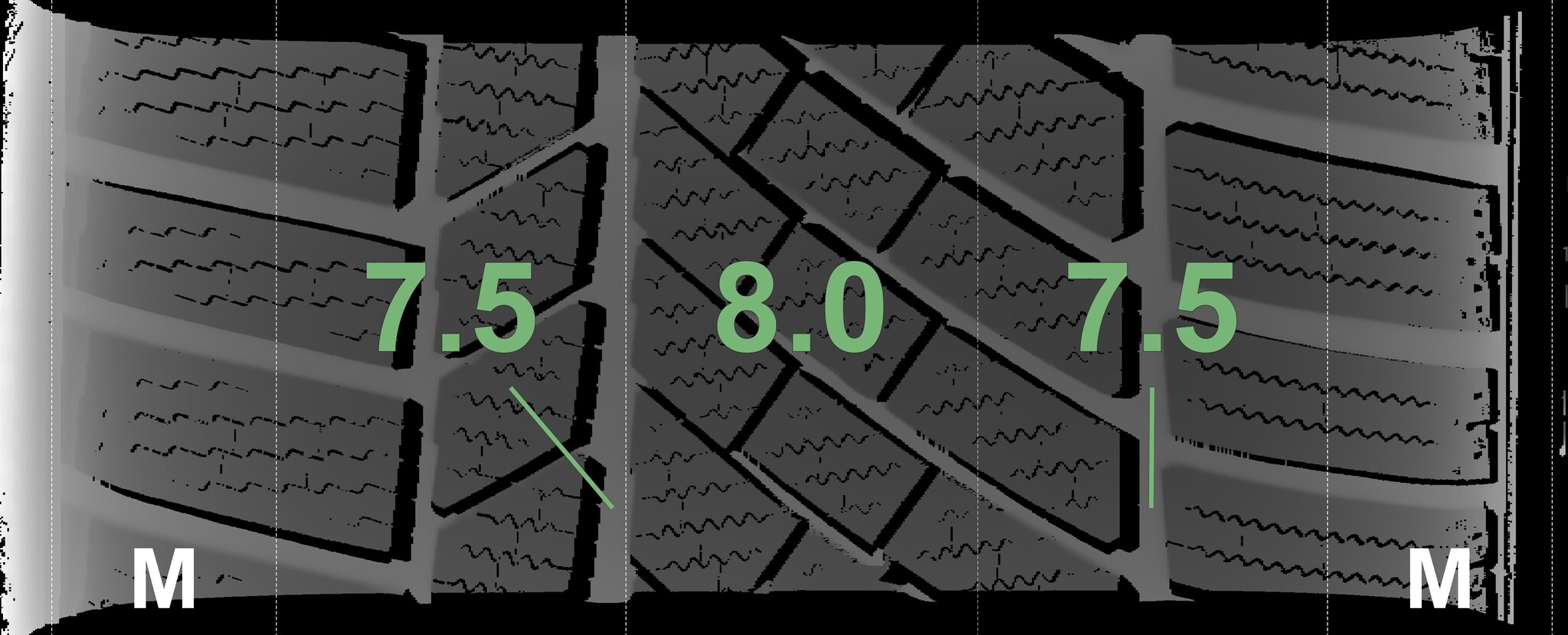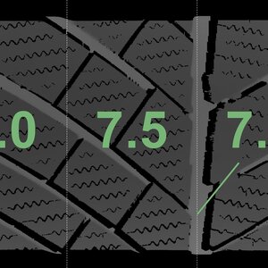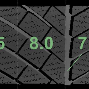The measured tread depths and details of the rims are shown above.