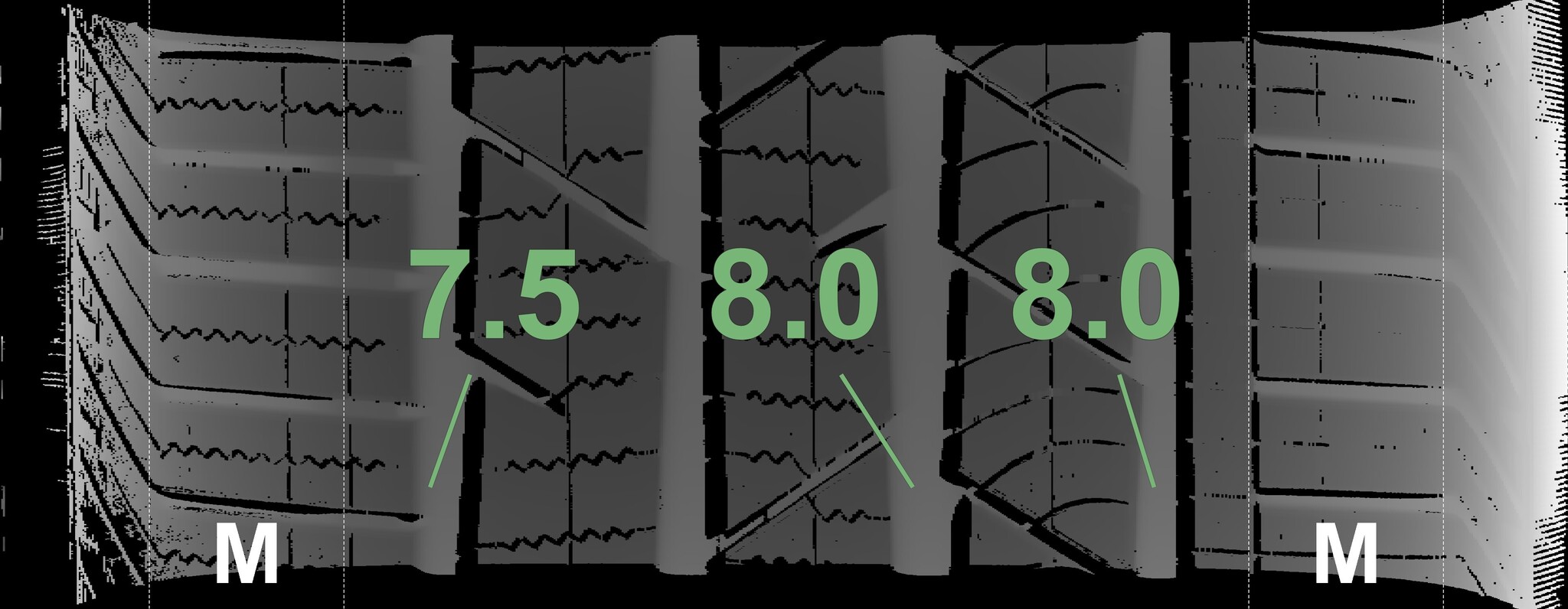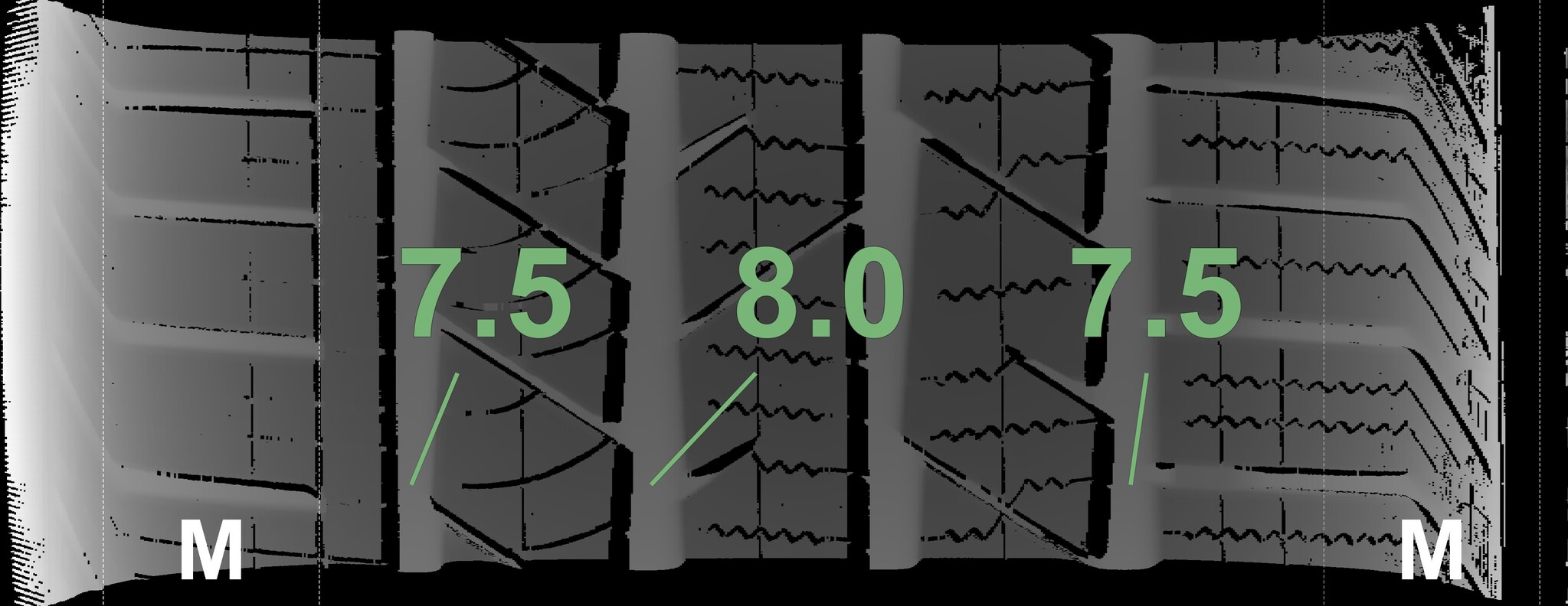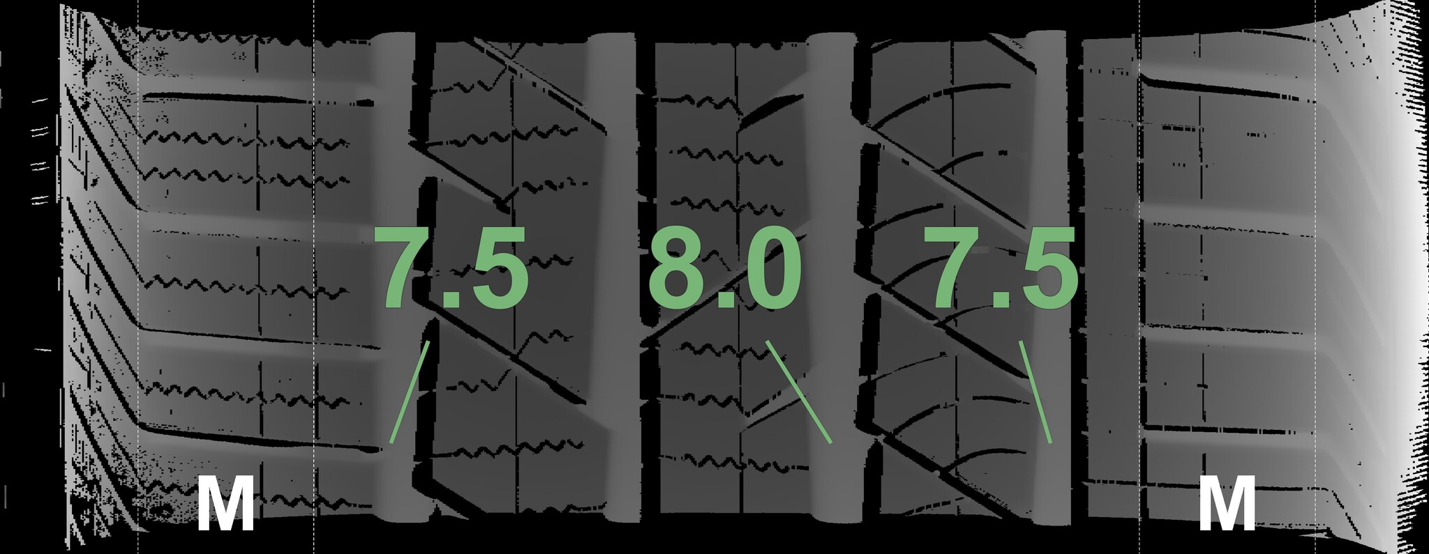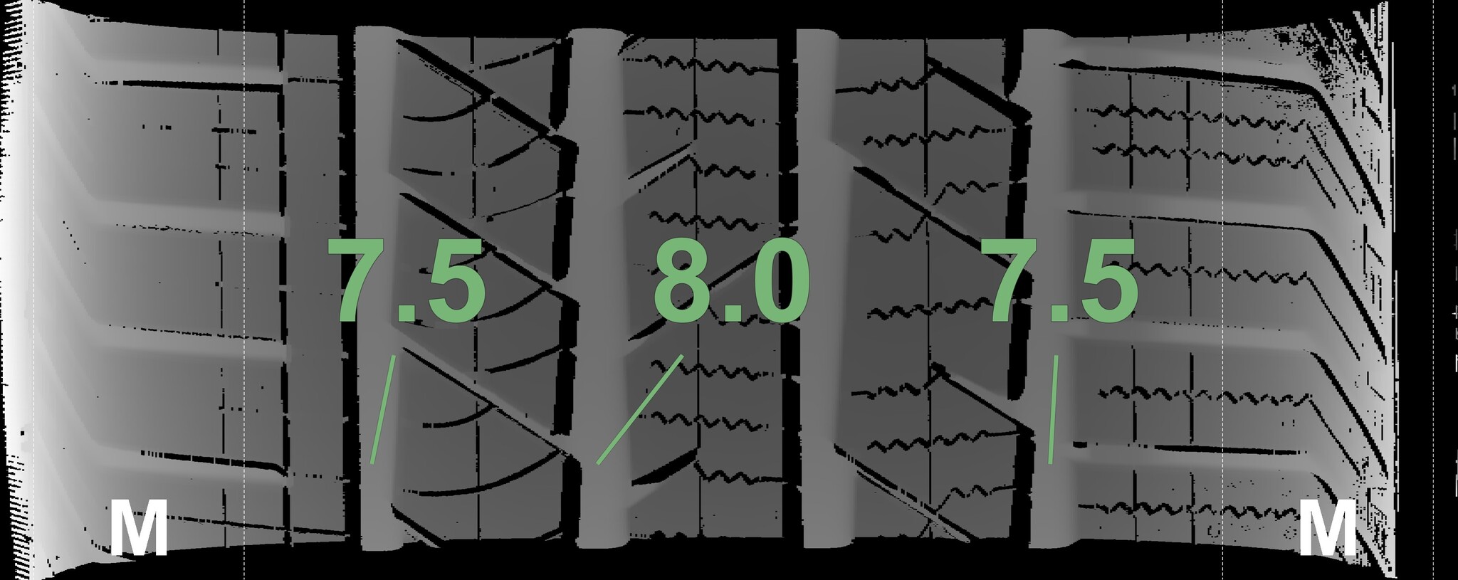The measured tread depths and details of the rims are shown above.