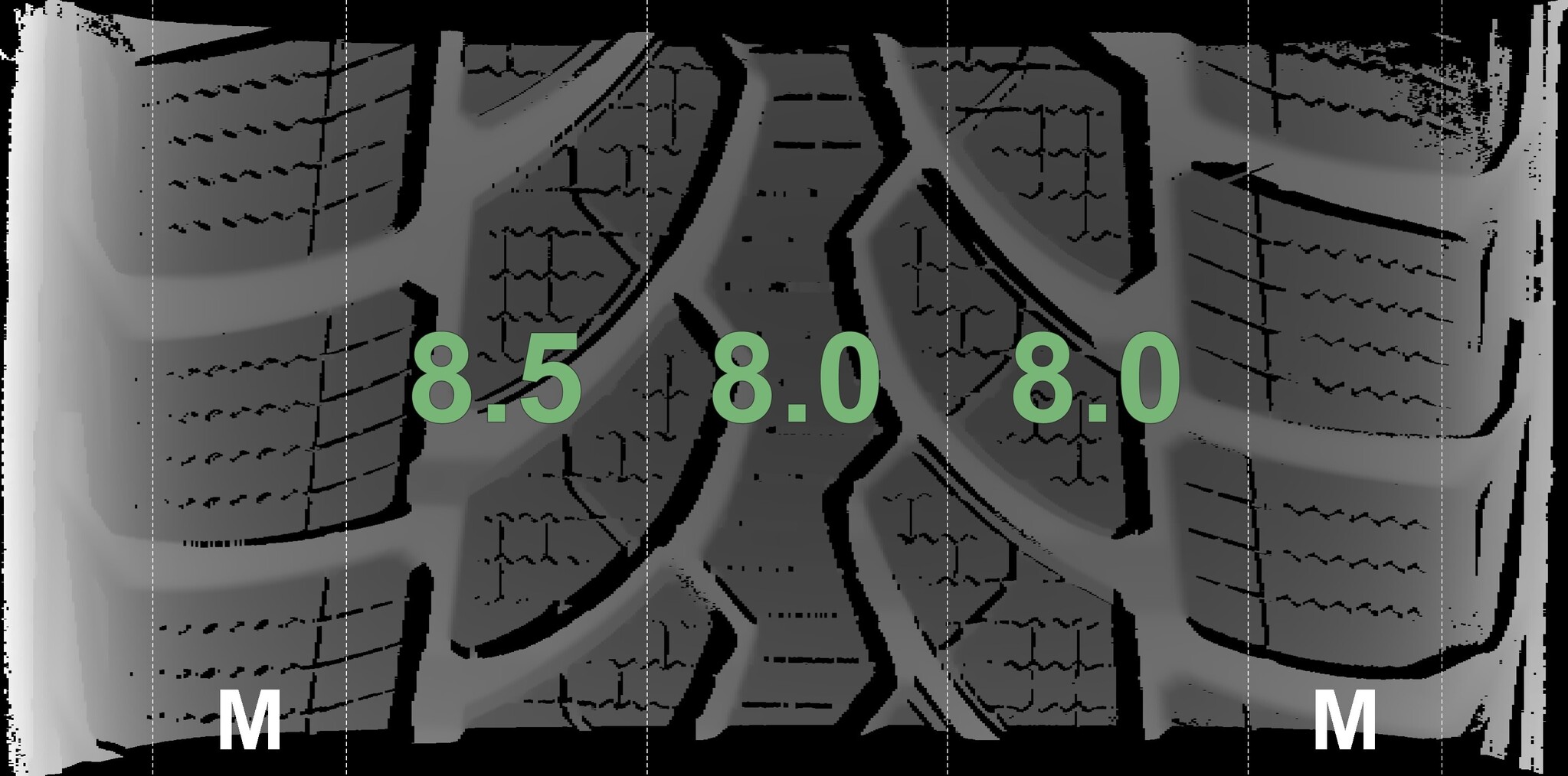 | Condition | Profile depth | DOT | Front Left | Used | 7.5 mm | 2115 |