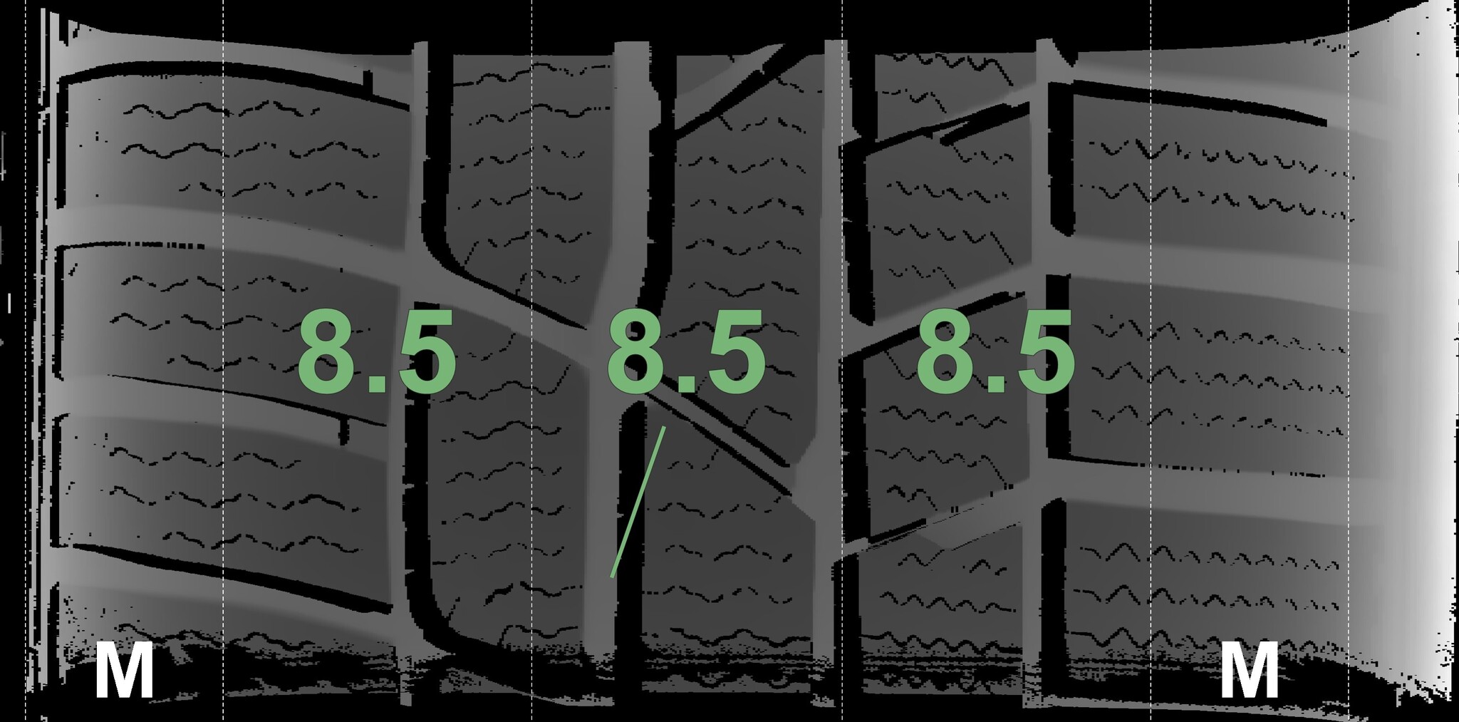 | Condition | Profile depth | DOT | Front Right | Used | 8.5 mm | 0115 |