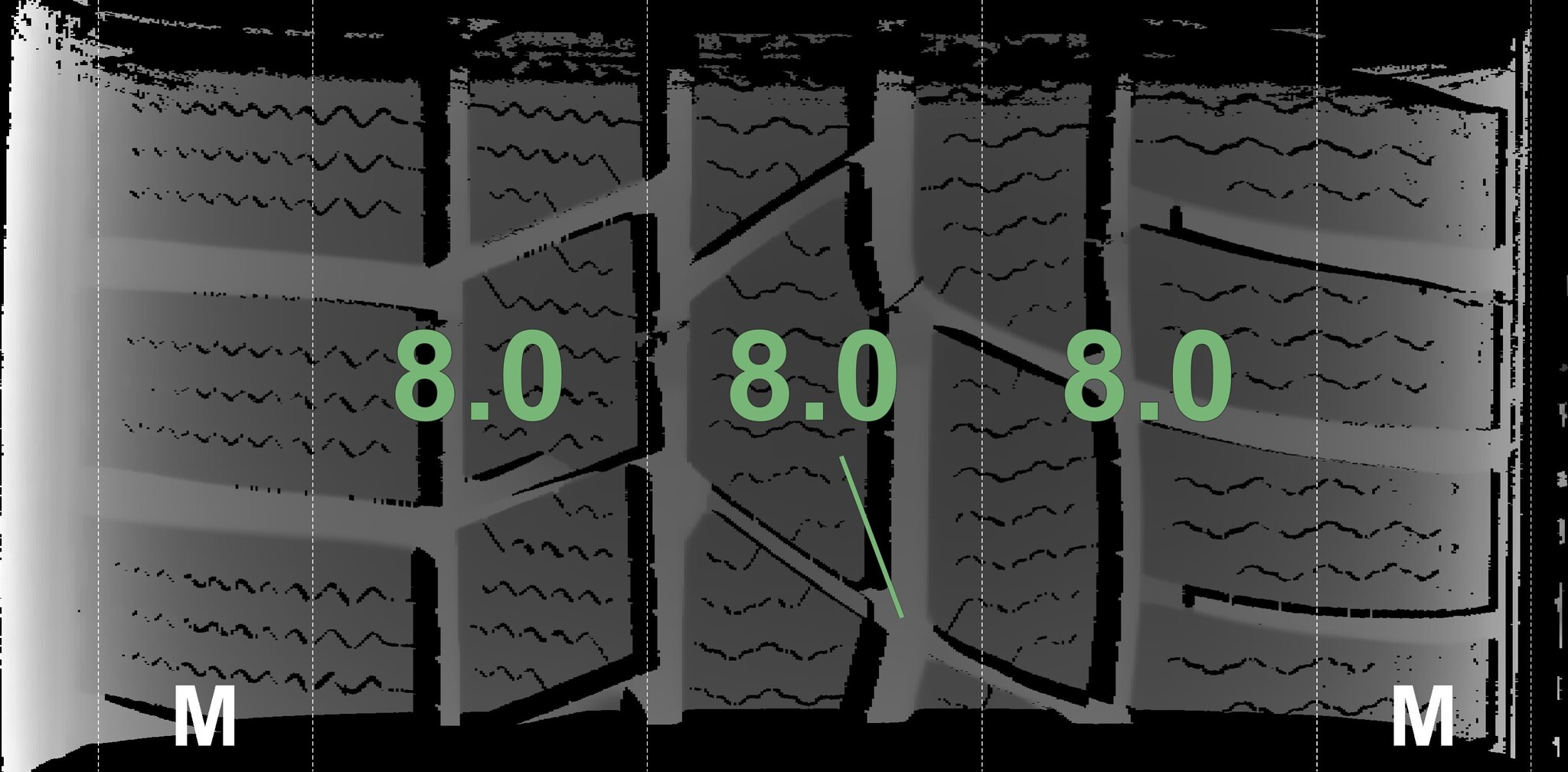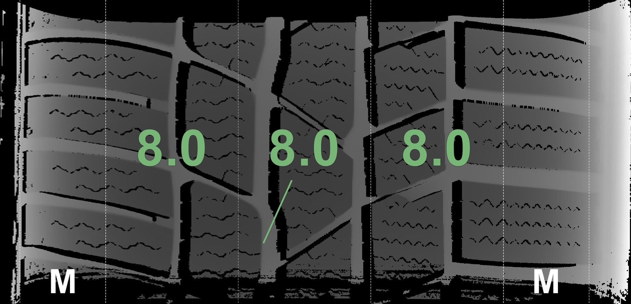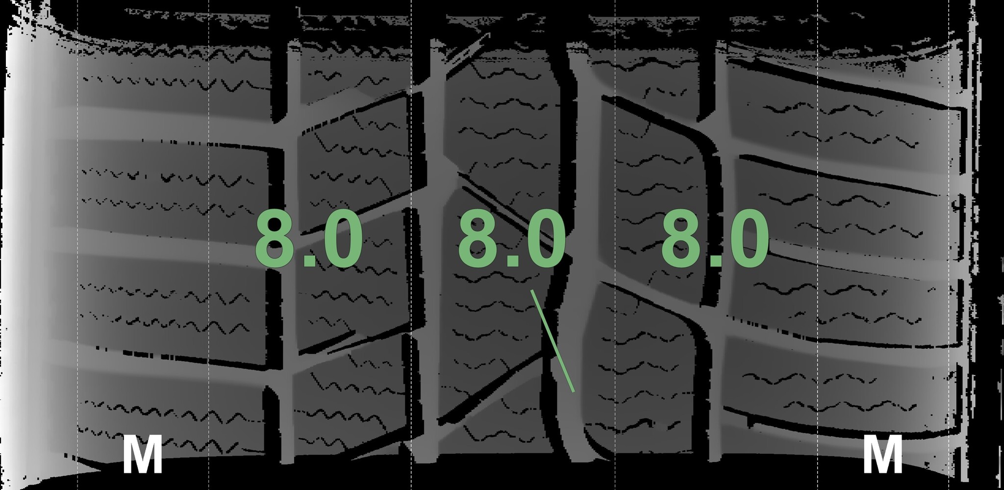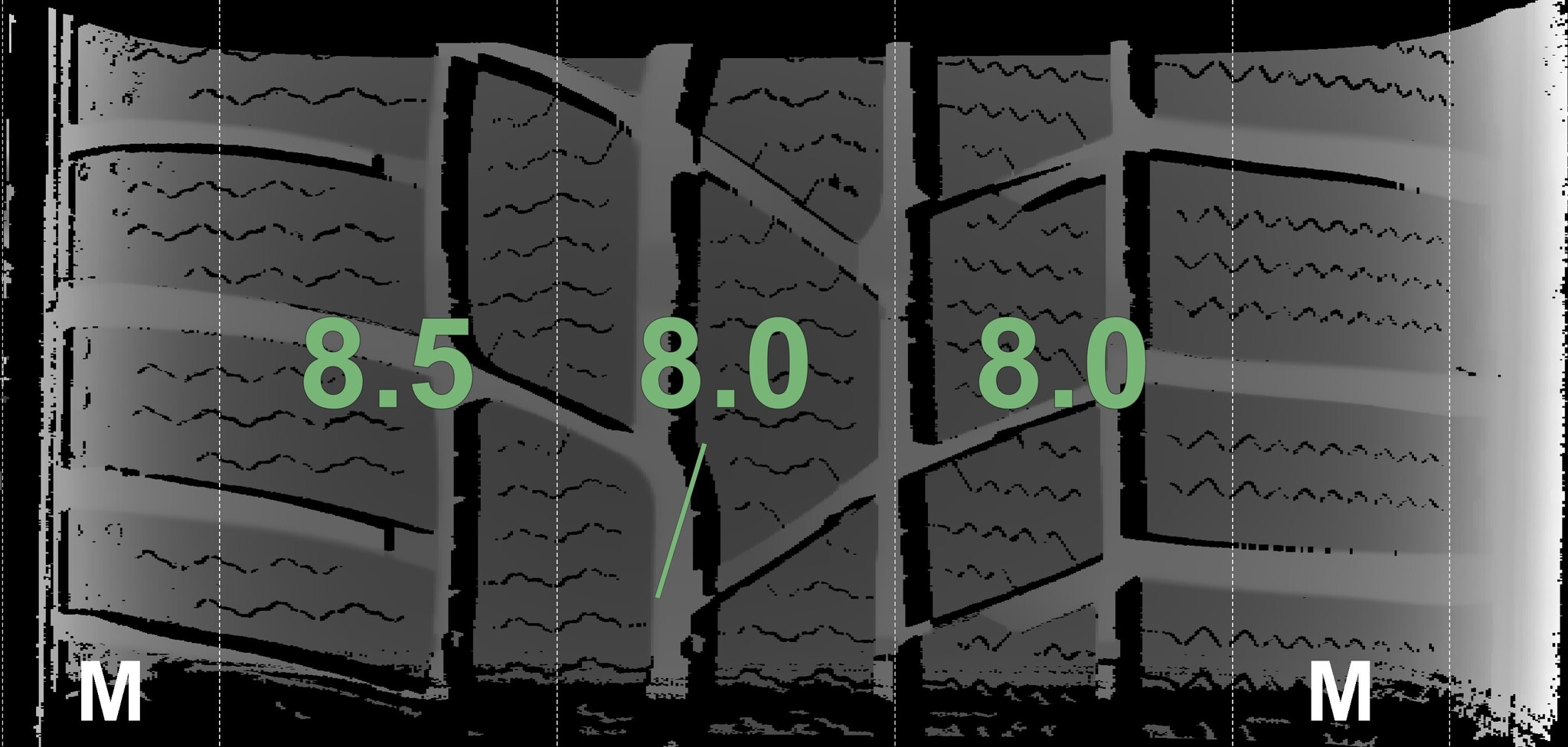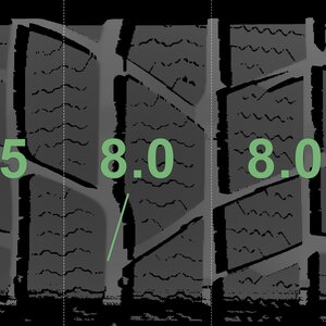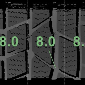 The measured tread depths and the details of the rims are shown above.