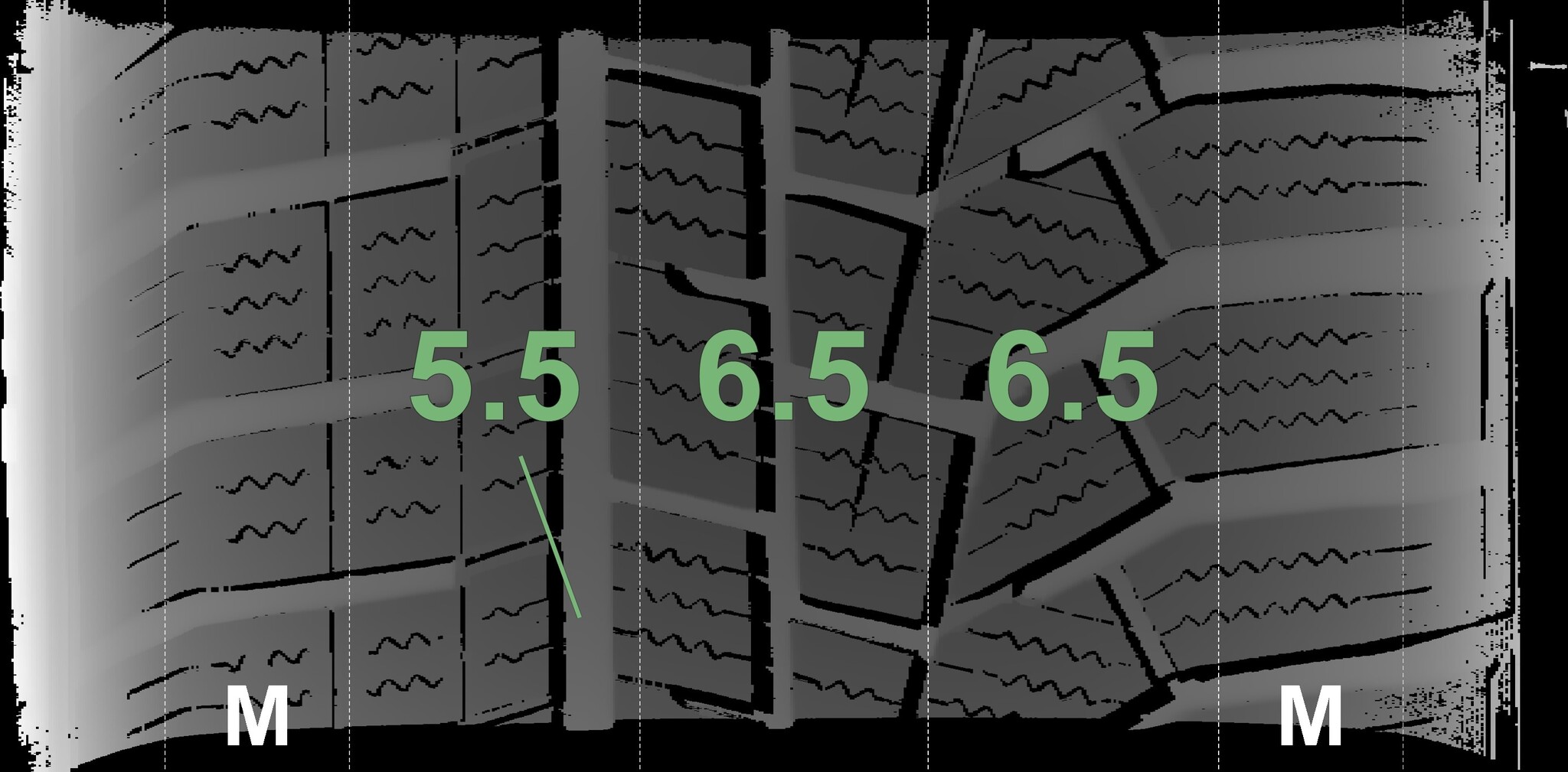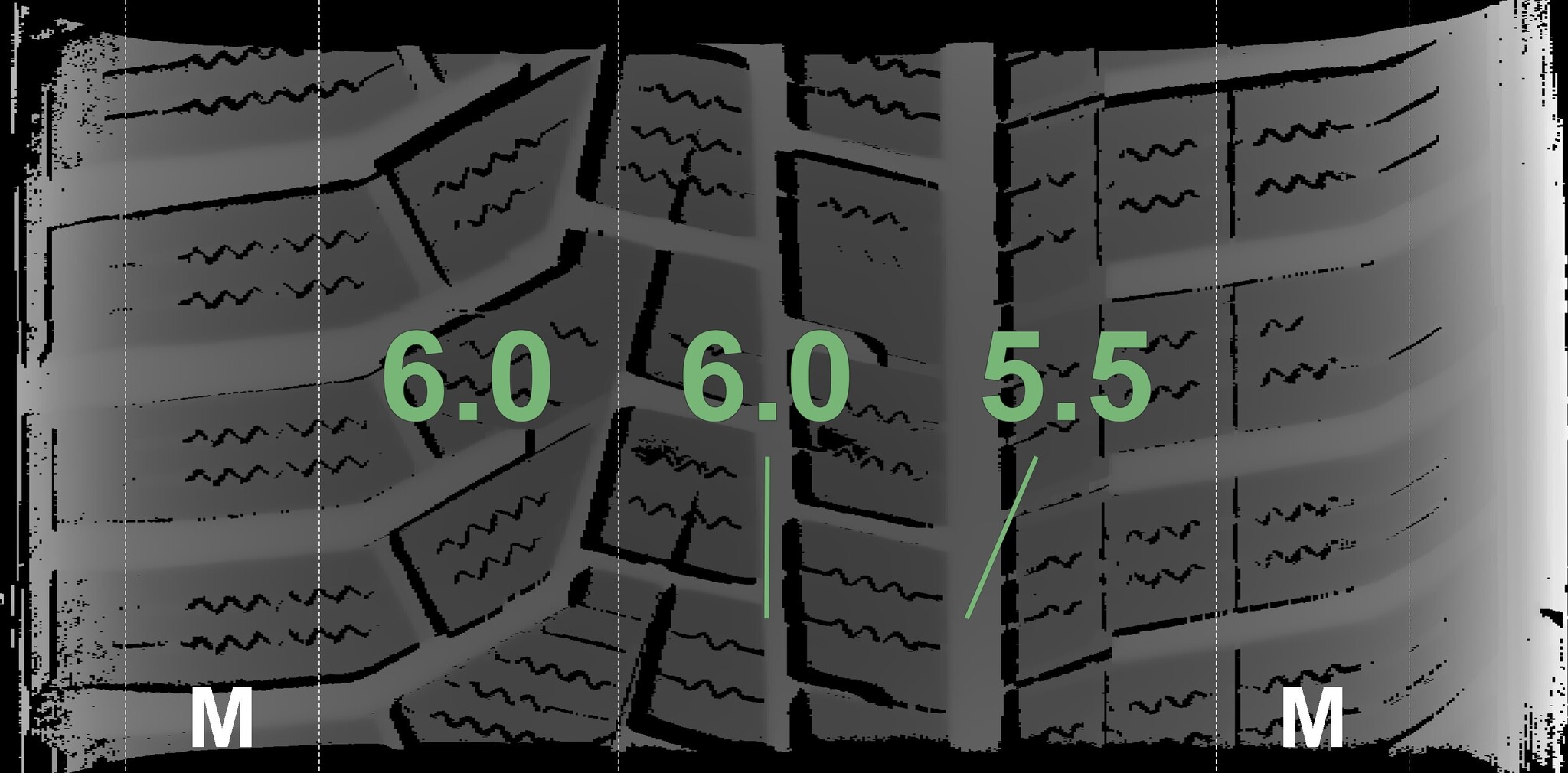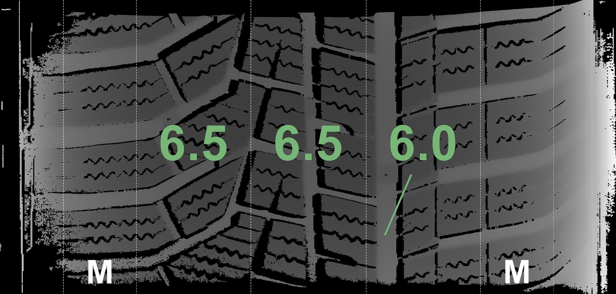 | Condition | Profile depth | DOT | Front Right | Used | 6.0 mm | 3821 |
