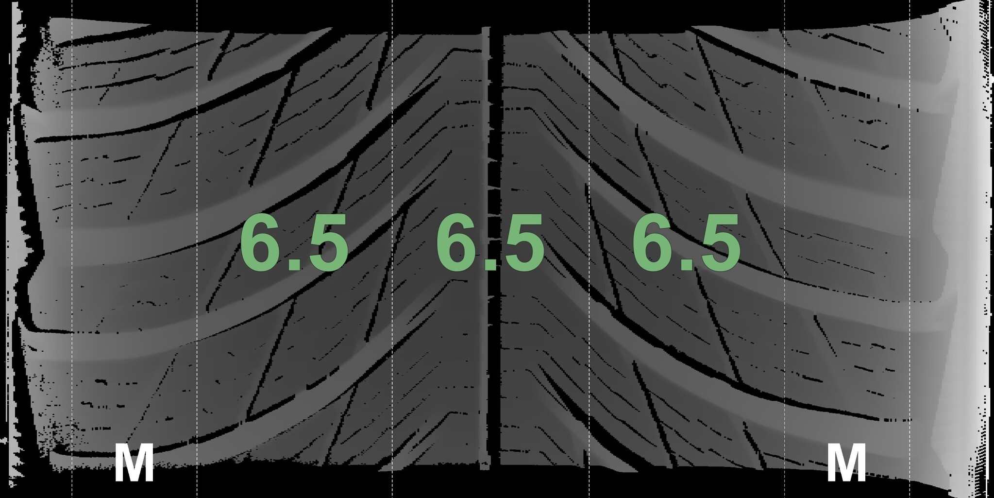 | Condition | Profile depth | DOT | Front Left | Demo studs still visible | 6.5 mm | 3119 |