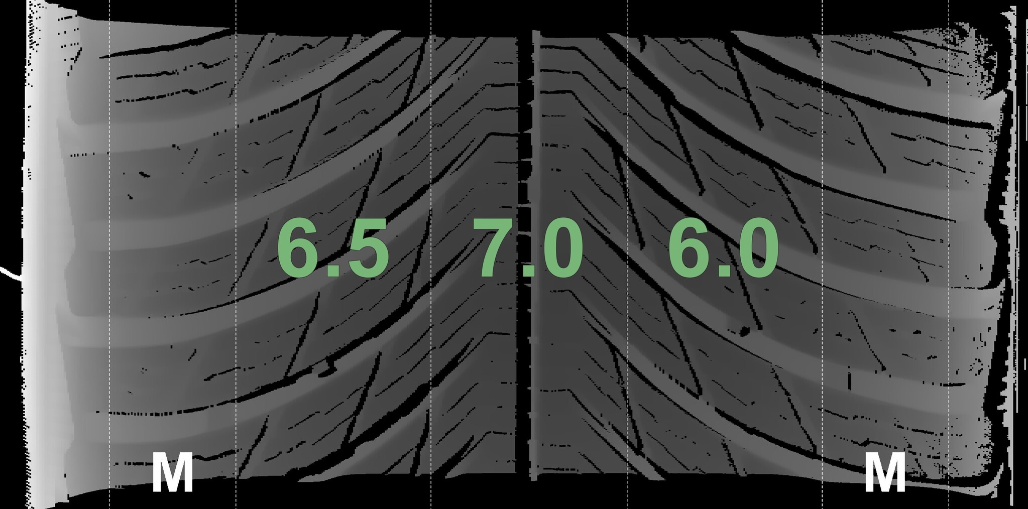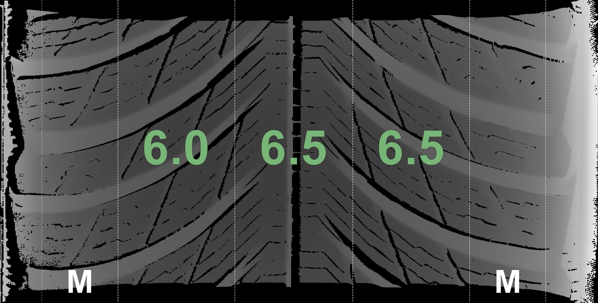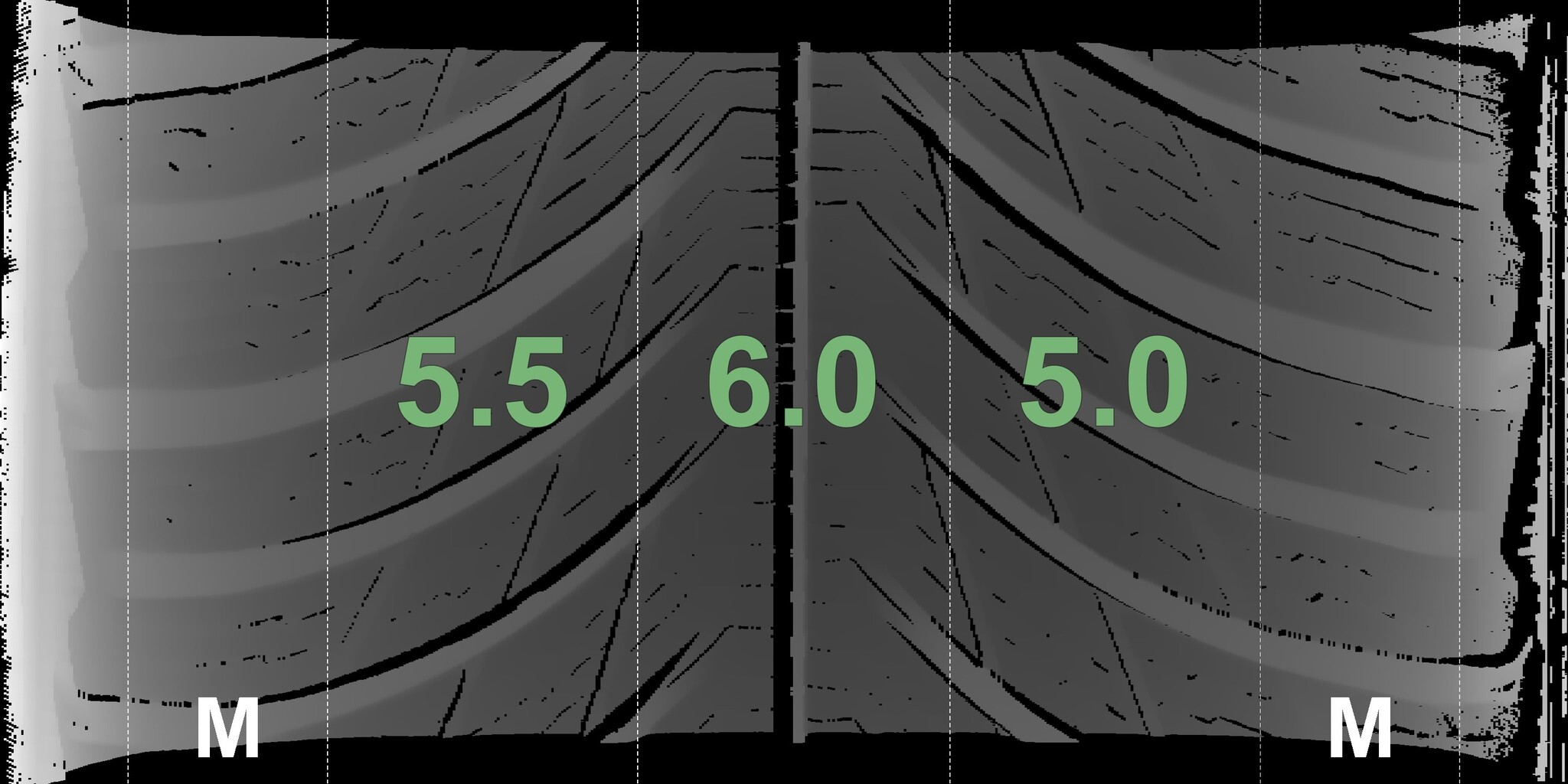 The measured tread depths and details of the rims are shown above.