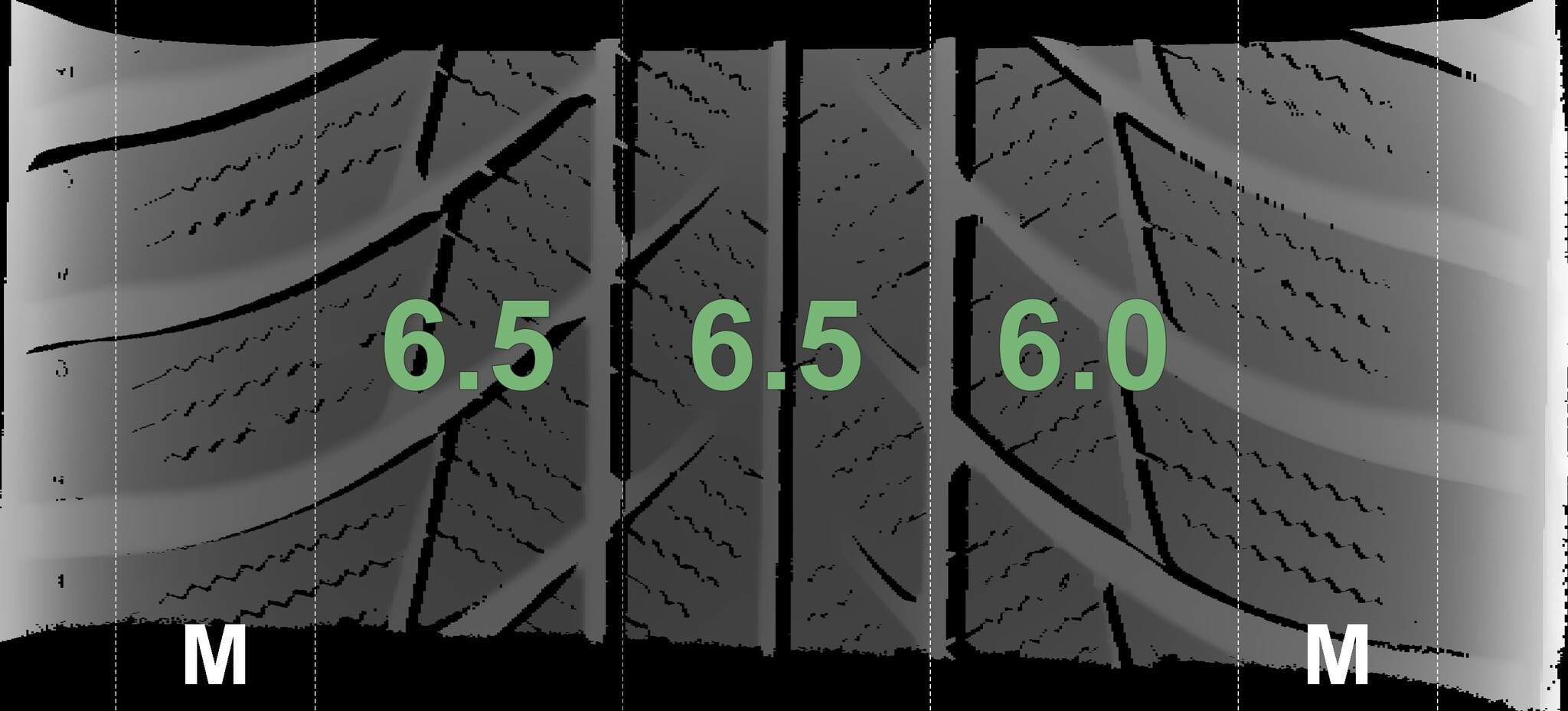| Condition | Profile depth | DOT | Front Left | Used | 6.7 mm | 0418 |