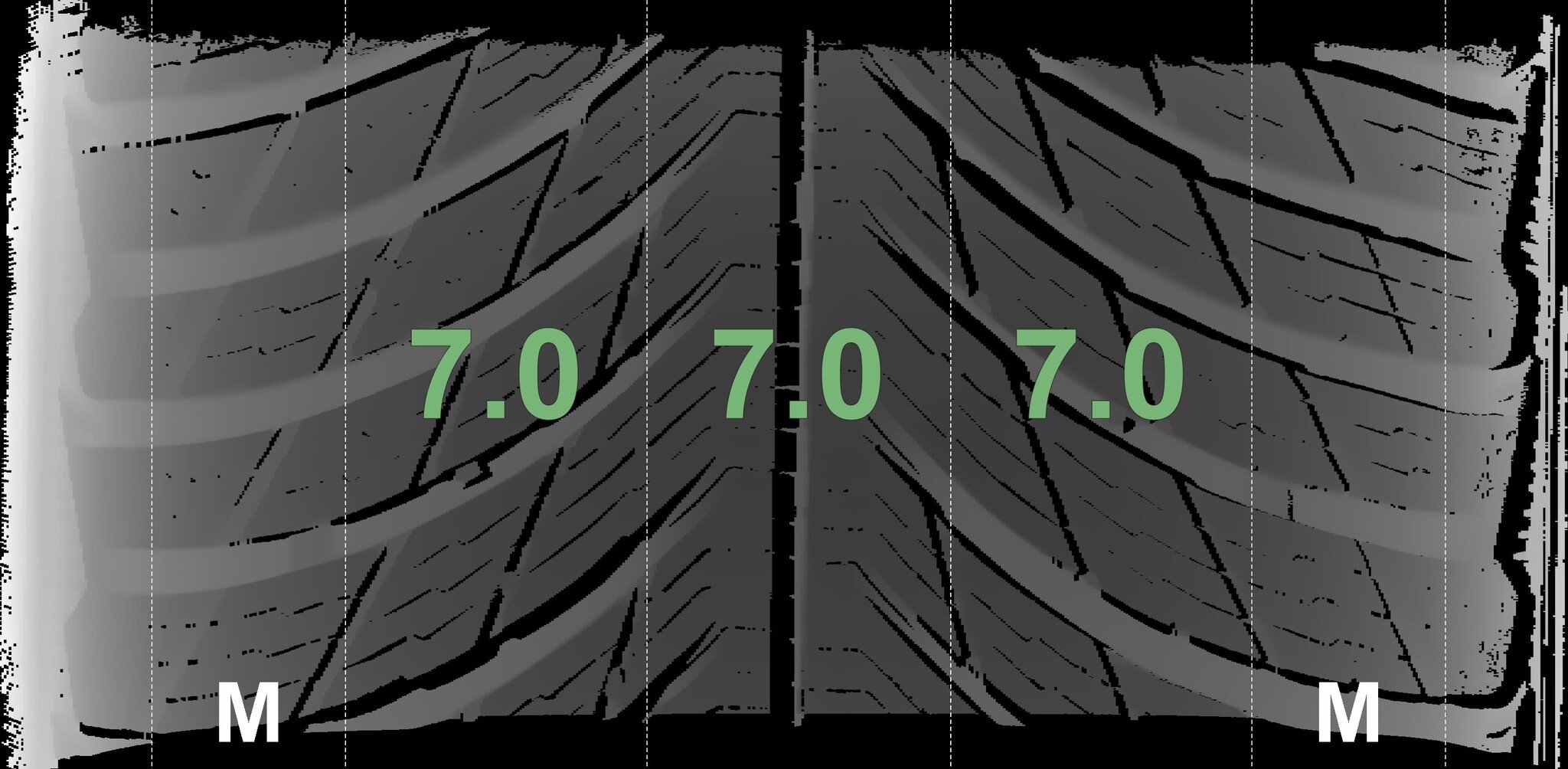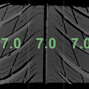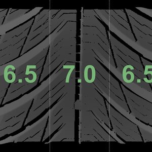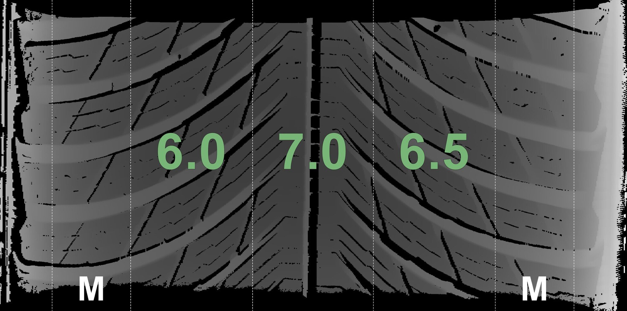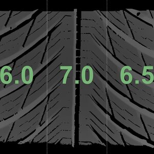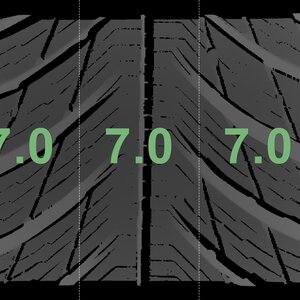 The measured tread depths and the details of the rims are shown above.