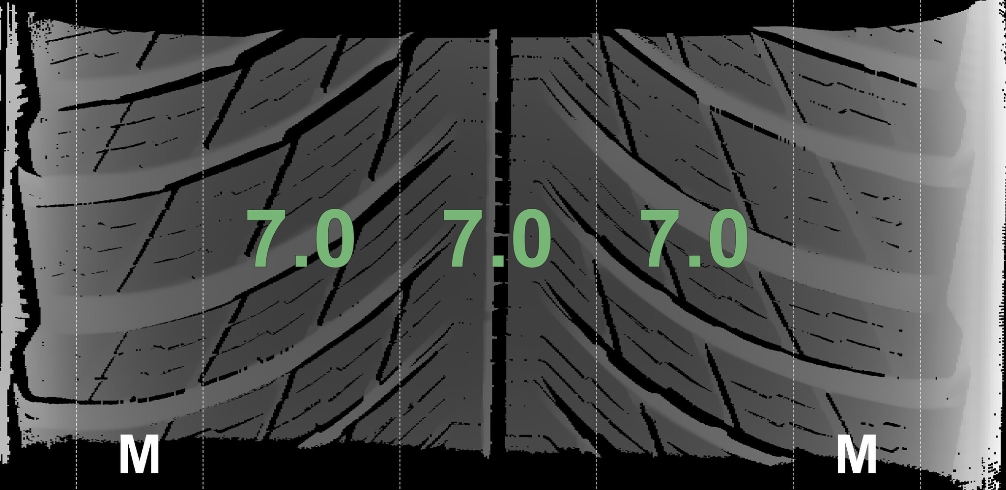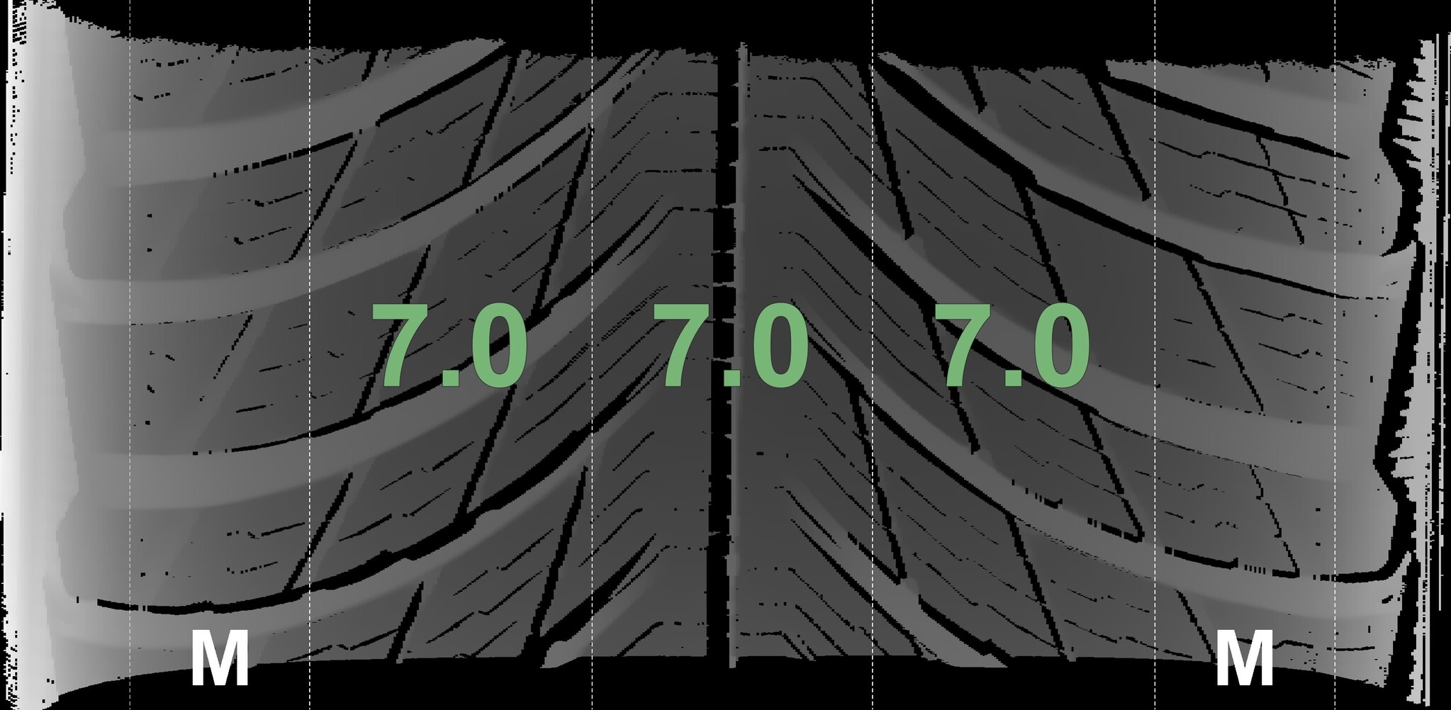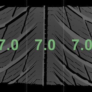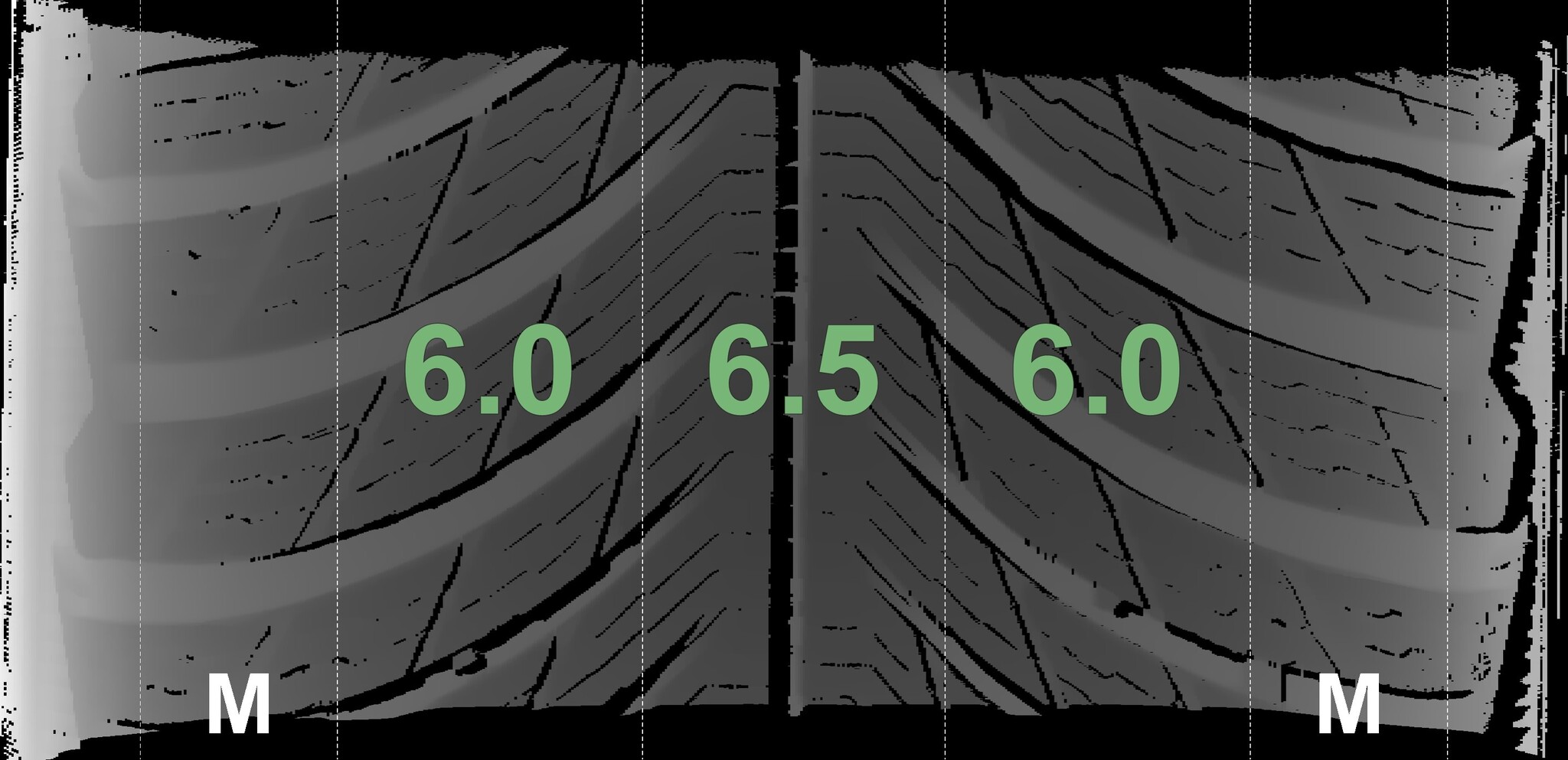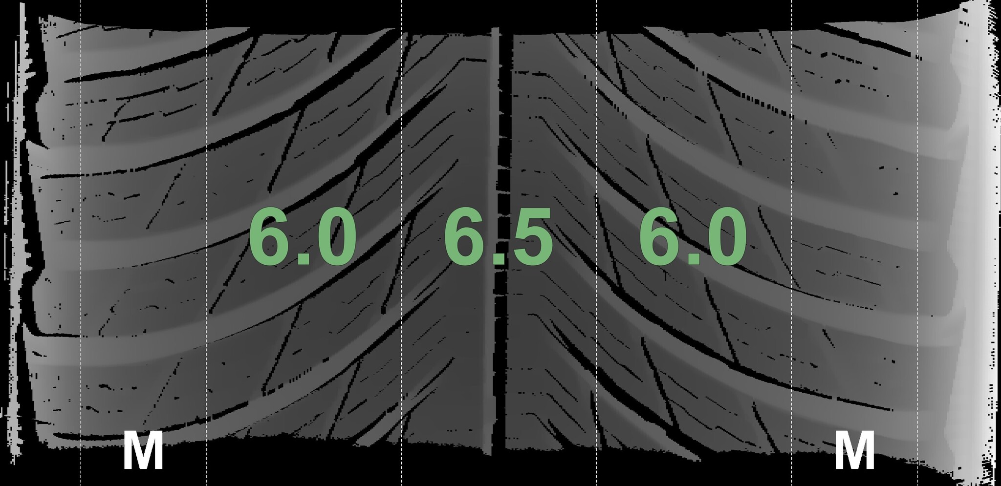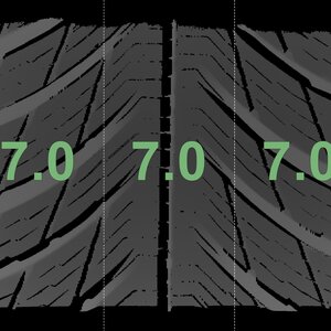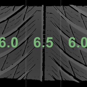 The measured tread depths and the details of the rims are shown above.