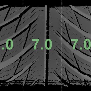 The measured tread depths and the details of the rims are shown above.