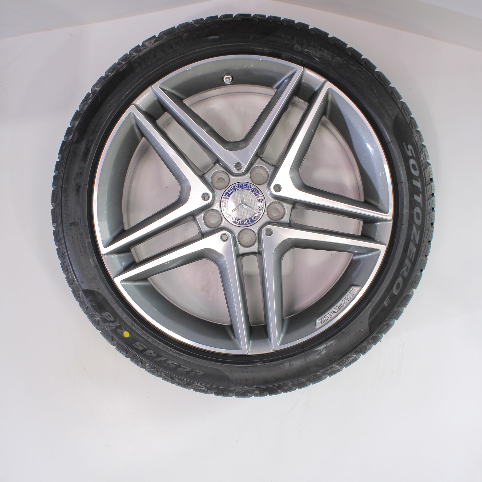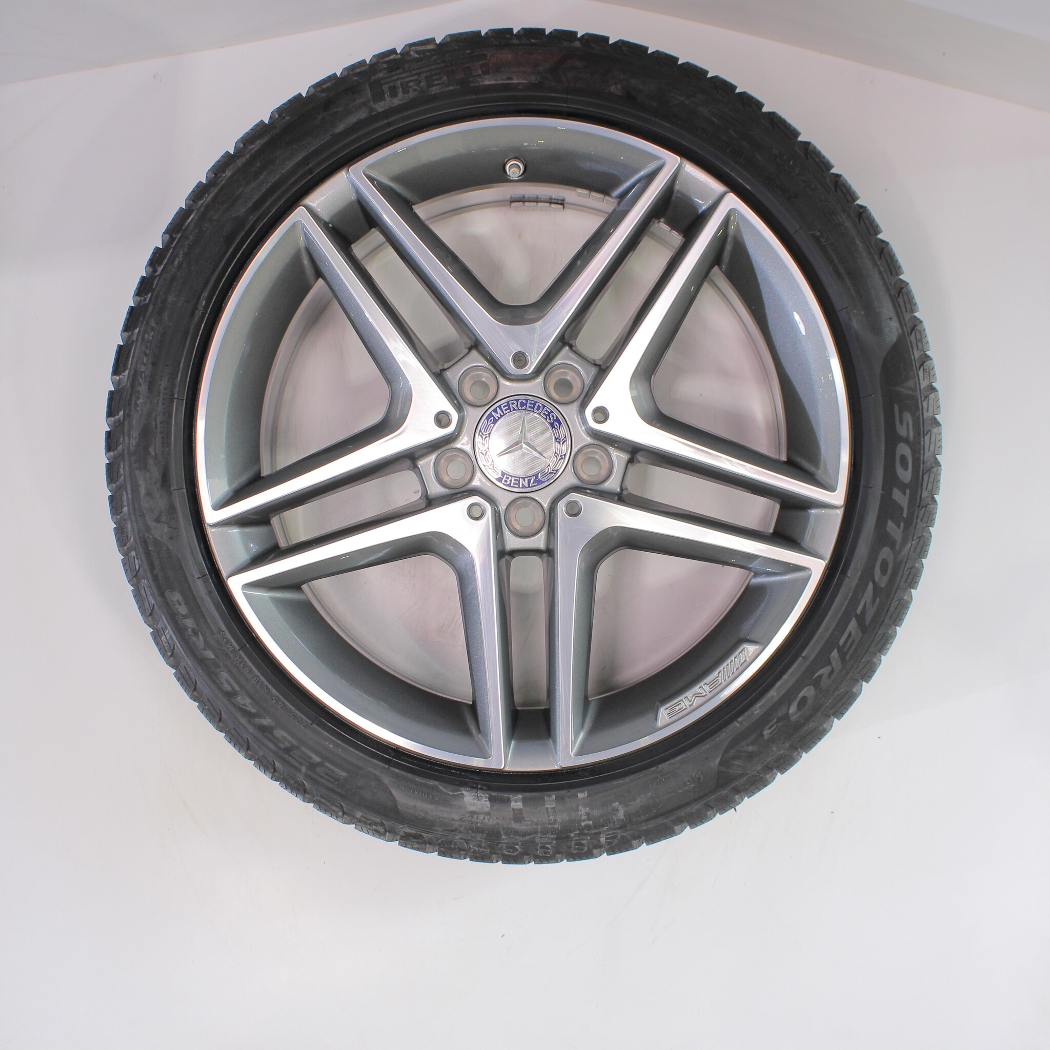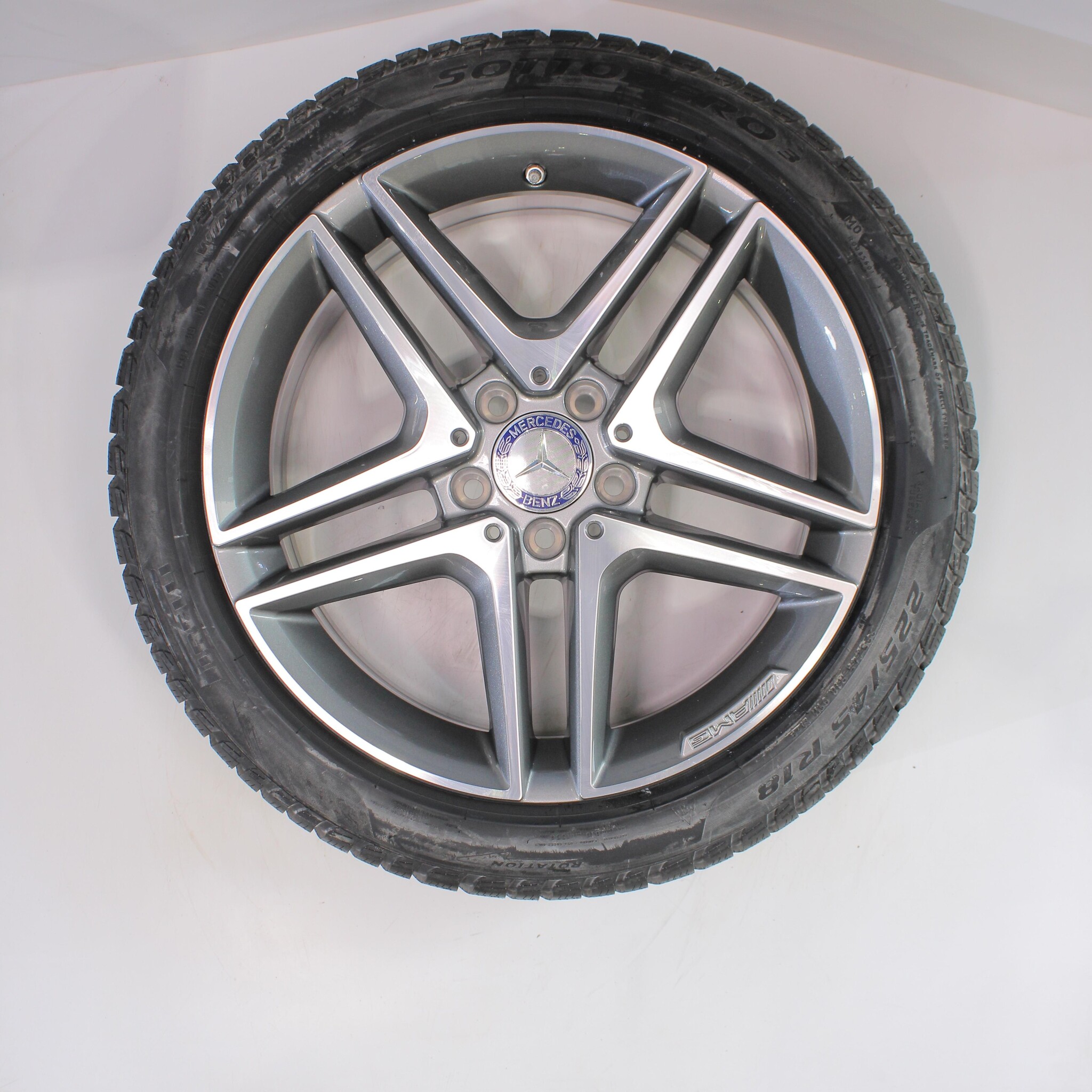 Original wheelset from Mercedes, 18-inch rims with Pirelli Winter Sottozero 3 winter tires. These rims are original Mercedes brand rims and suitable for: Mercedes A B CLA Class W177 C118 W247.
