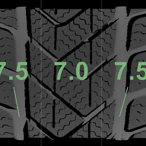 The measured tread depths and the details of the rims are shown above.