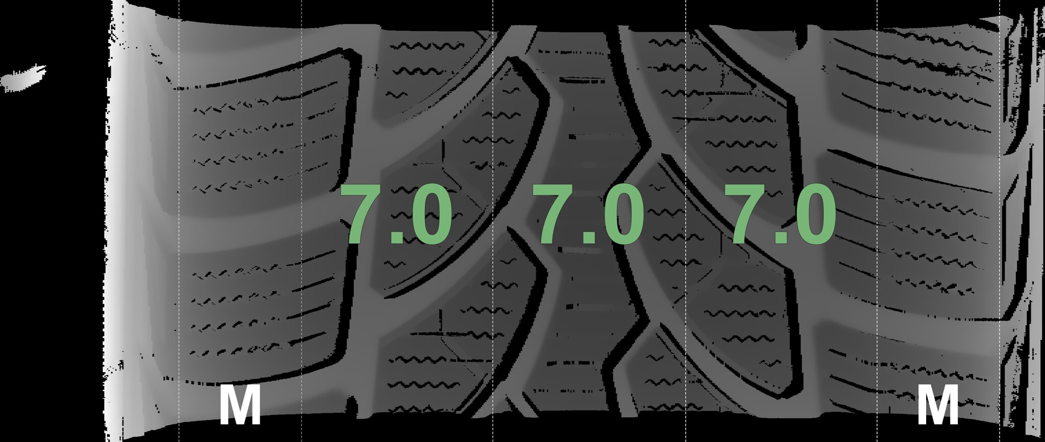 | Condition | Profile depth | DOT | Front Left | Used | 7.0 mm | 2415 |