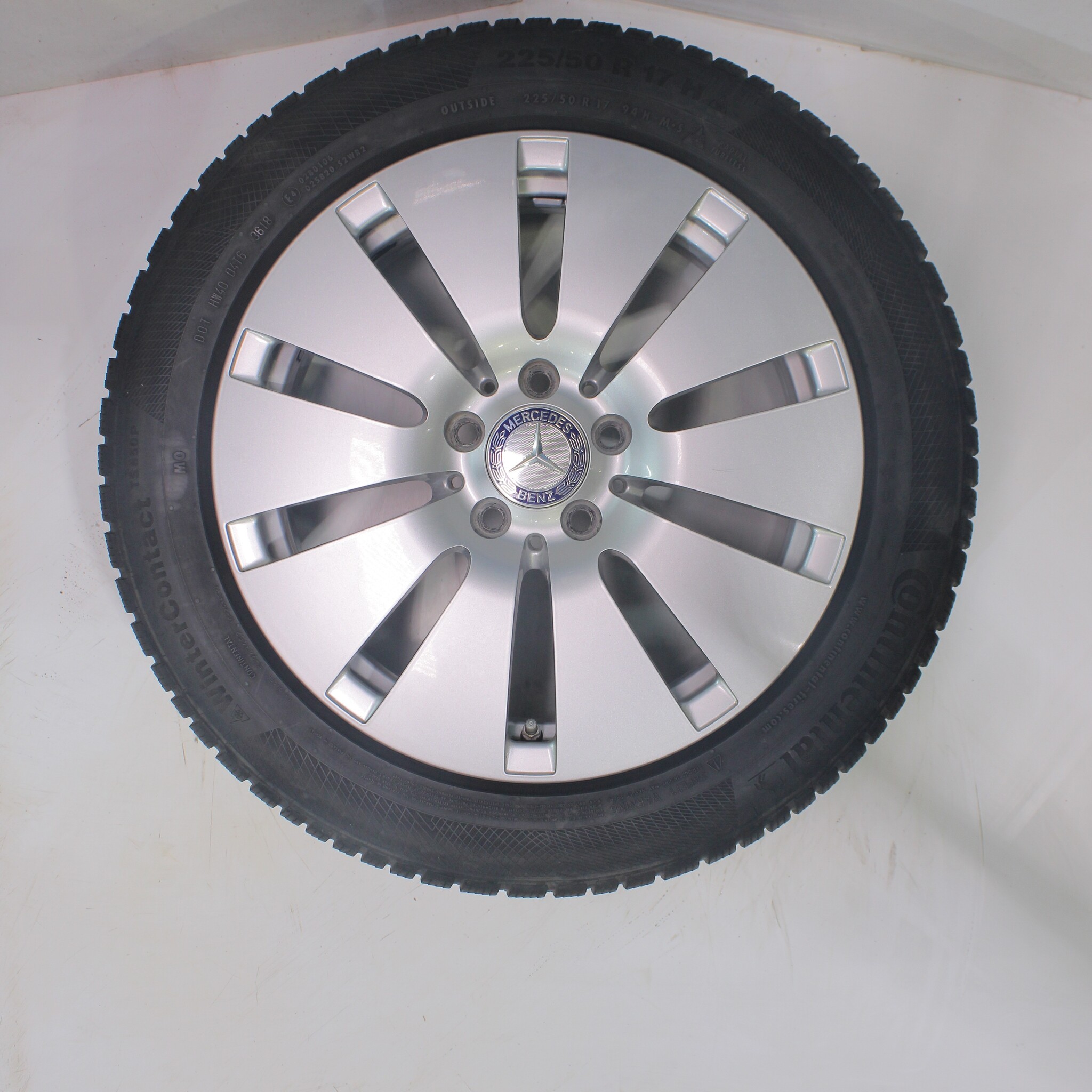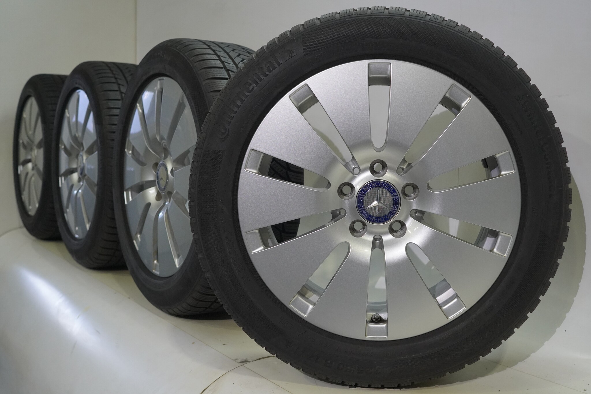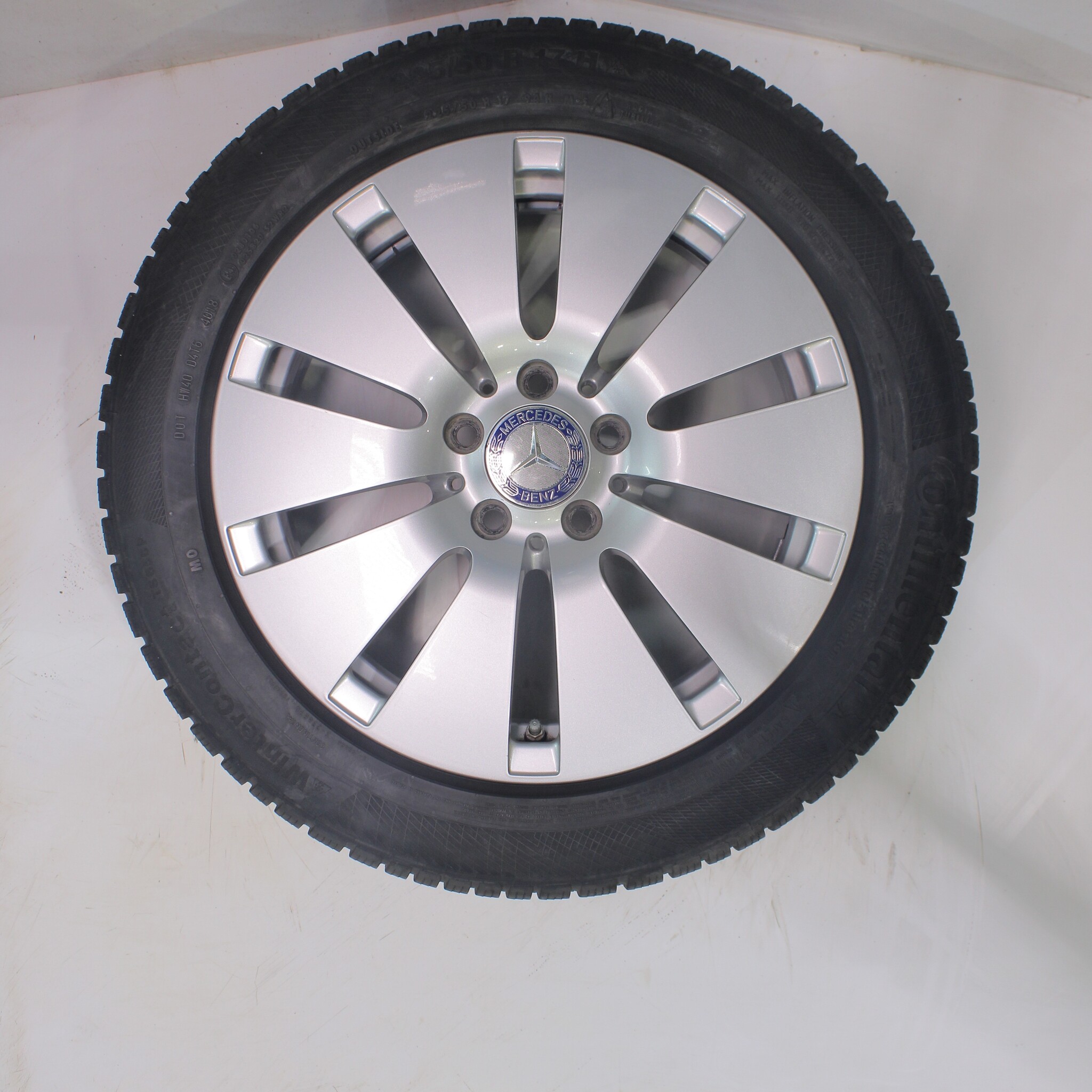 Original wheelset from Mercedes, 17-inch rims with Continental WINTER CONTACT TS 850 P winter tires. These rims are original Mercedes brand rims and suitable for: Mercedes C-Class W205 S205 C205.