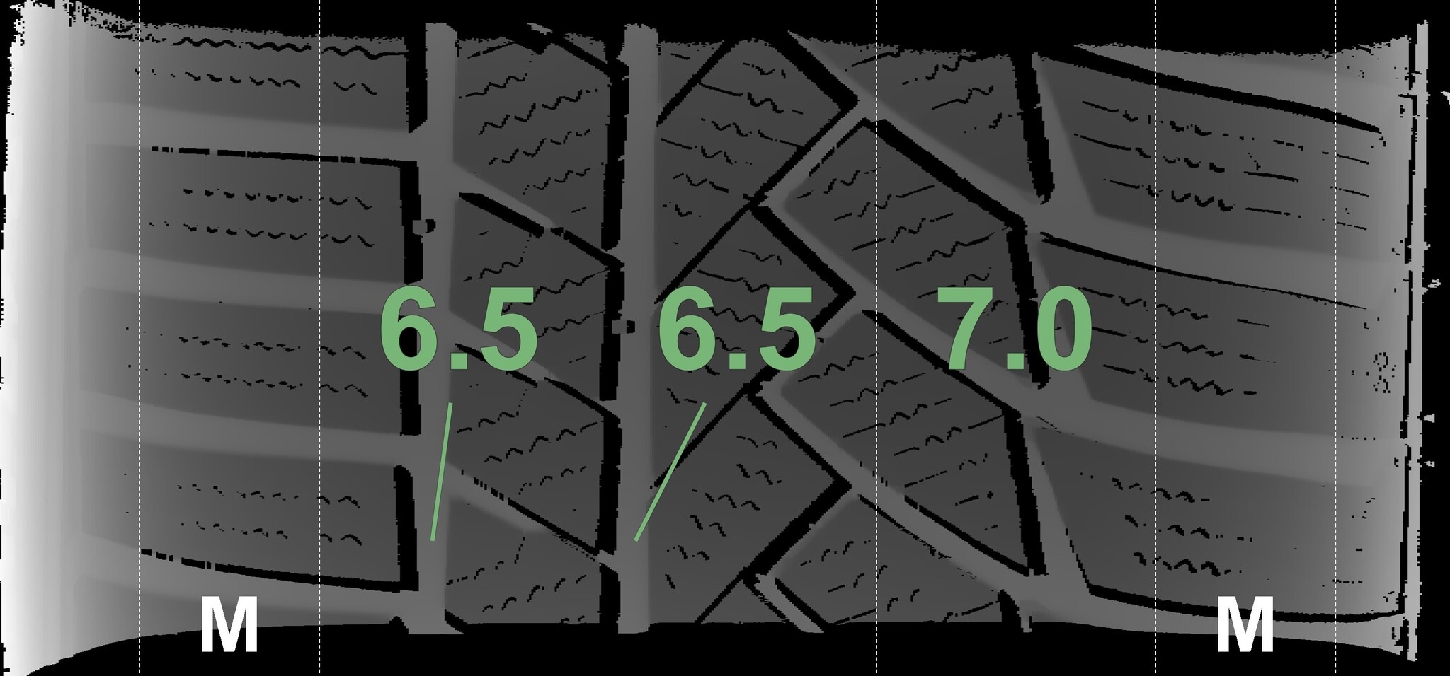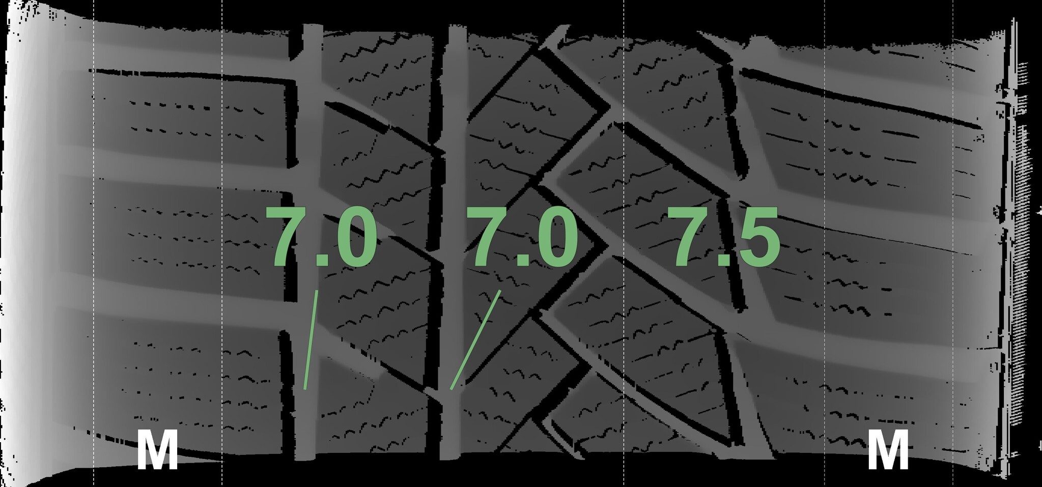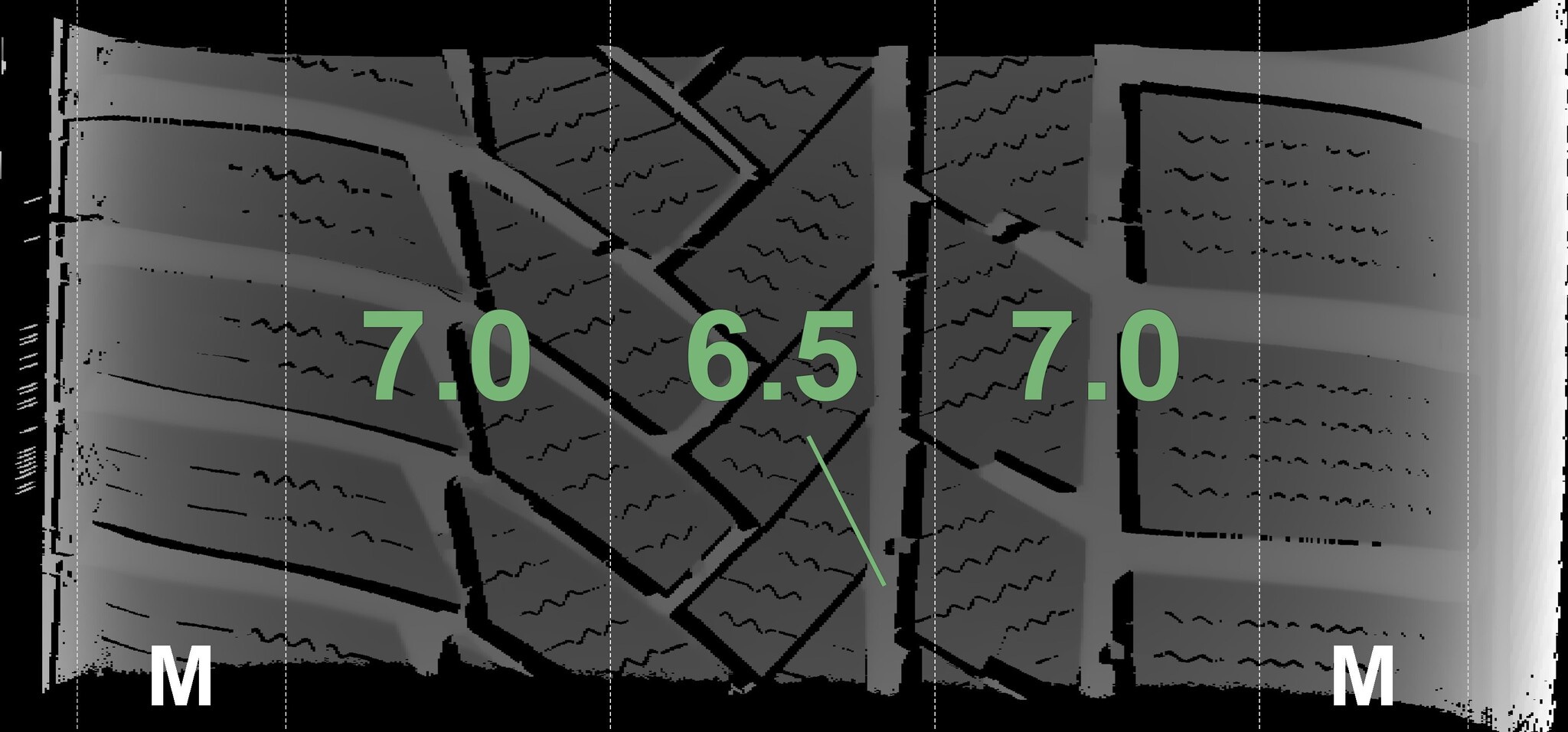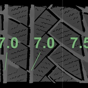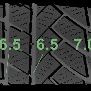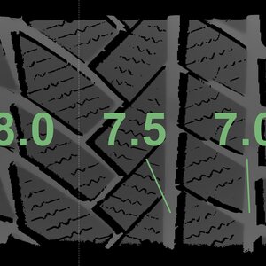 The measured tread depths and the details of the rims are shown above.