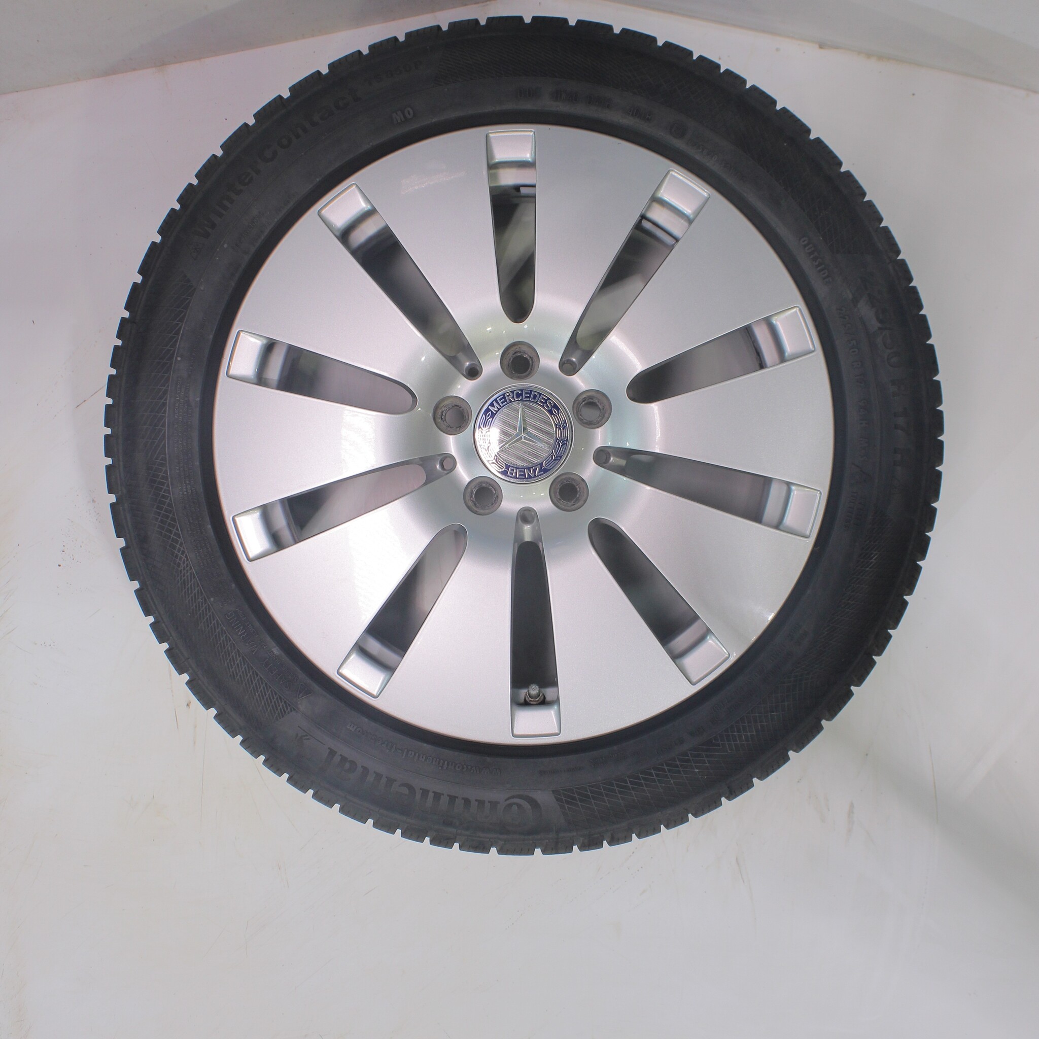 | Tire Brand and Type | Continental WINTER CONTACT TS 850 P | Front axle: 225/50R17, 94H | Rear axle: 225/50R17, 94H | | Mercedes Original MO |