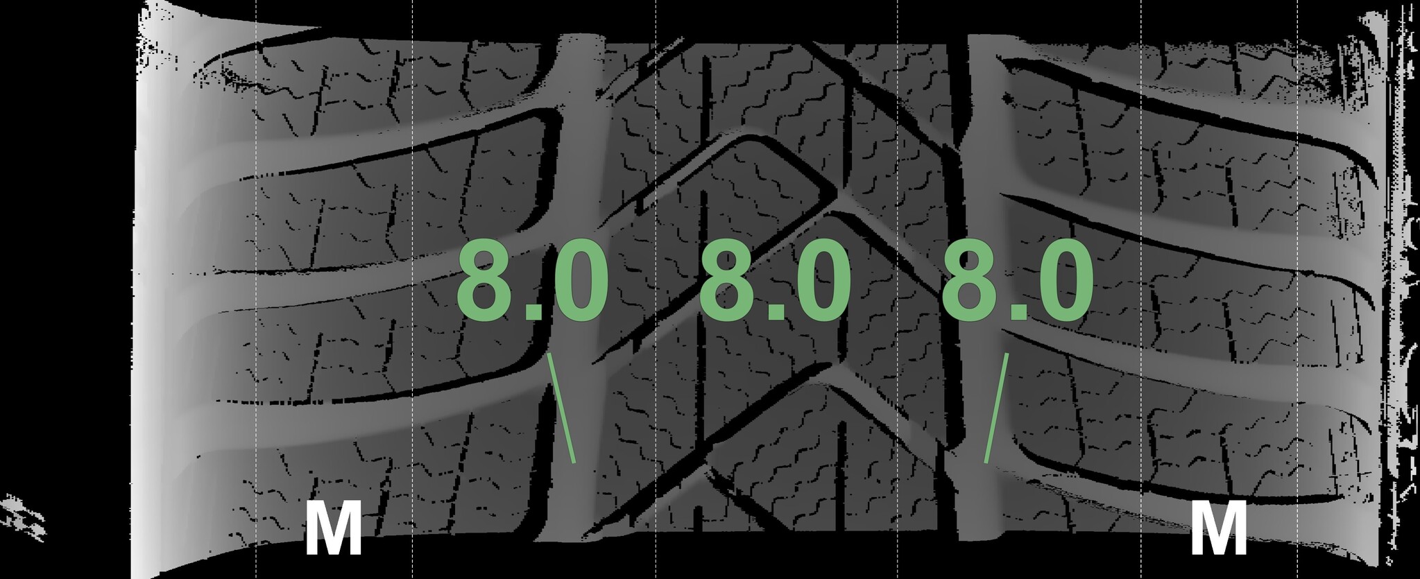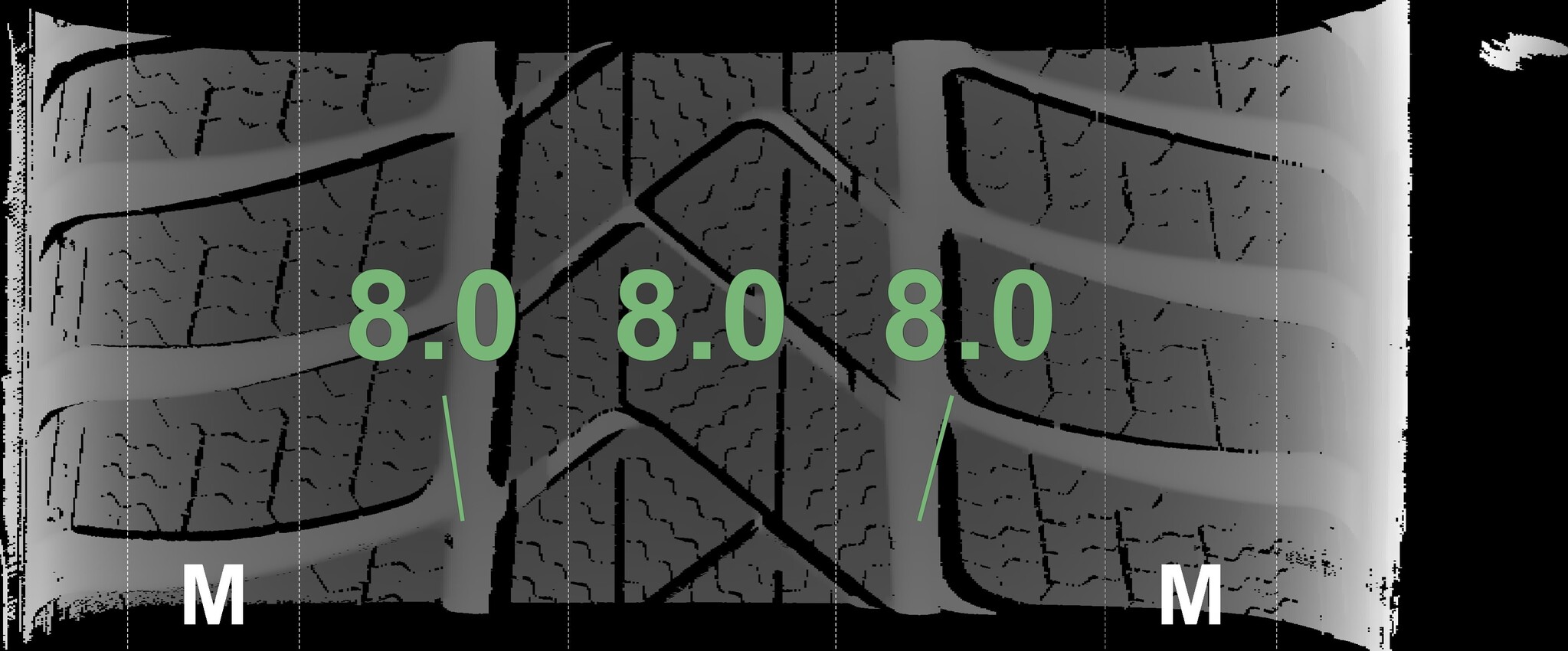 | Condition | Profile depth | DOT | Rear Right | New | 8.0 mm | 2524 |