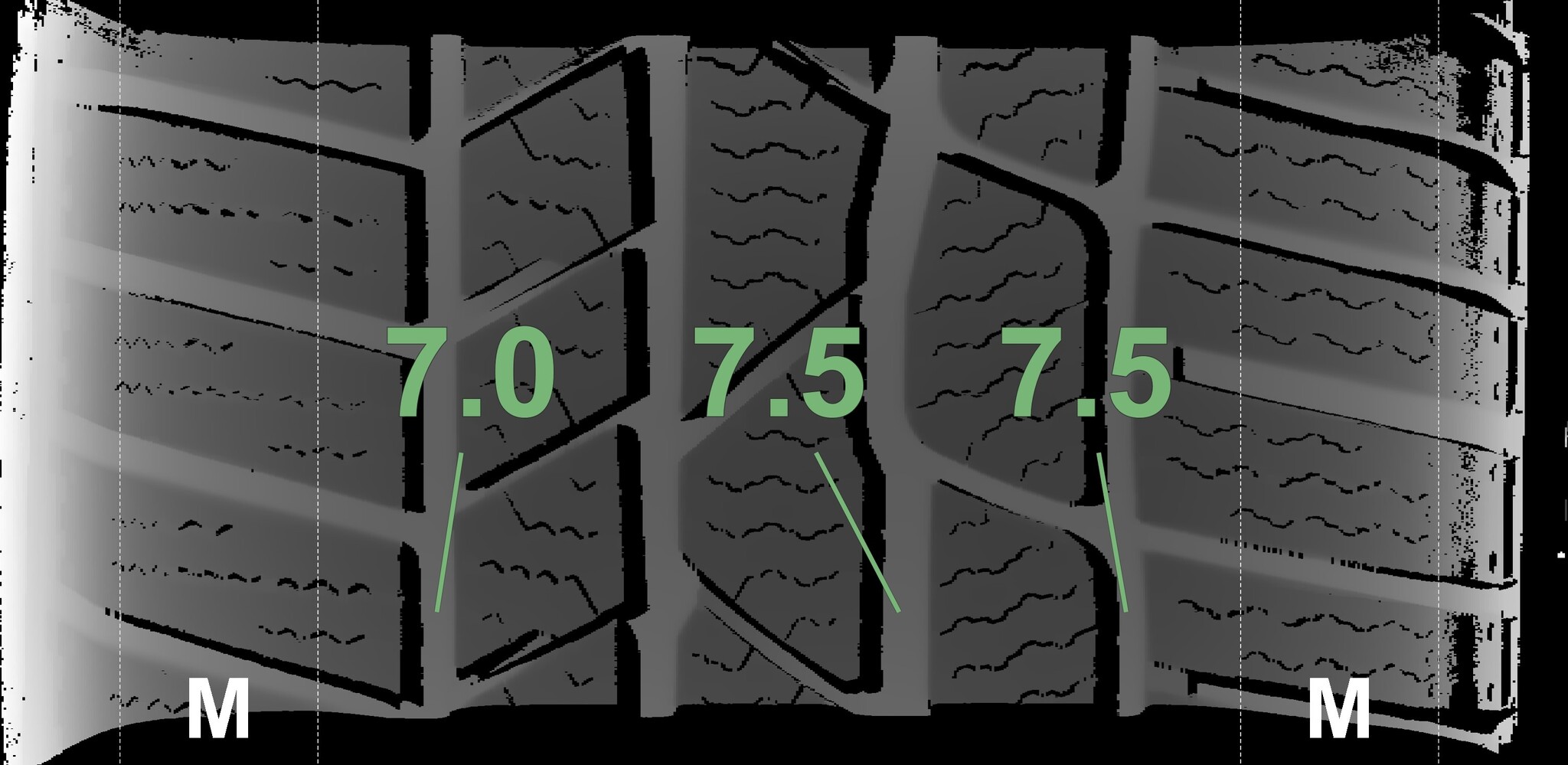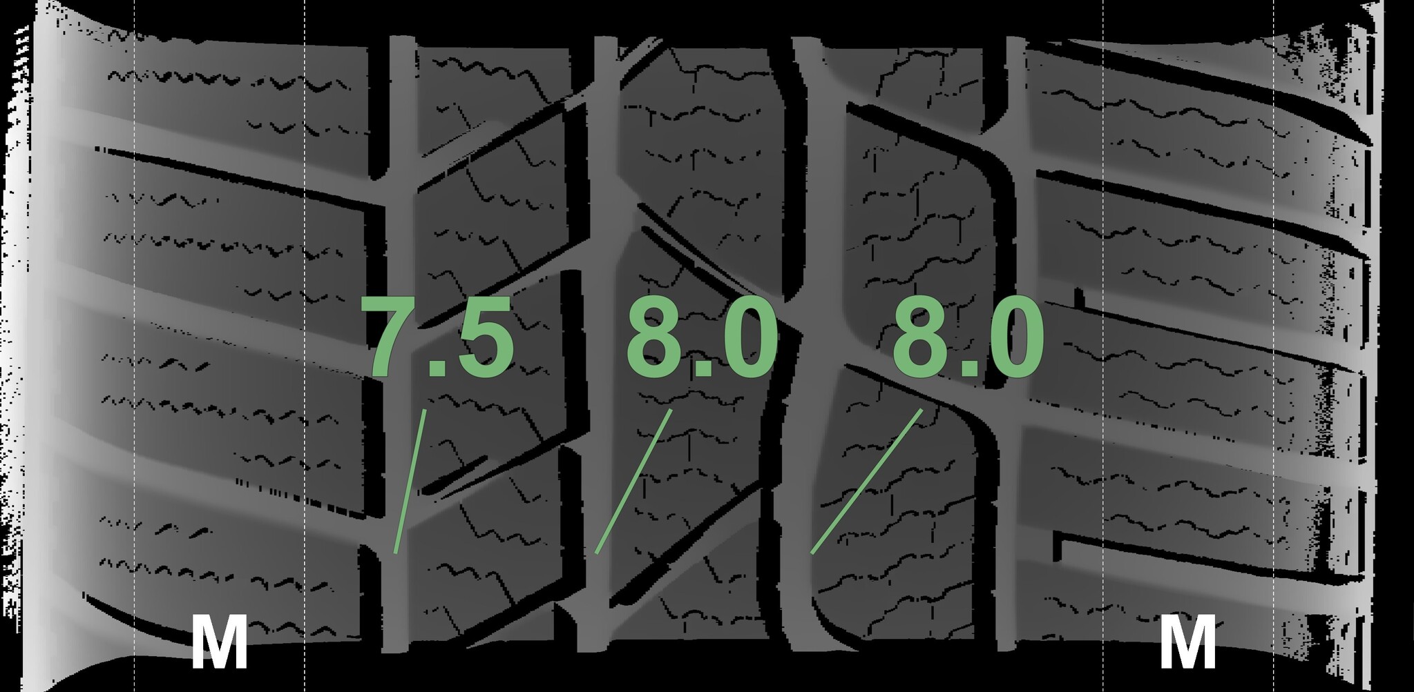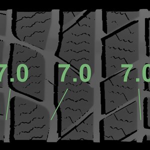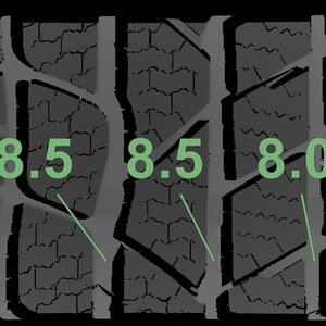 The measured tread depths and the details of the rims are shown above.