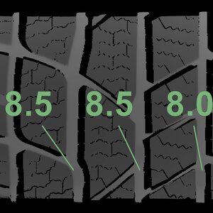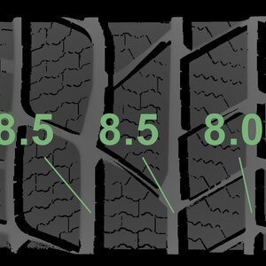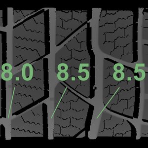 The measured tread depths and the details of the rims are shown above.