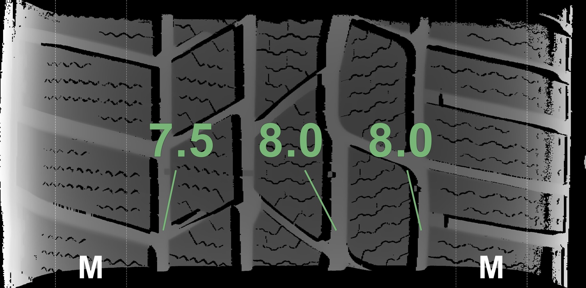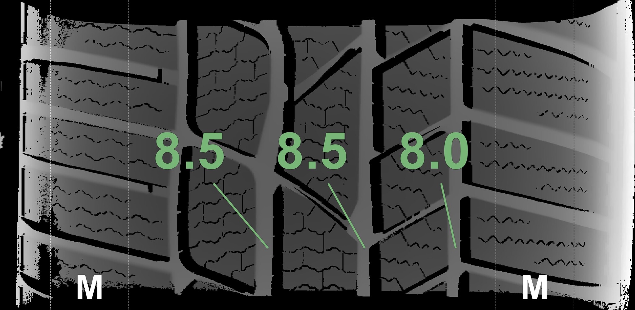 | Condition | Profile depth | DOT | Rear Right | Demo dots still visible | 8.3 mm | 2317 |