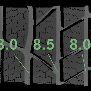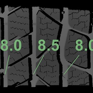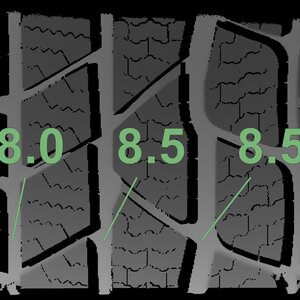 The measured tread depths and the details of the rims are shown above.