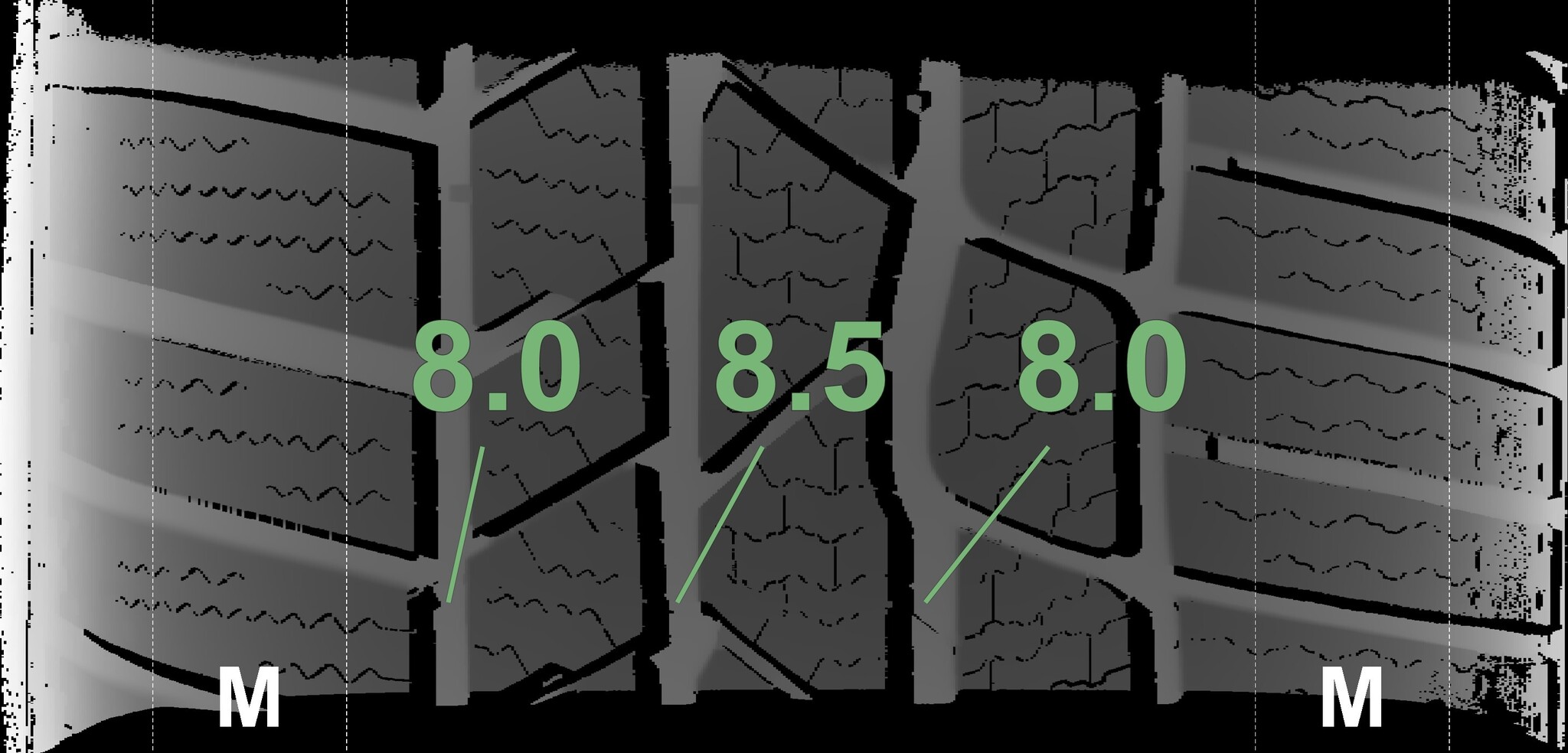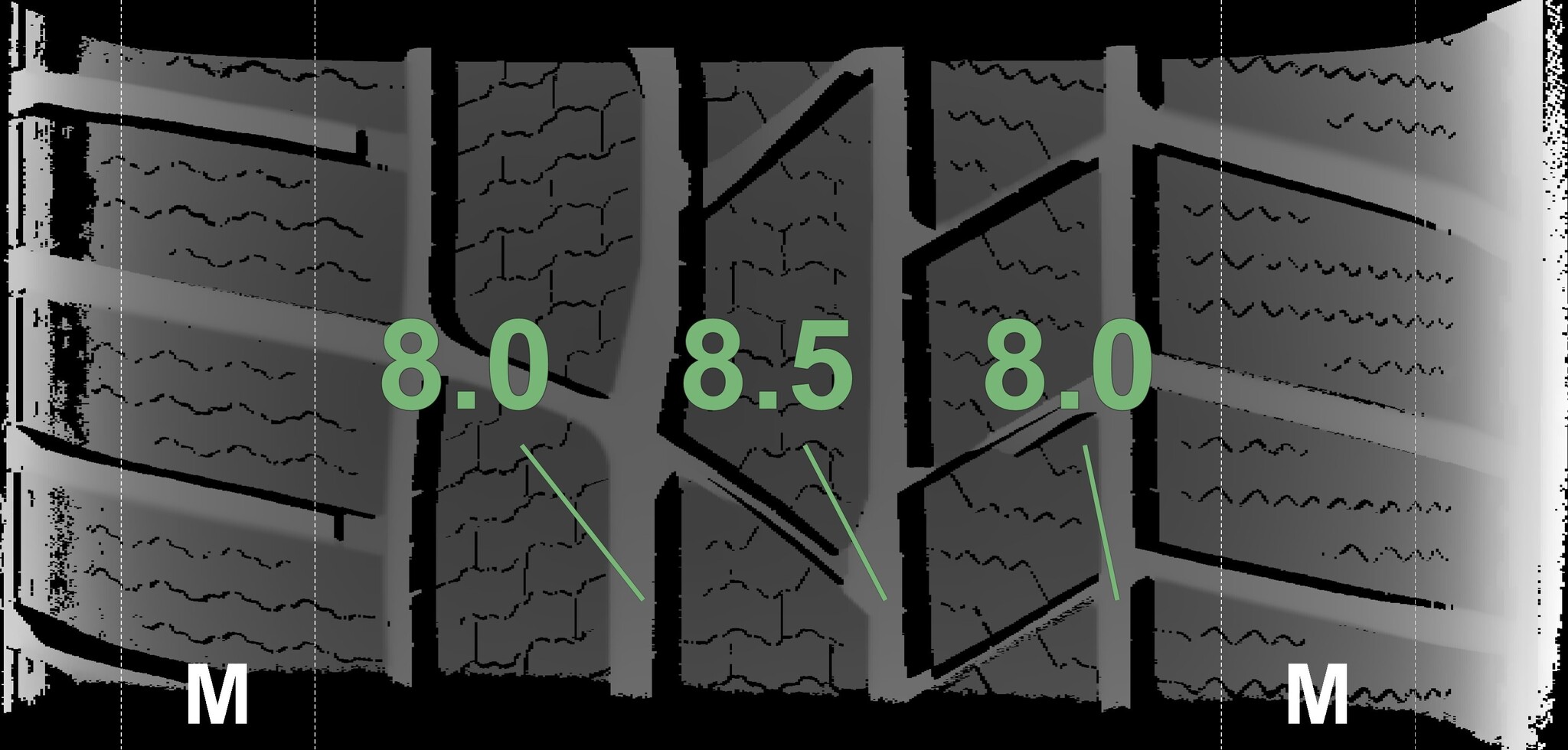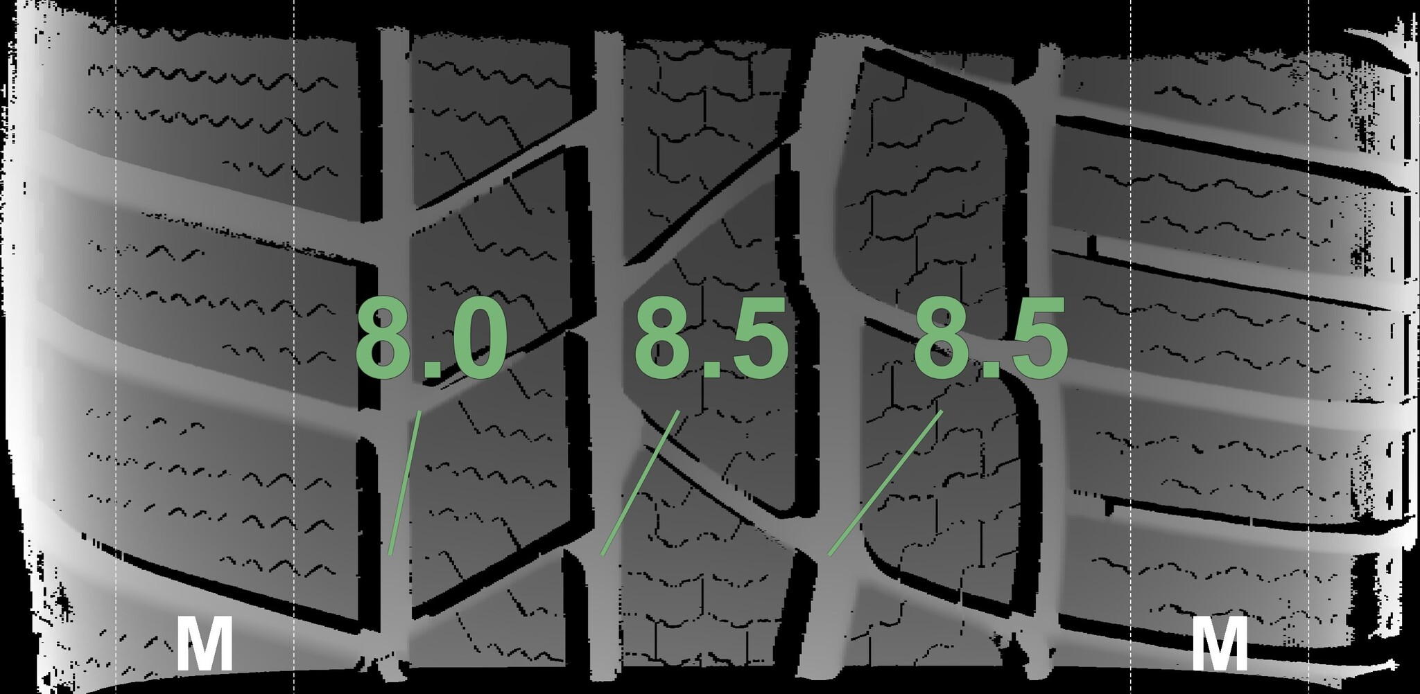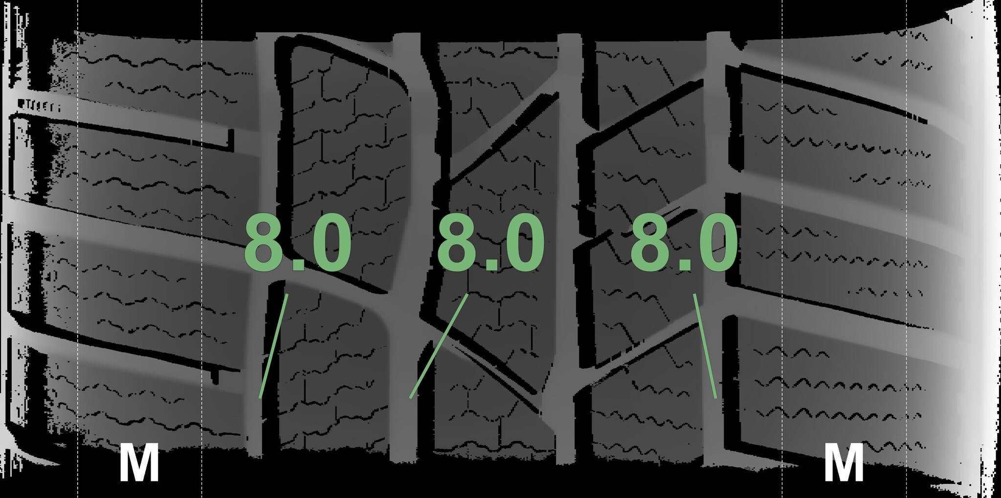 | Condition | Profile depth | DOT | Front Left | Demo dots still visible | 8.2 mm | 3817 |