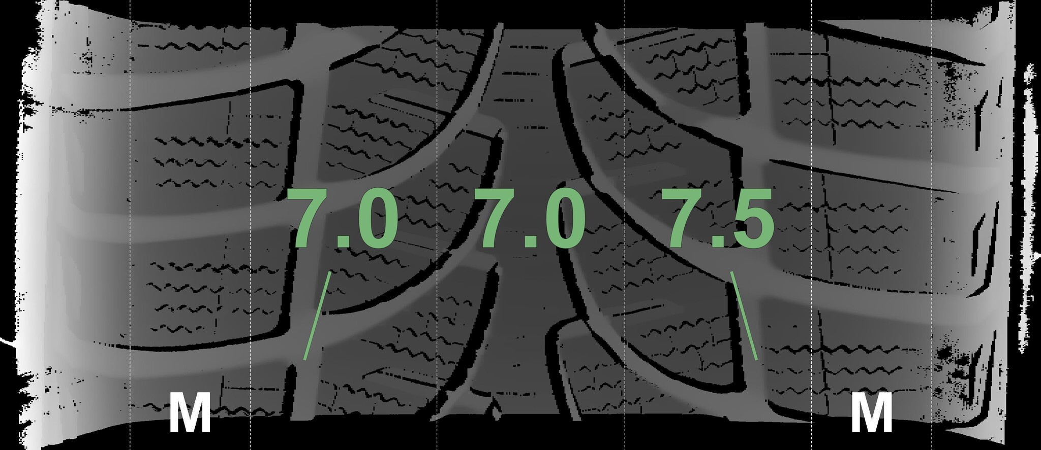 | Condition | Profile depth | DOT | Front Right | Used | 7.0 mm | 3619 |