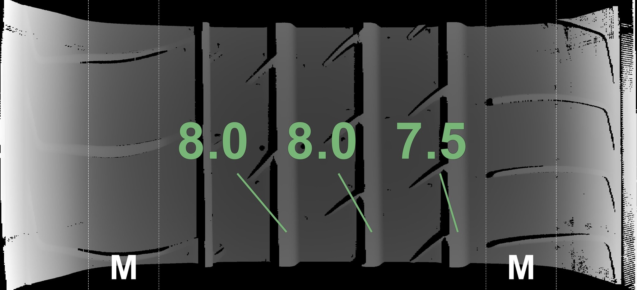 Condition | Profile depth | DOT | Front Right | New | 8.0 mm | 1622 |