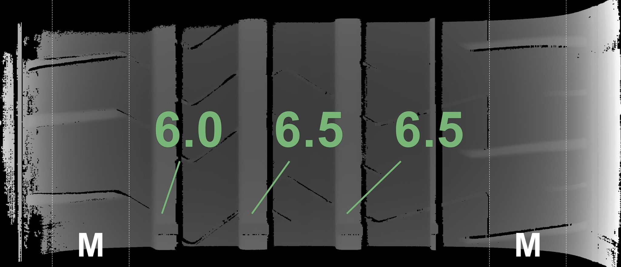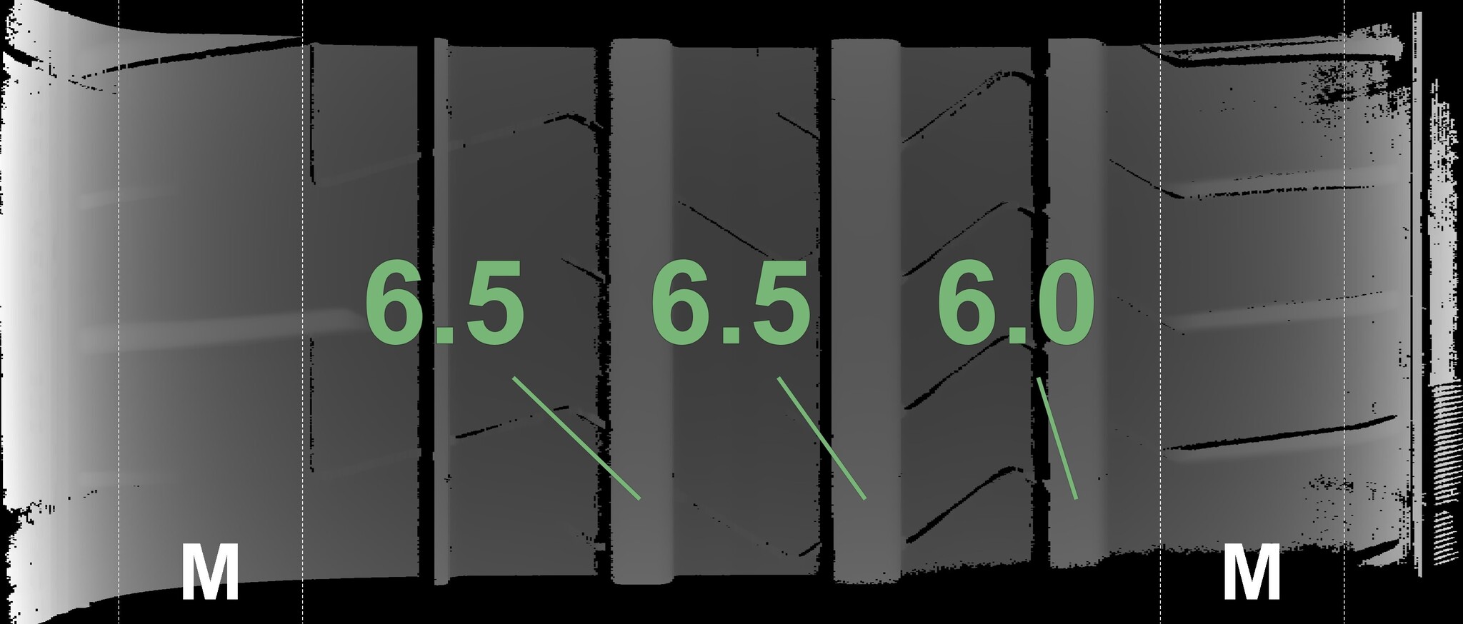 The measured tread depths and details of the rims are shown above.