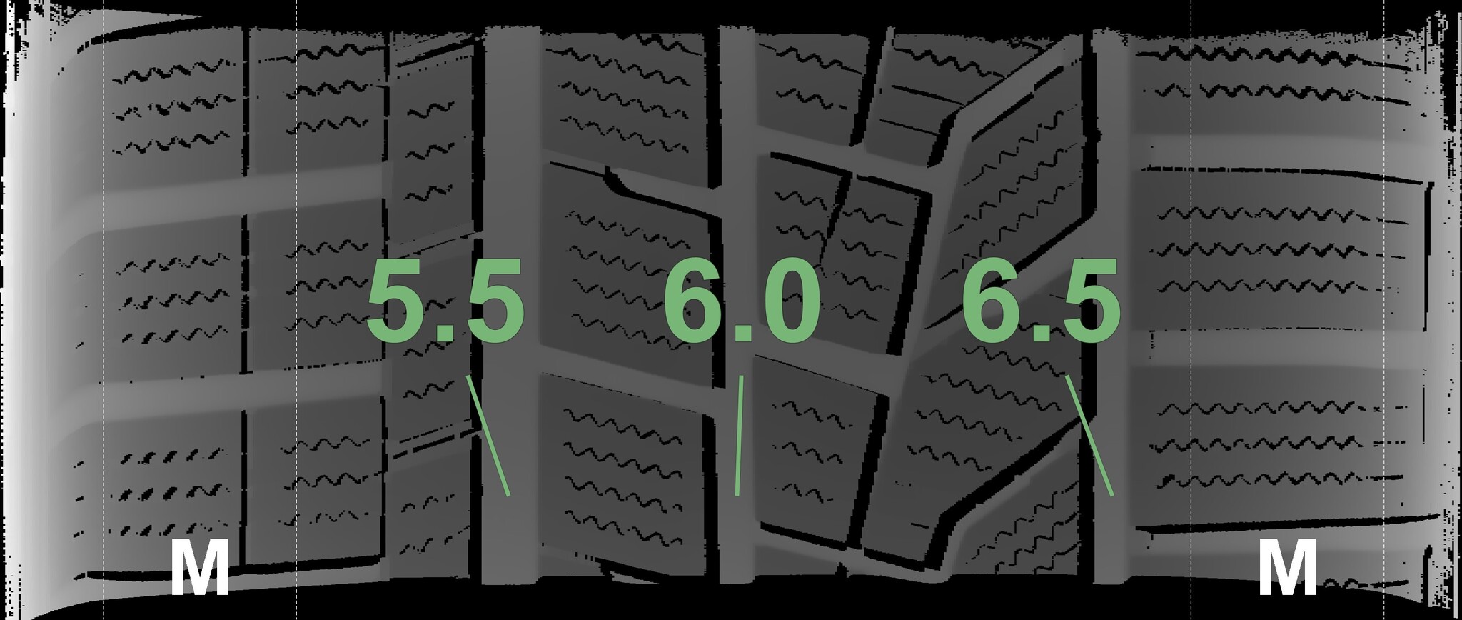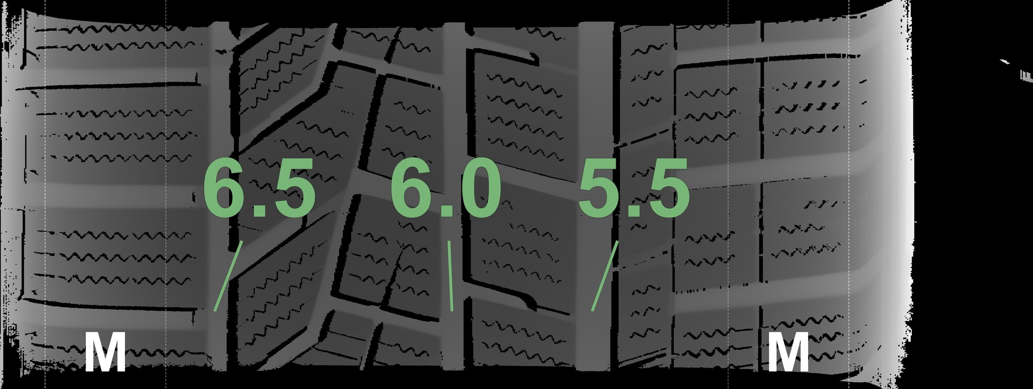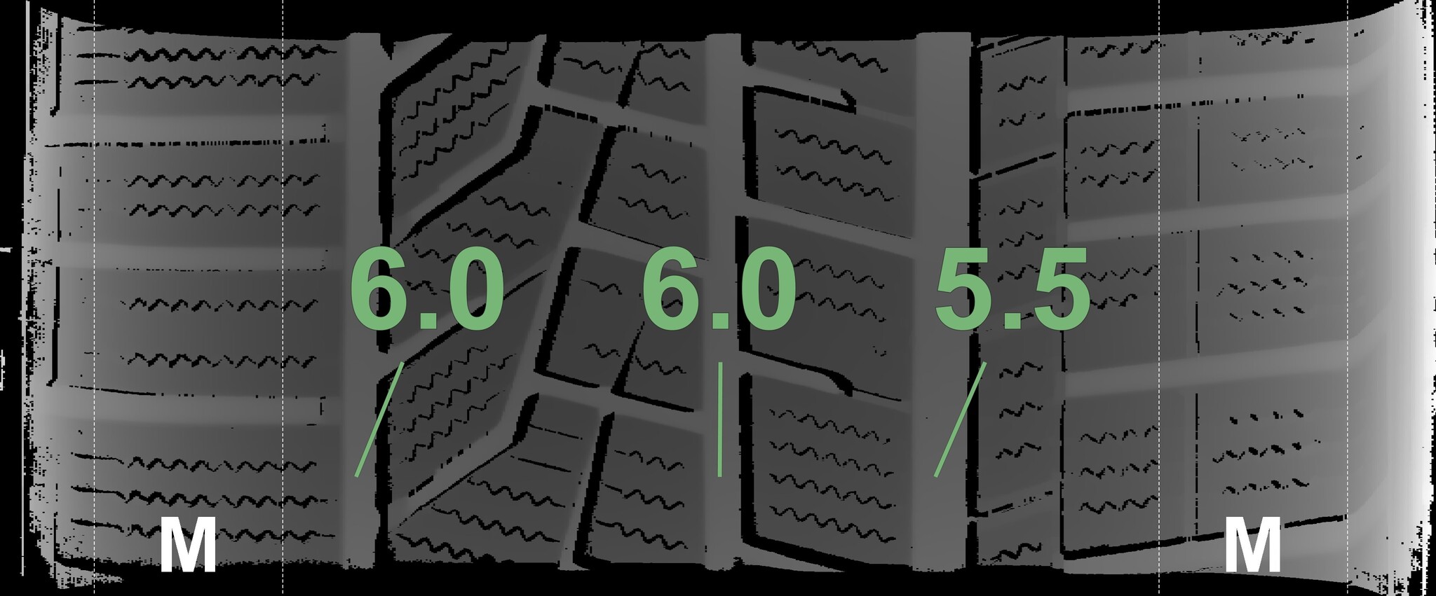 The measured tread depths and the details of the rims are shown above.