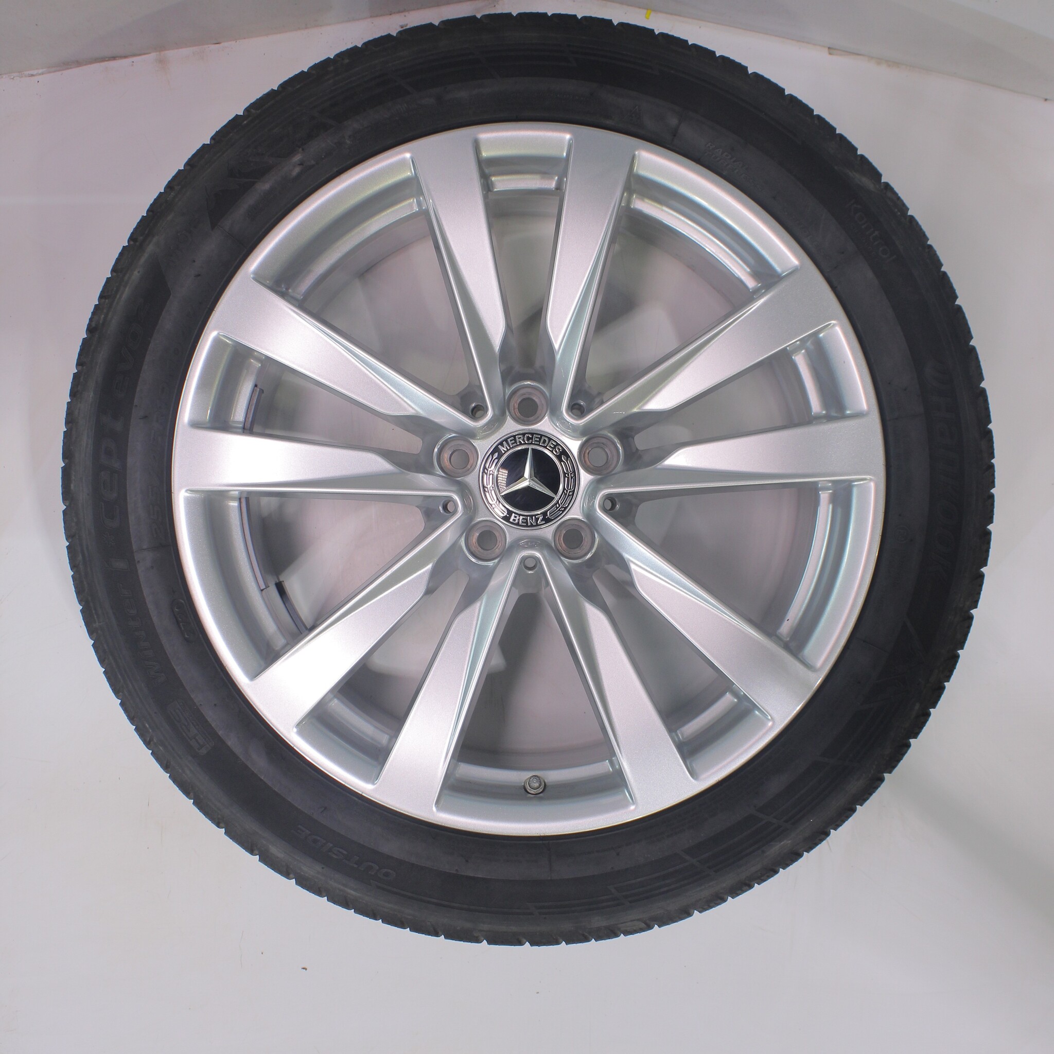 Original wheel set from Mercedes, 19-inch rims with Hankook Winter i*cept evo2 winter tires. These rims are original Mercedes brand rims and suitable for: Mercedes S-Class W223.