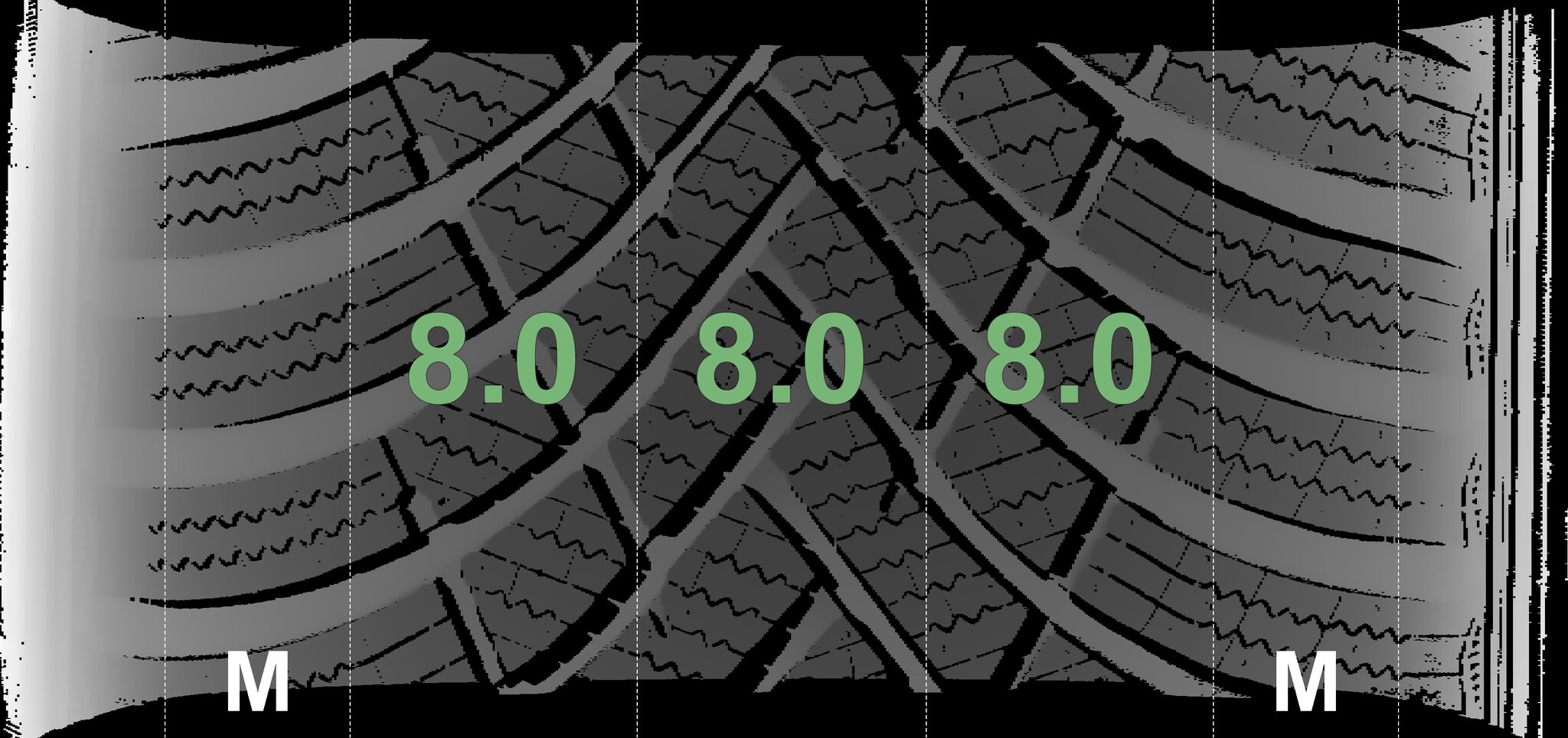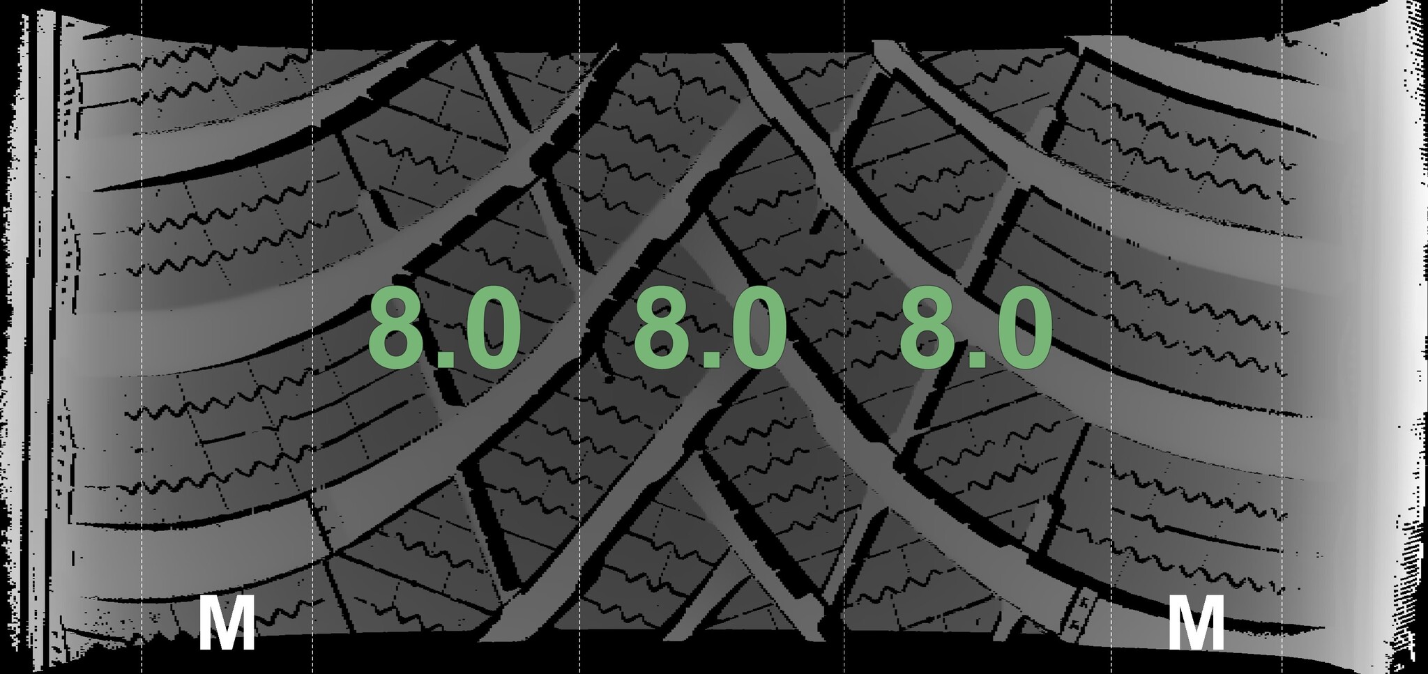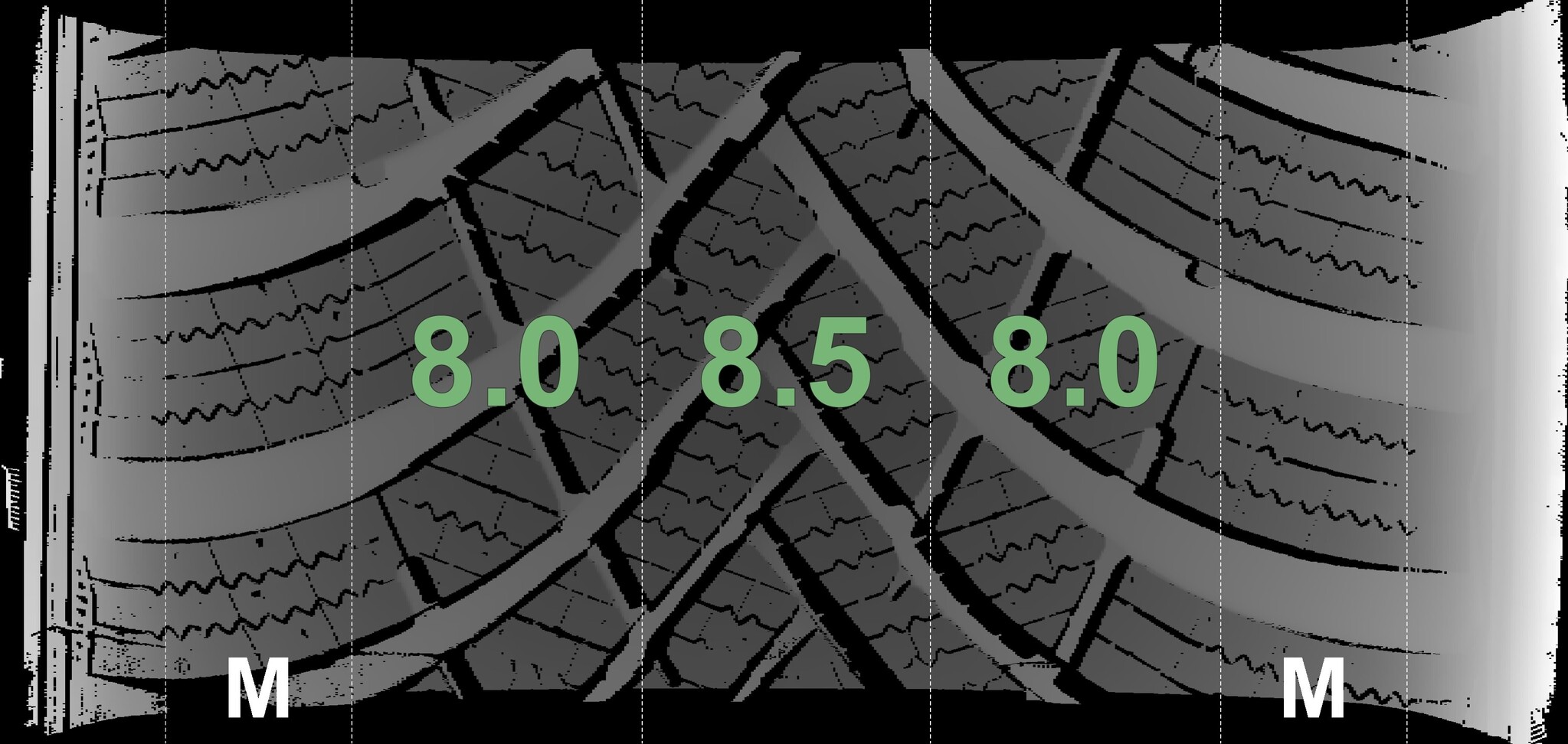 | Condition | Profile depth | DOT | Rear Left | New | 8.0 mm | 3125 |