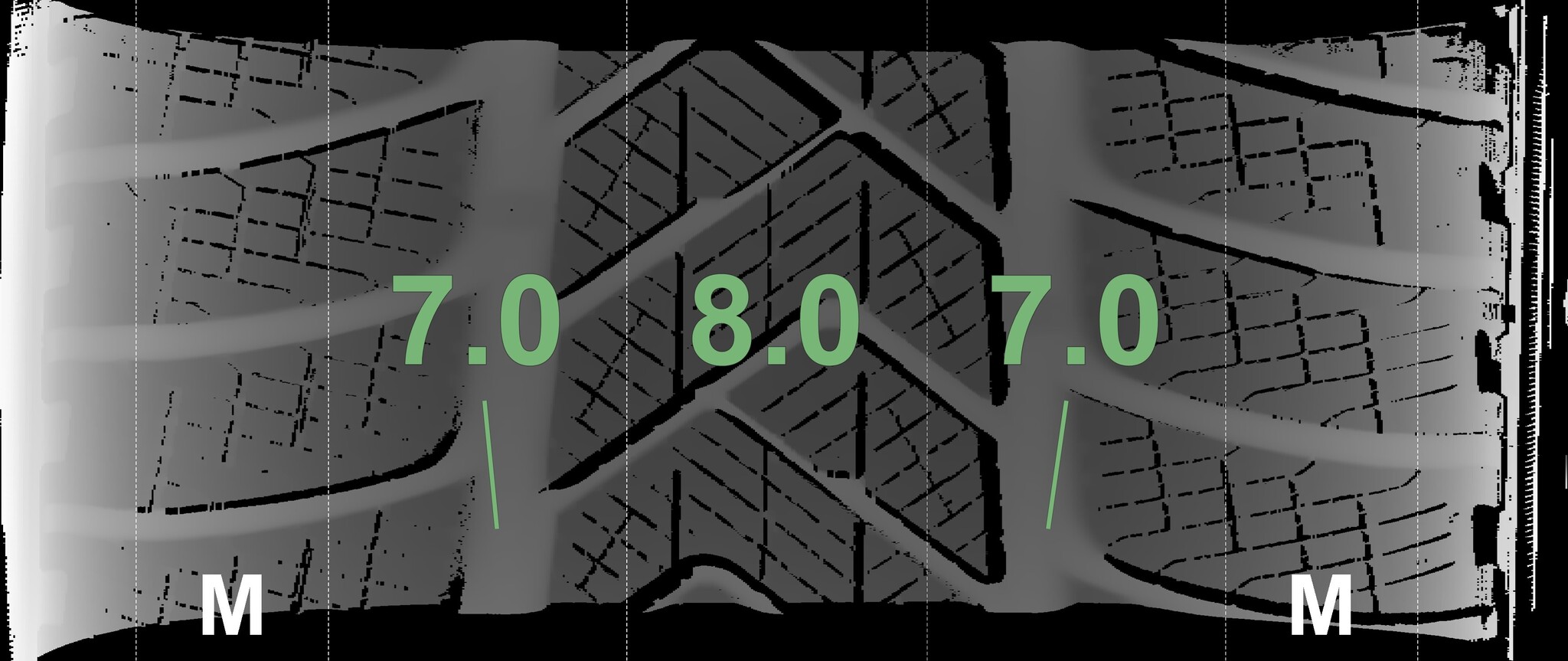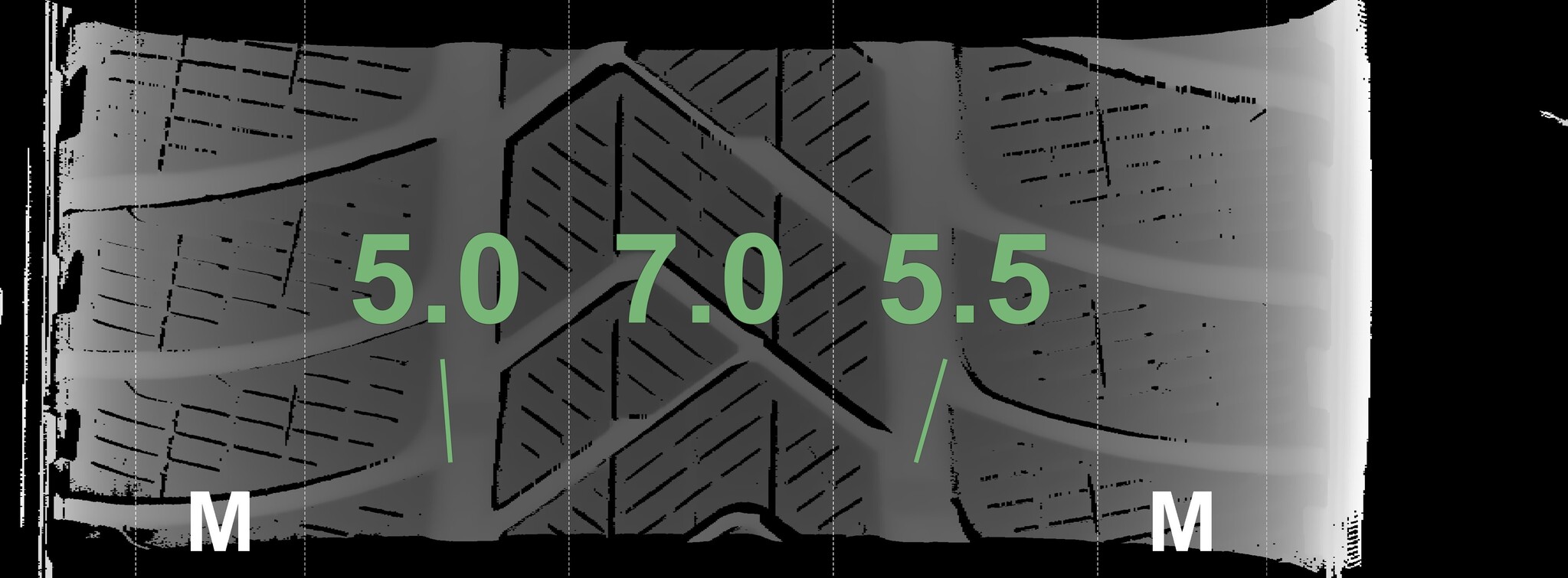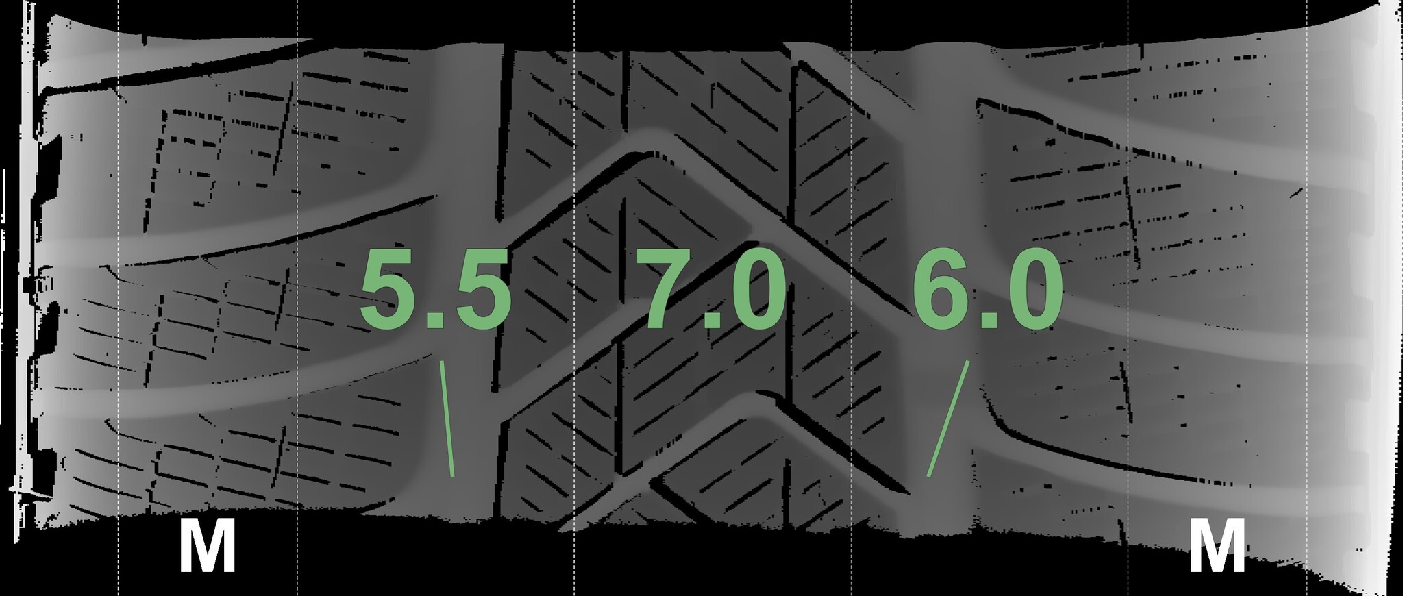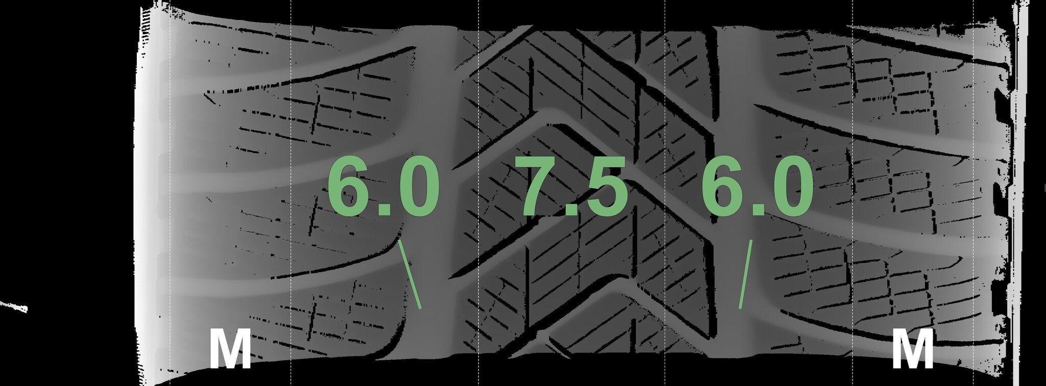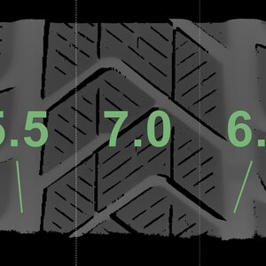 The measured tread depths and the details of the rims are shown above.