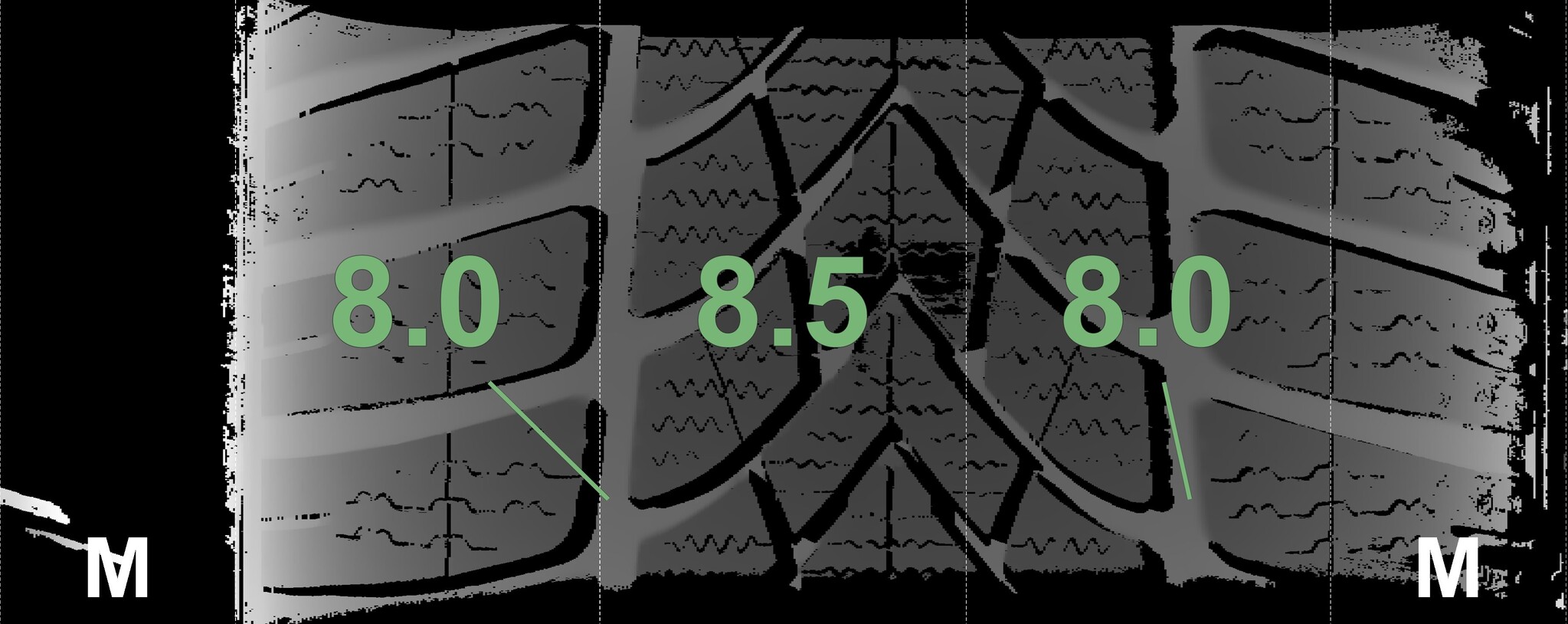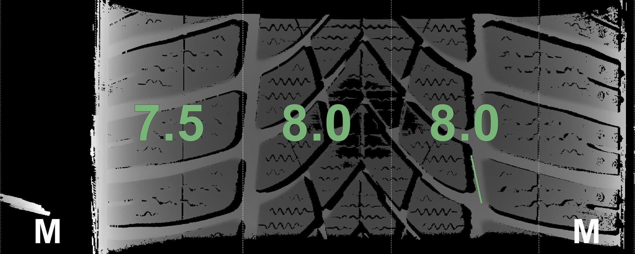 Condition | Profile depth | DOT | Front Right | Used | 8.0 mm | 2723 |