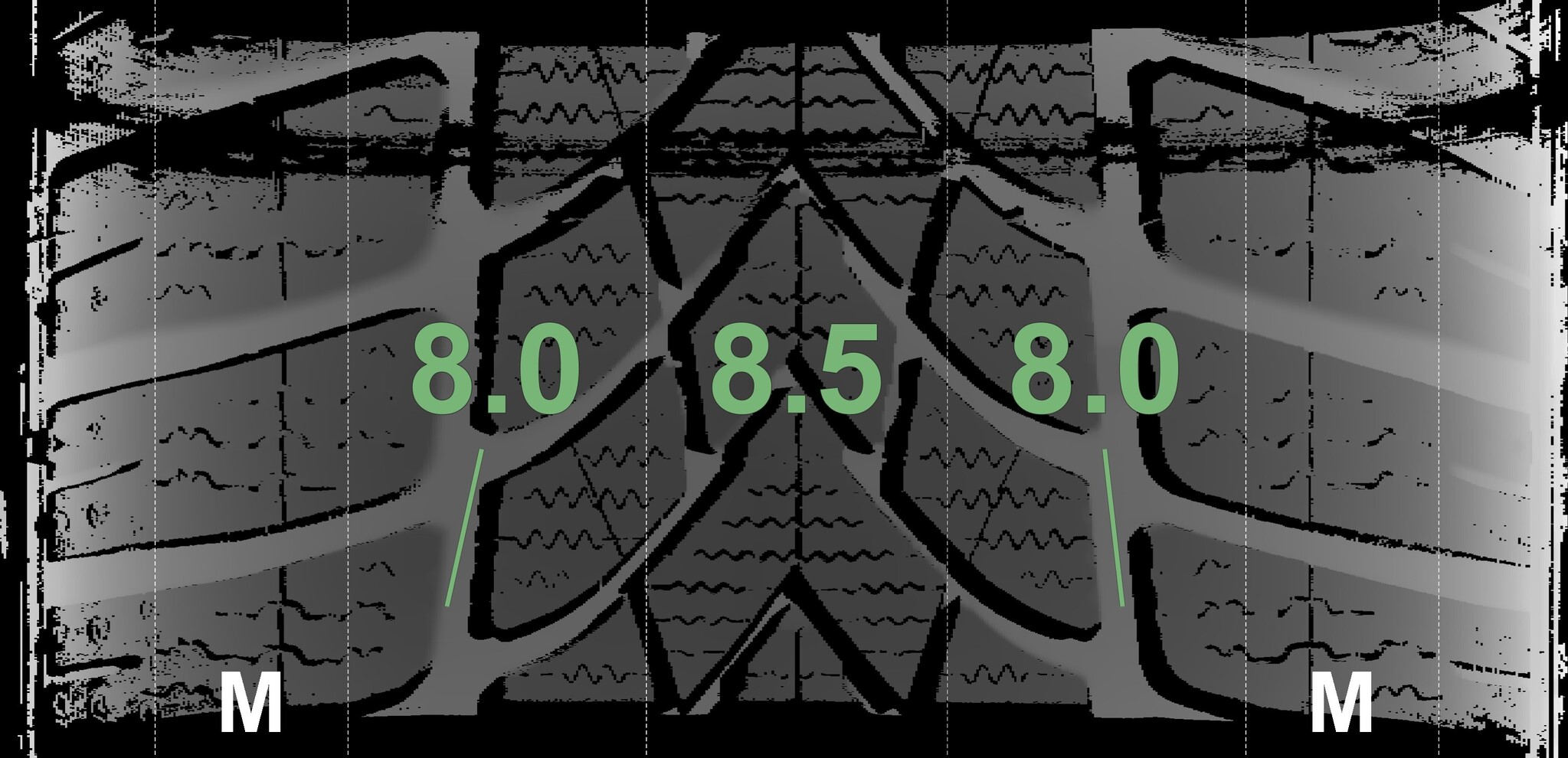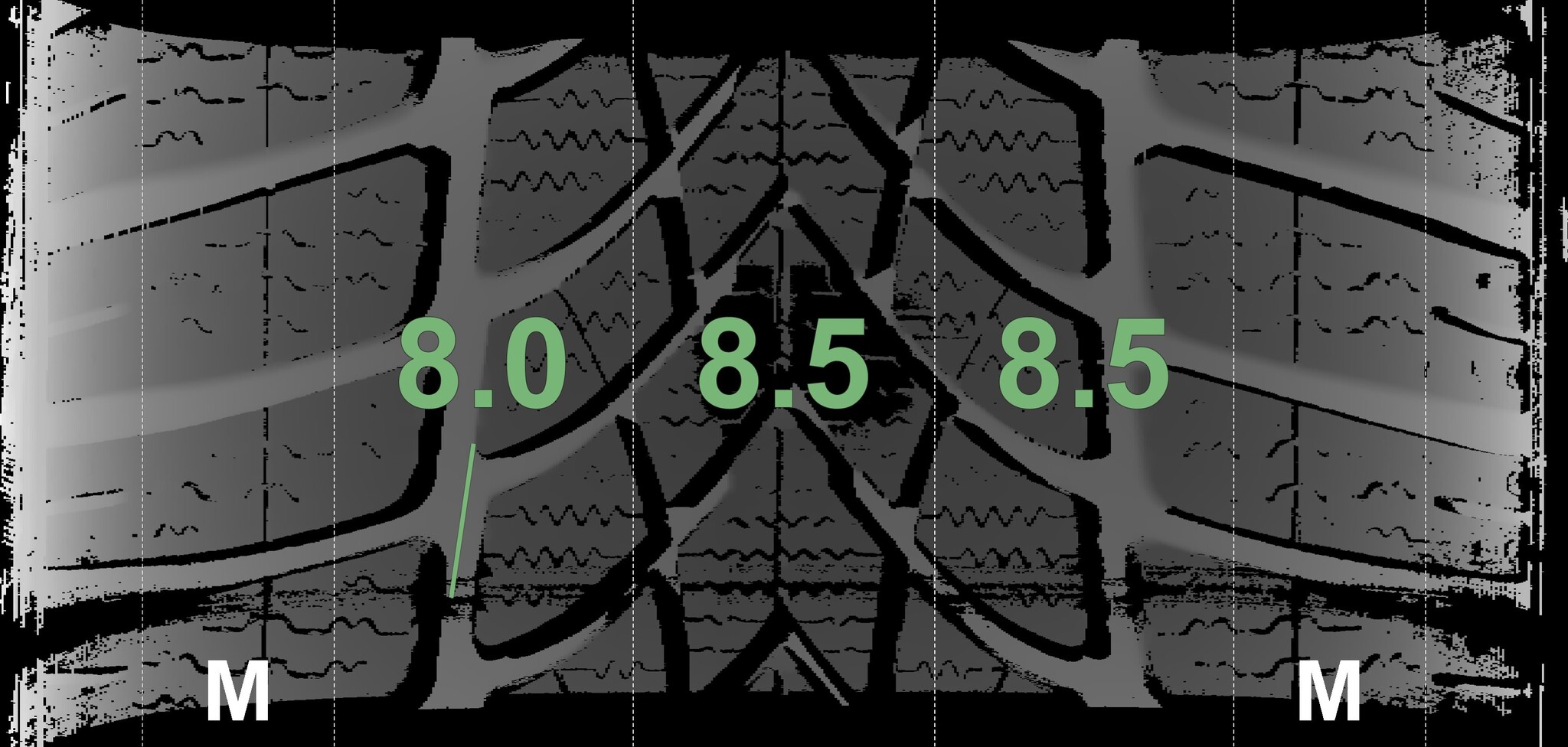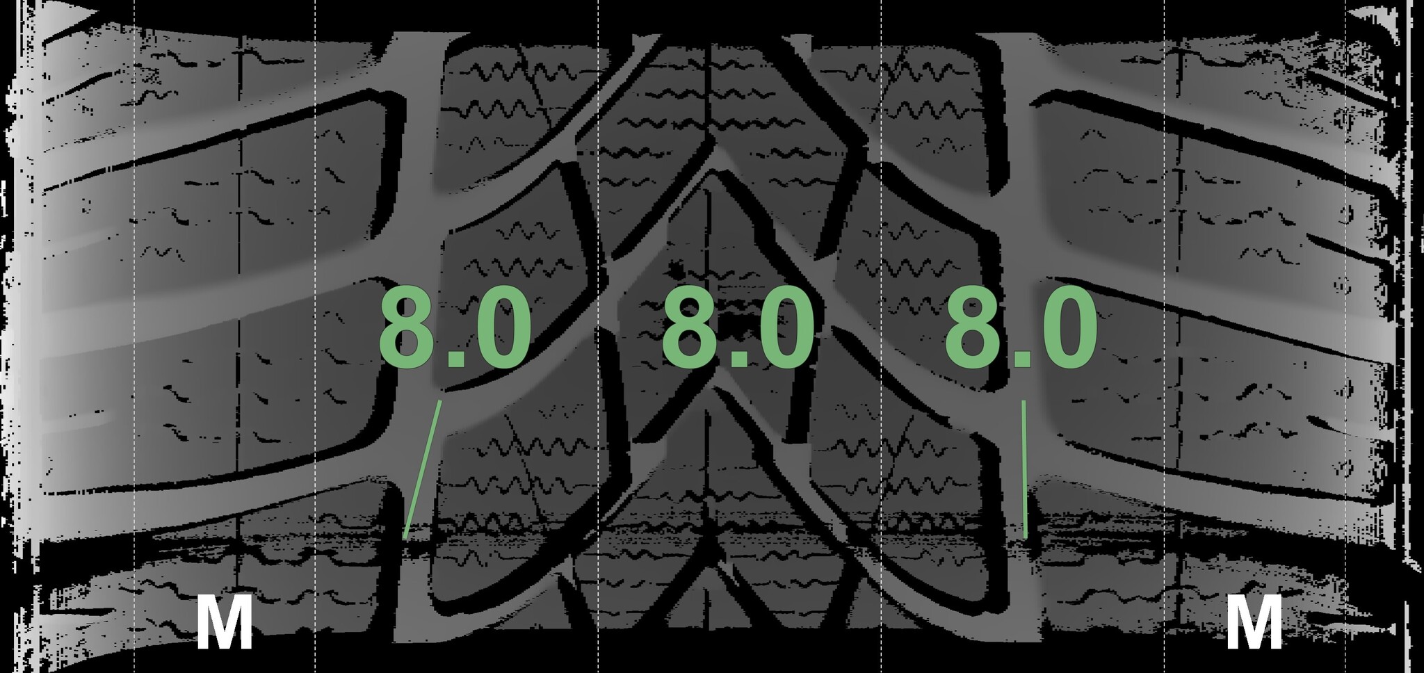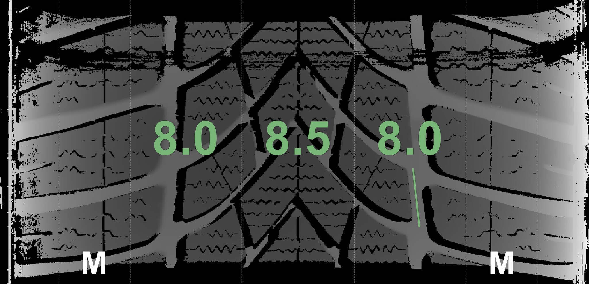 Condition | Profile depth | DOT | Front Right | Used | 8.0 mm | 3822 |