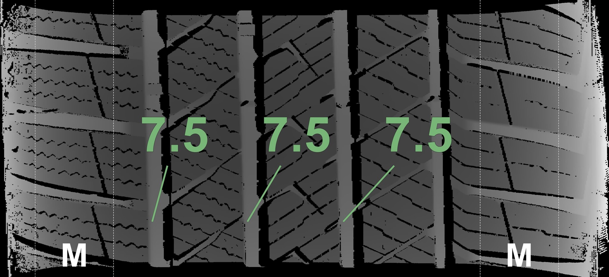 | Condition | Profile depth | DOT | Front Right | New | 7.5 mm | 2125 |