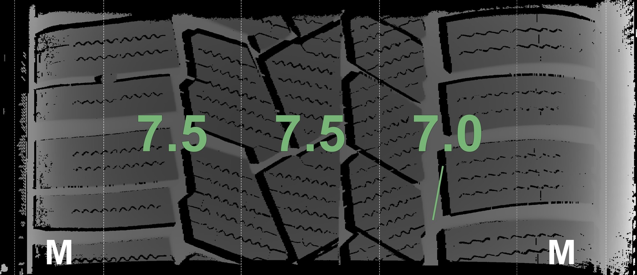 Condition | Profile depth | DOT | Front Left | Used | 7.5 mm | 2620 |