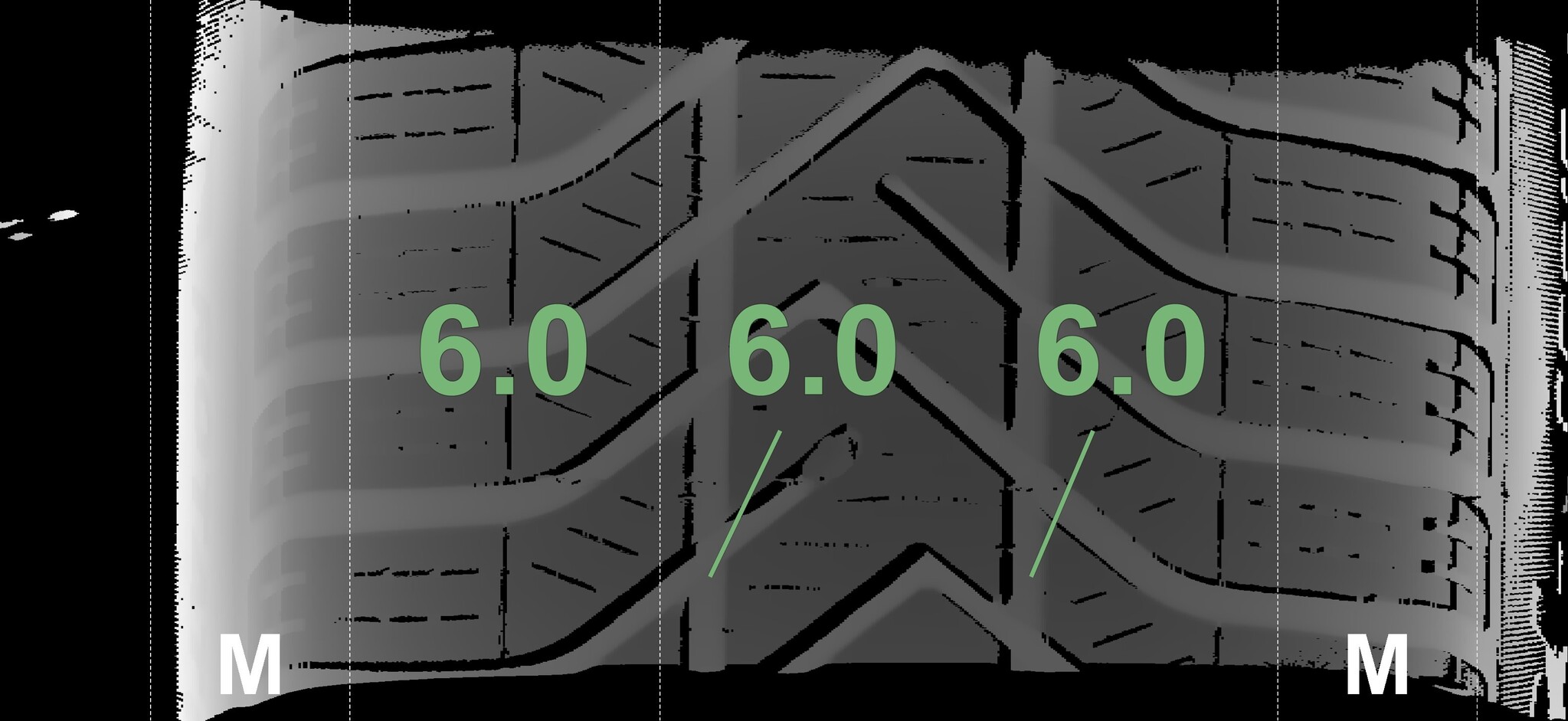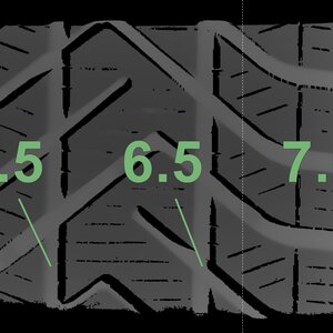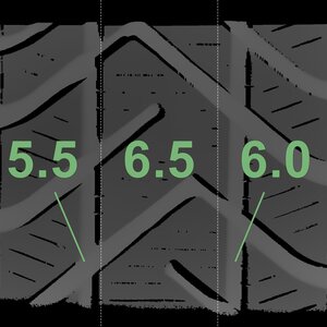 The measured tread depths and the details of the rims are shown above.