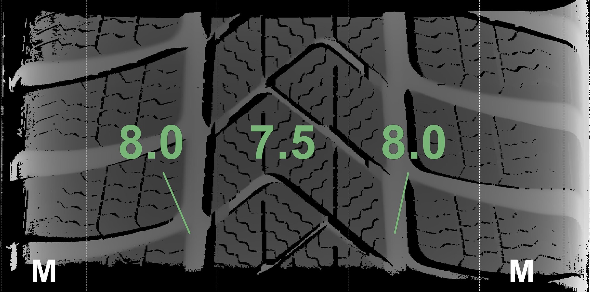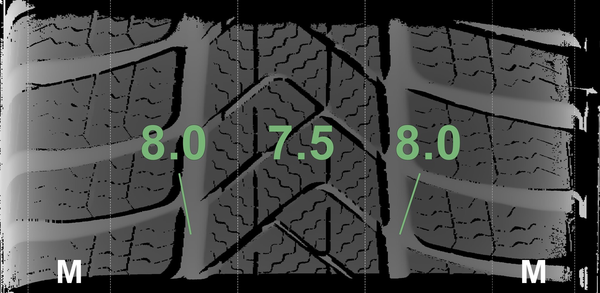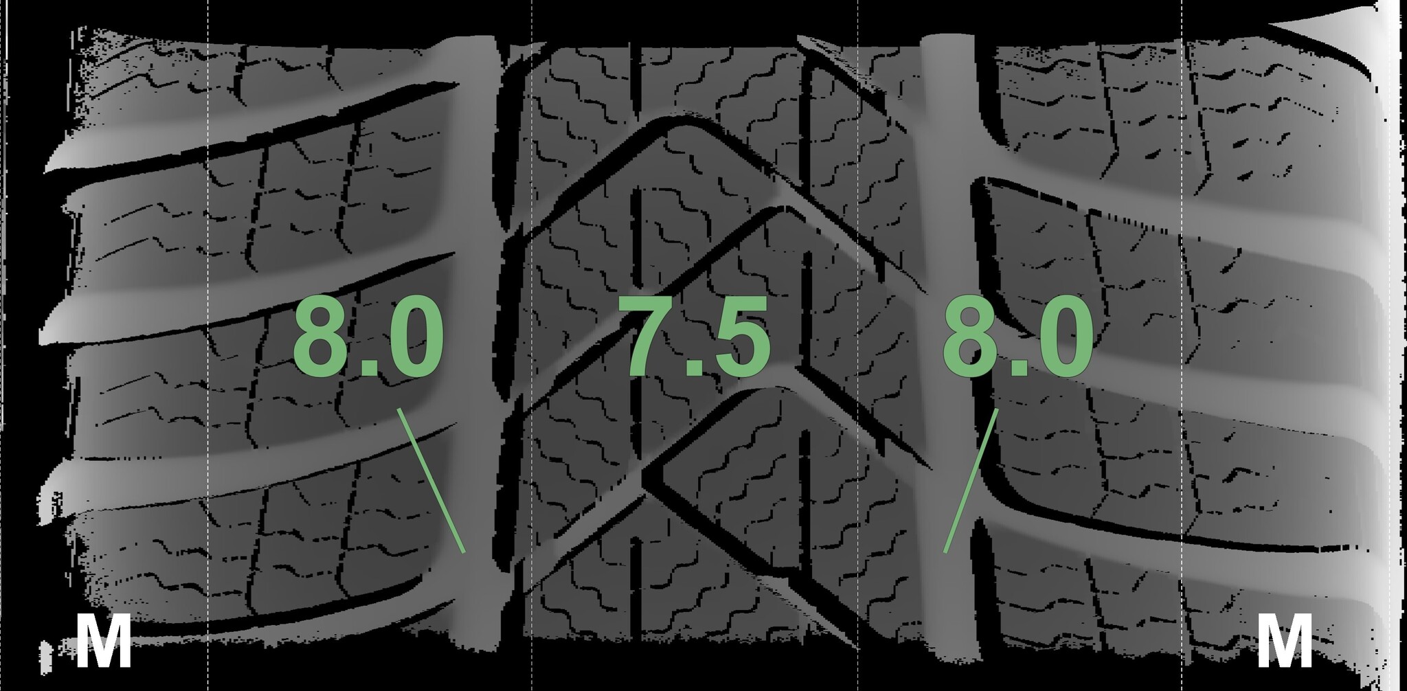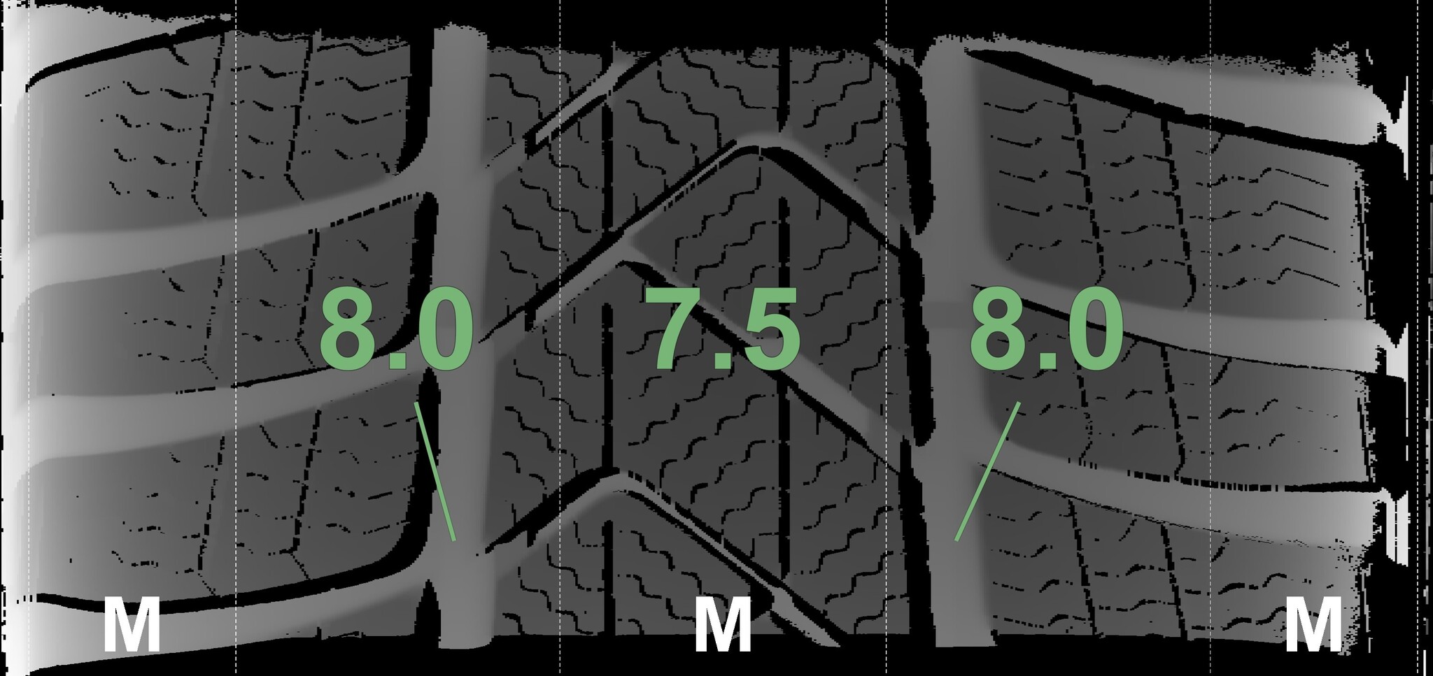 The measured tread depths and details of the rims are shown above.
