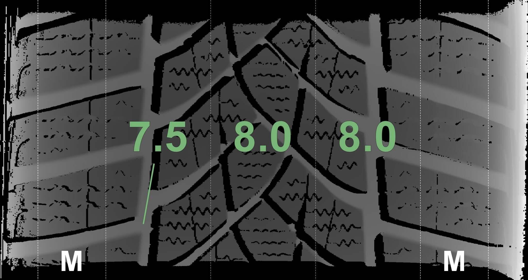 | Condition | Profile depth | DOT | Front Left | Used | 8.0 mm | 1922 |